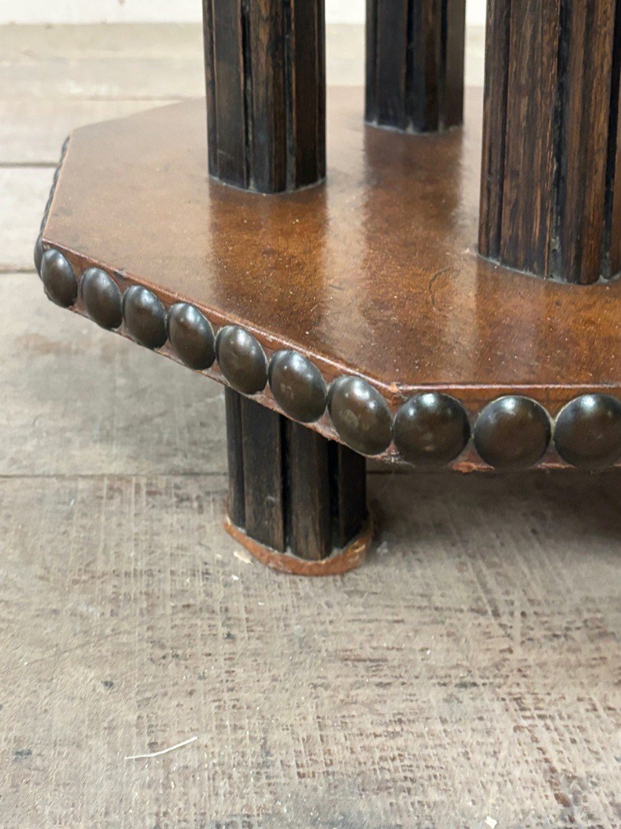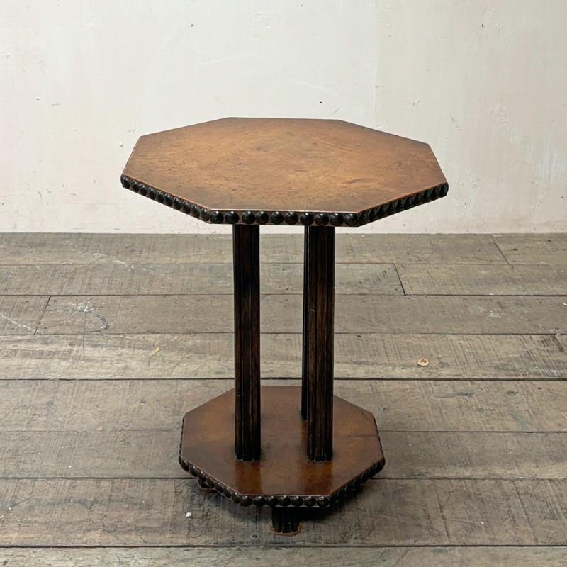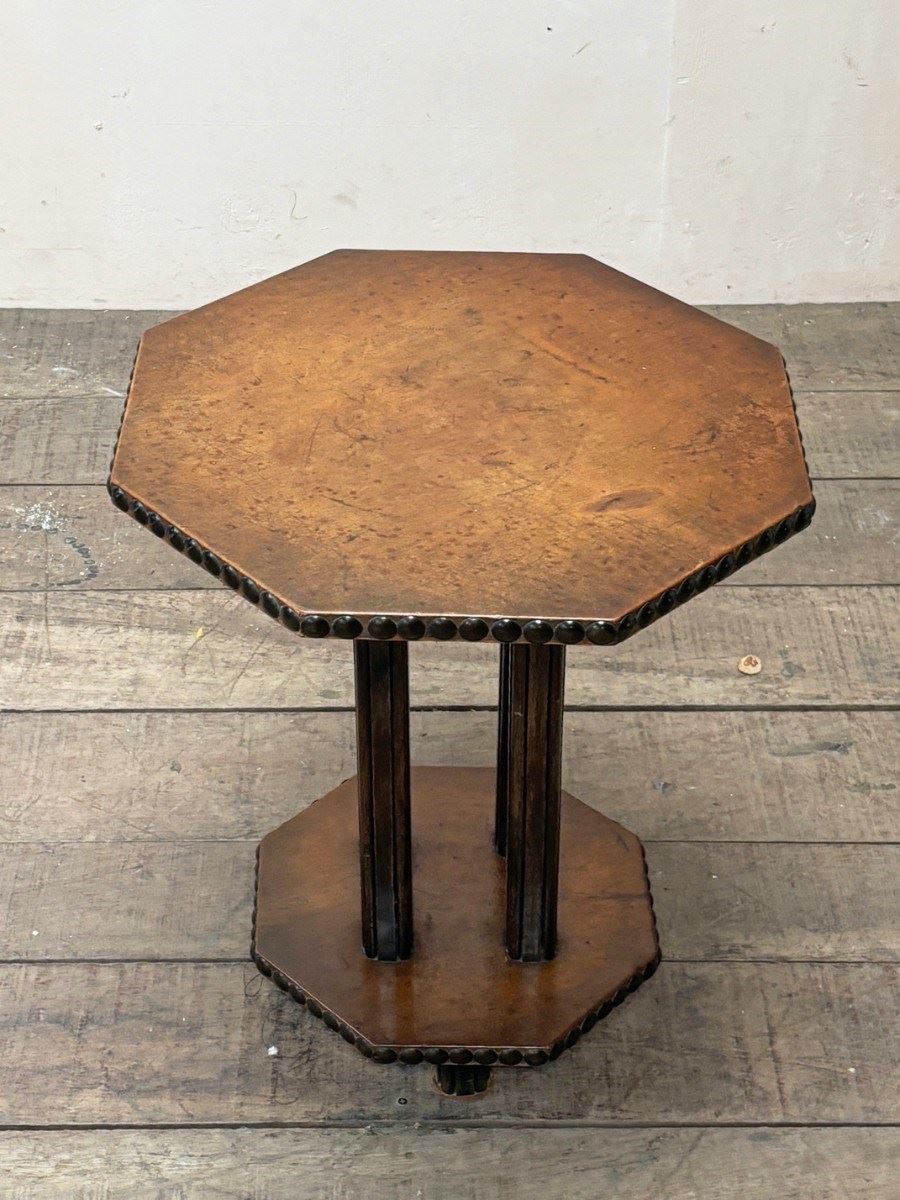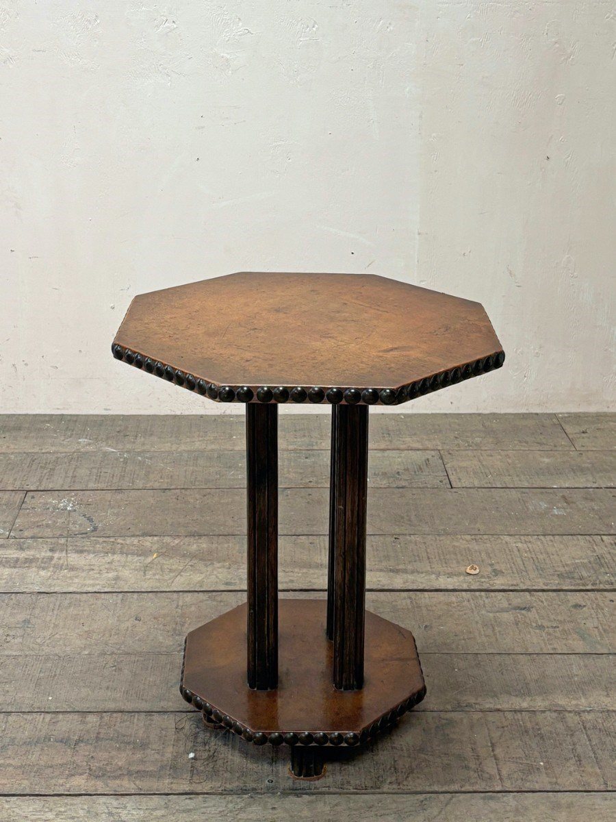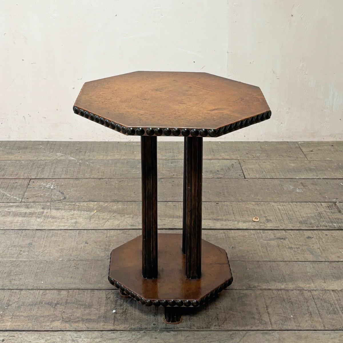 1940’s octagonal leather covered occasional table in very clean, damage free, condition.