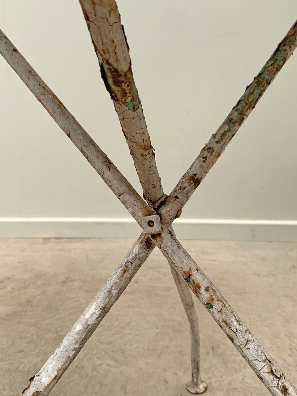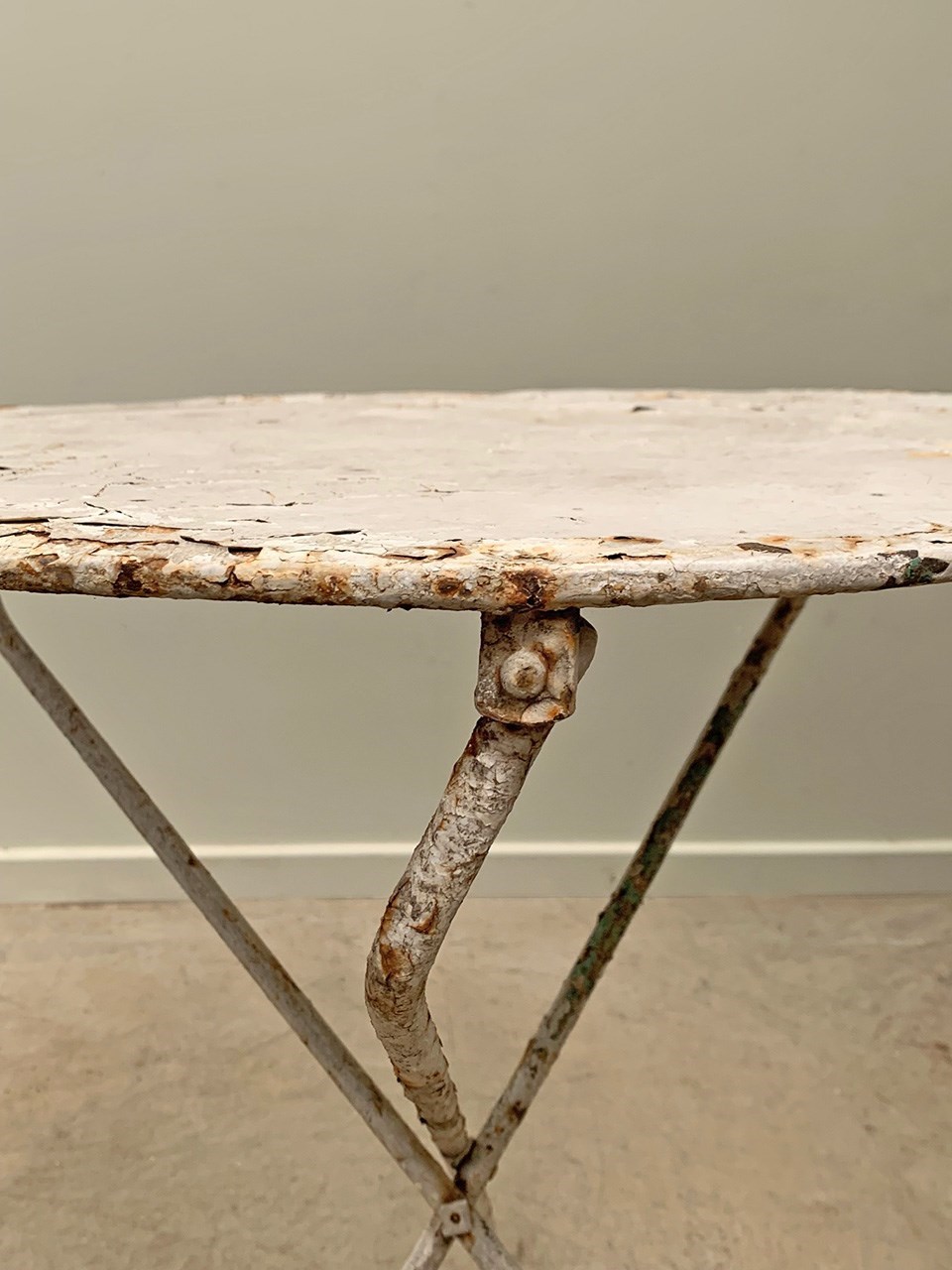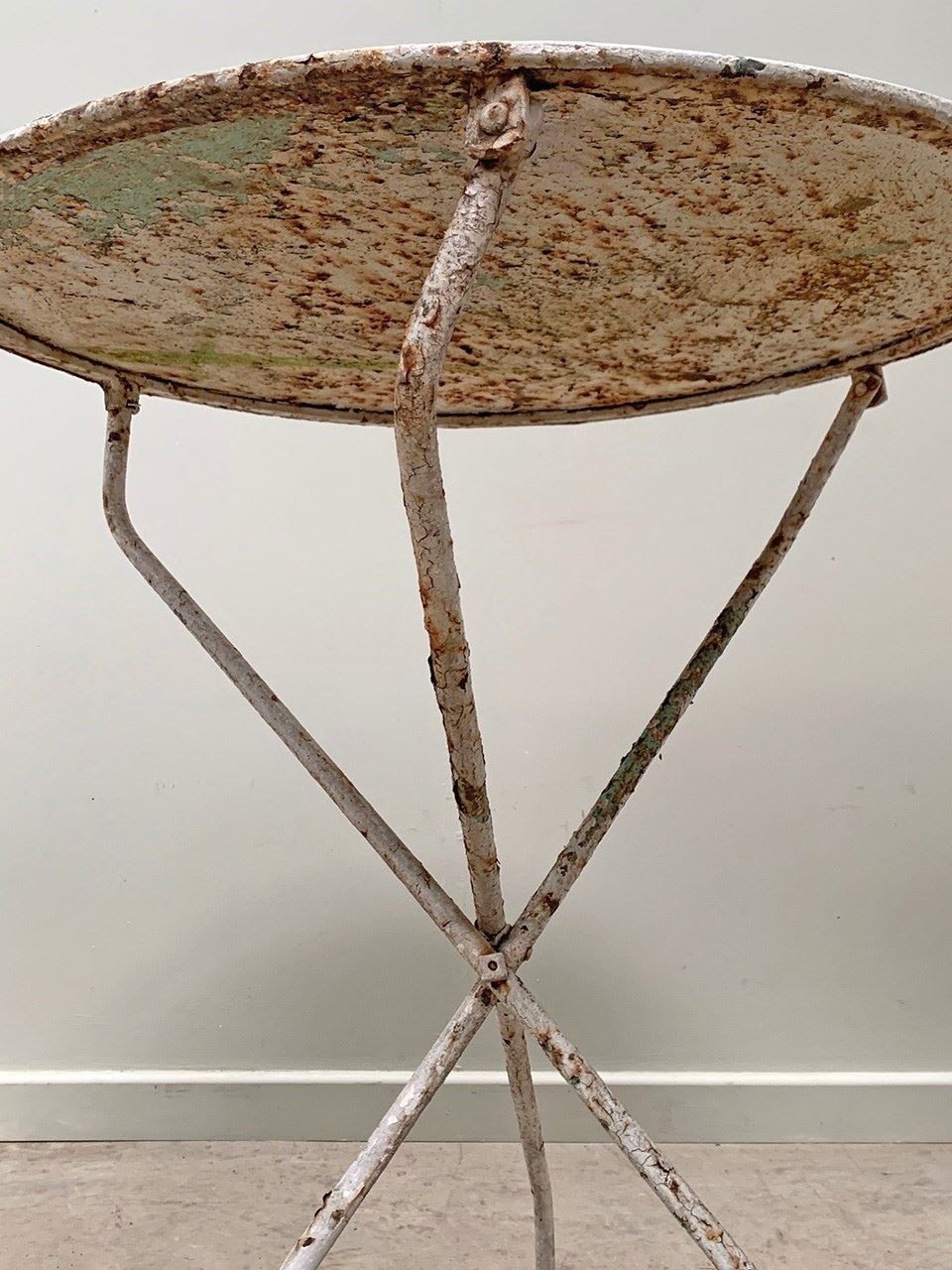 We have fixed the table in this position, however there is a pin that can be removed for folding flat for storage. From a house in the Loire Valley, France.