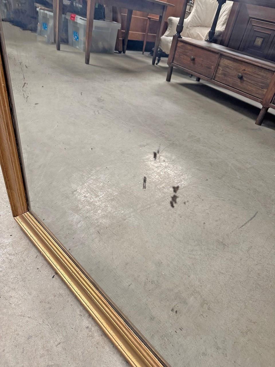 A substantially tall and wide, split plate mirror which is around 200 years old.