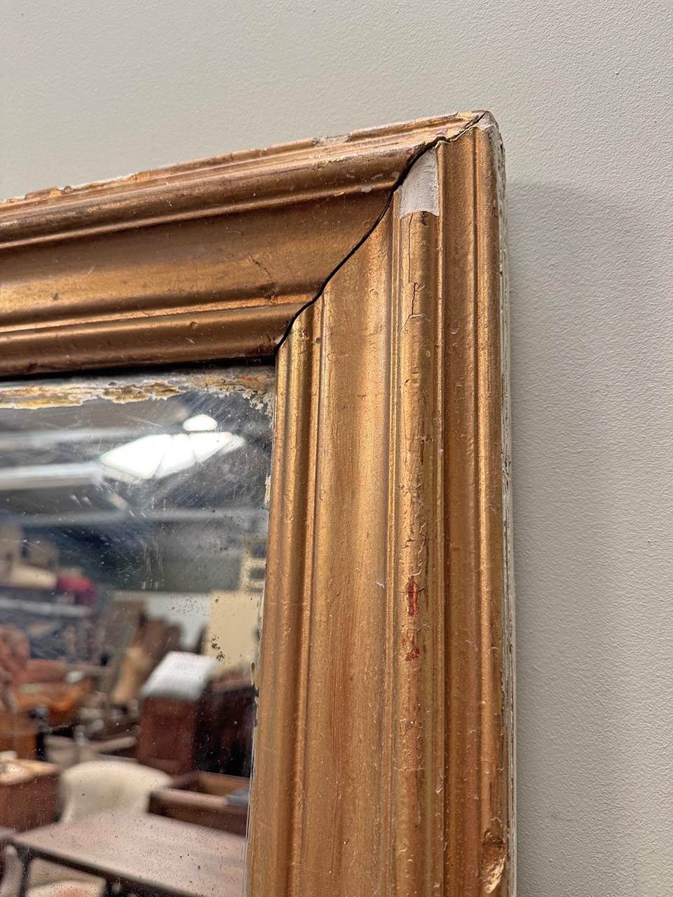 This 'split plate' mirror was produced in the era before the industrialisation of glass production.