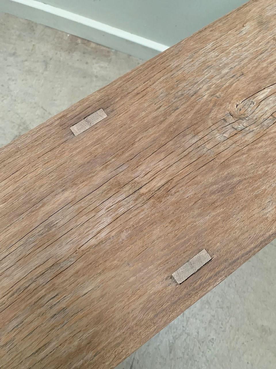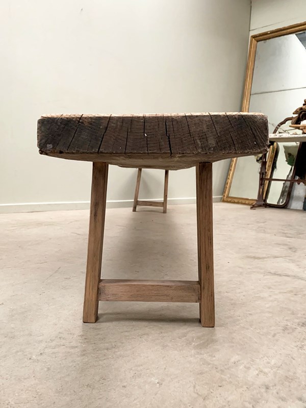 The original legs were in very poor condition so our cabinet maker has replaced them with very sturdy A-frames to support the seat.