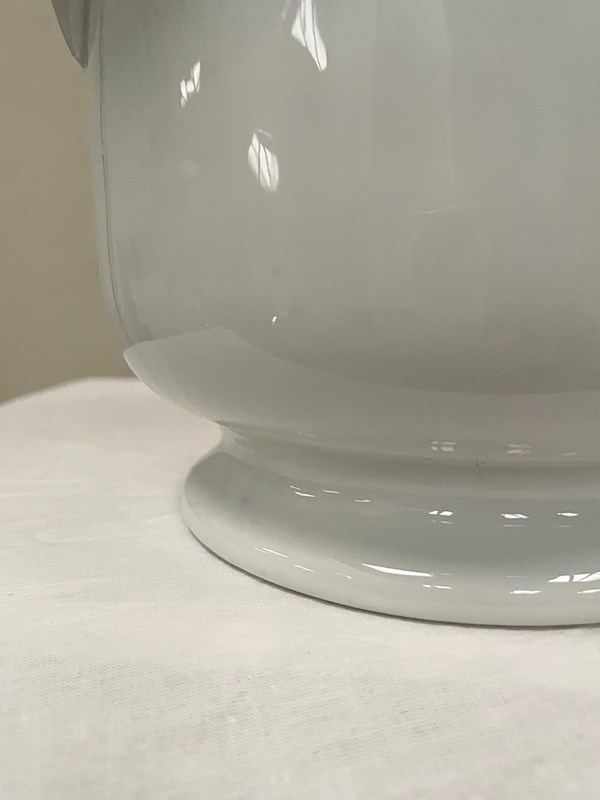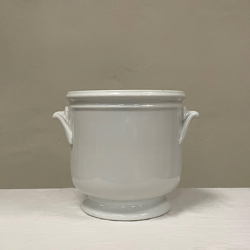 White porcelain footed plant pot with scrolled side handles.