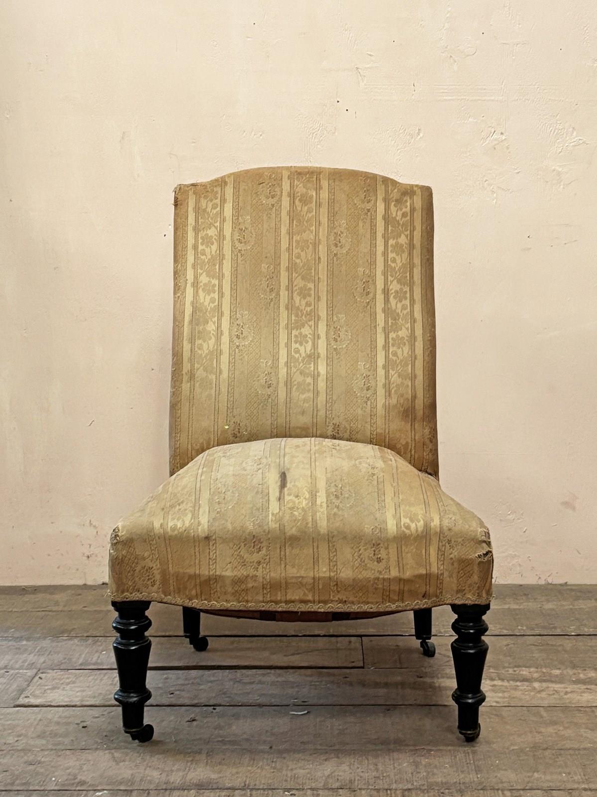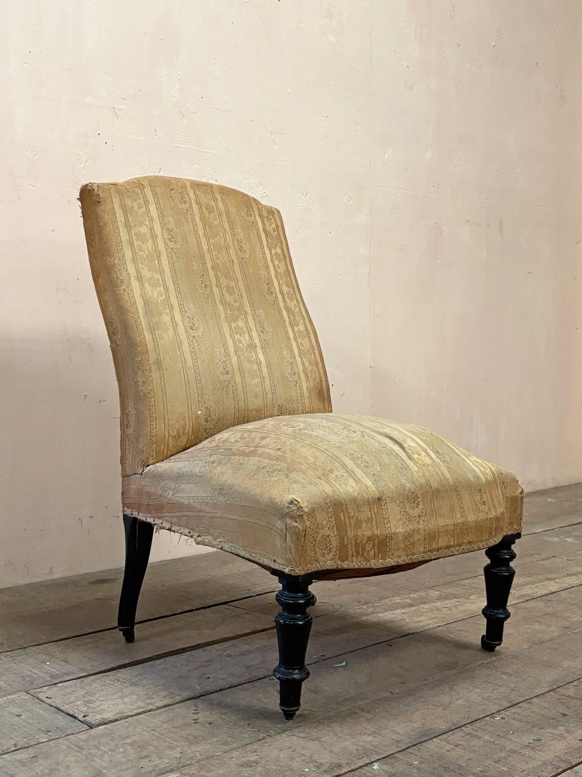 19th century chapeau de gendarme slipper chair retaining original castors.