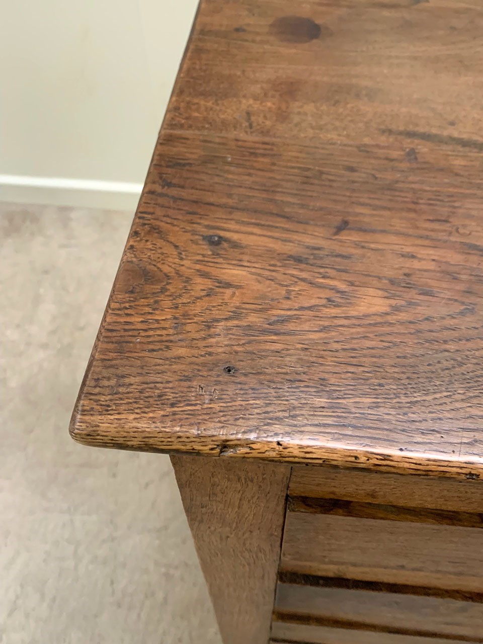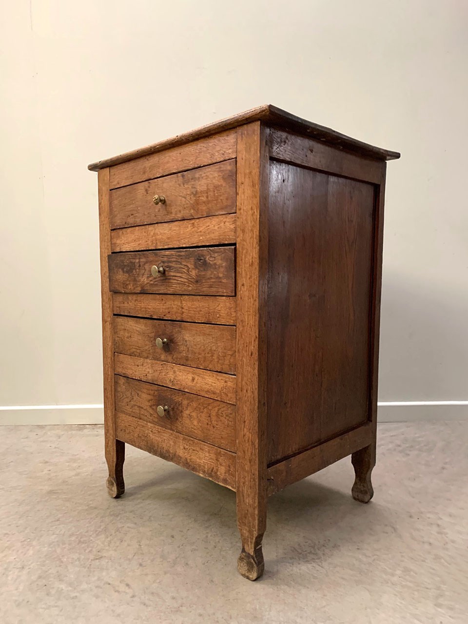 Handsome early 1800's oak chest comprising of 4 drawers finished with little brass knobs.