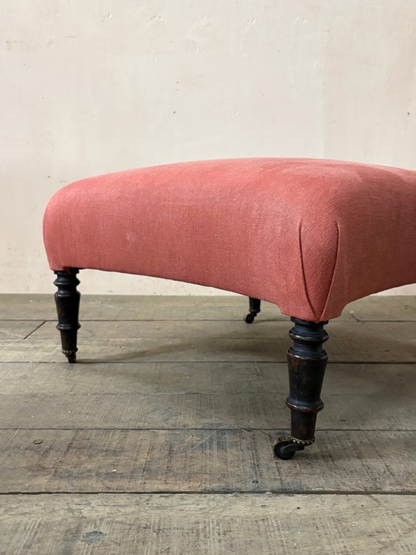 Good quality mid 19th century concave sided footstool on turned legs with castor.