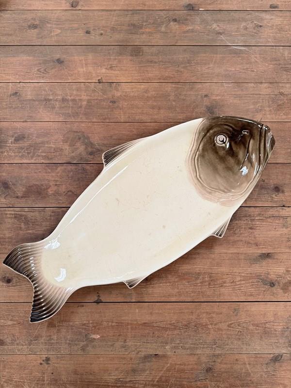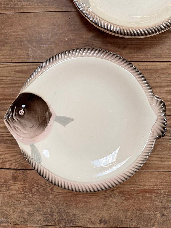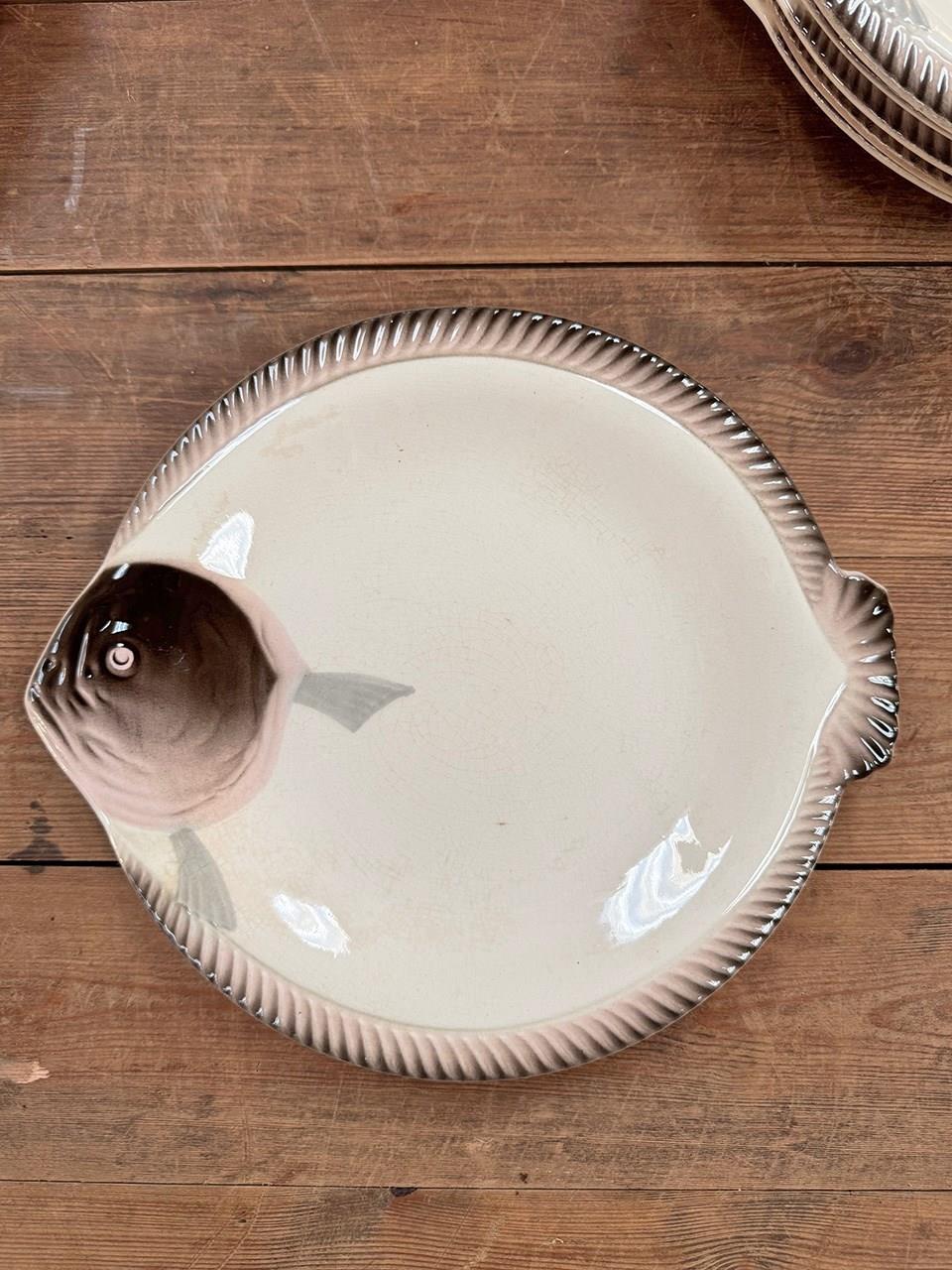 A supersized hand-painted fish platter! The set also includes 17 sides plates in a stylised fish design.