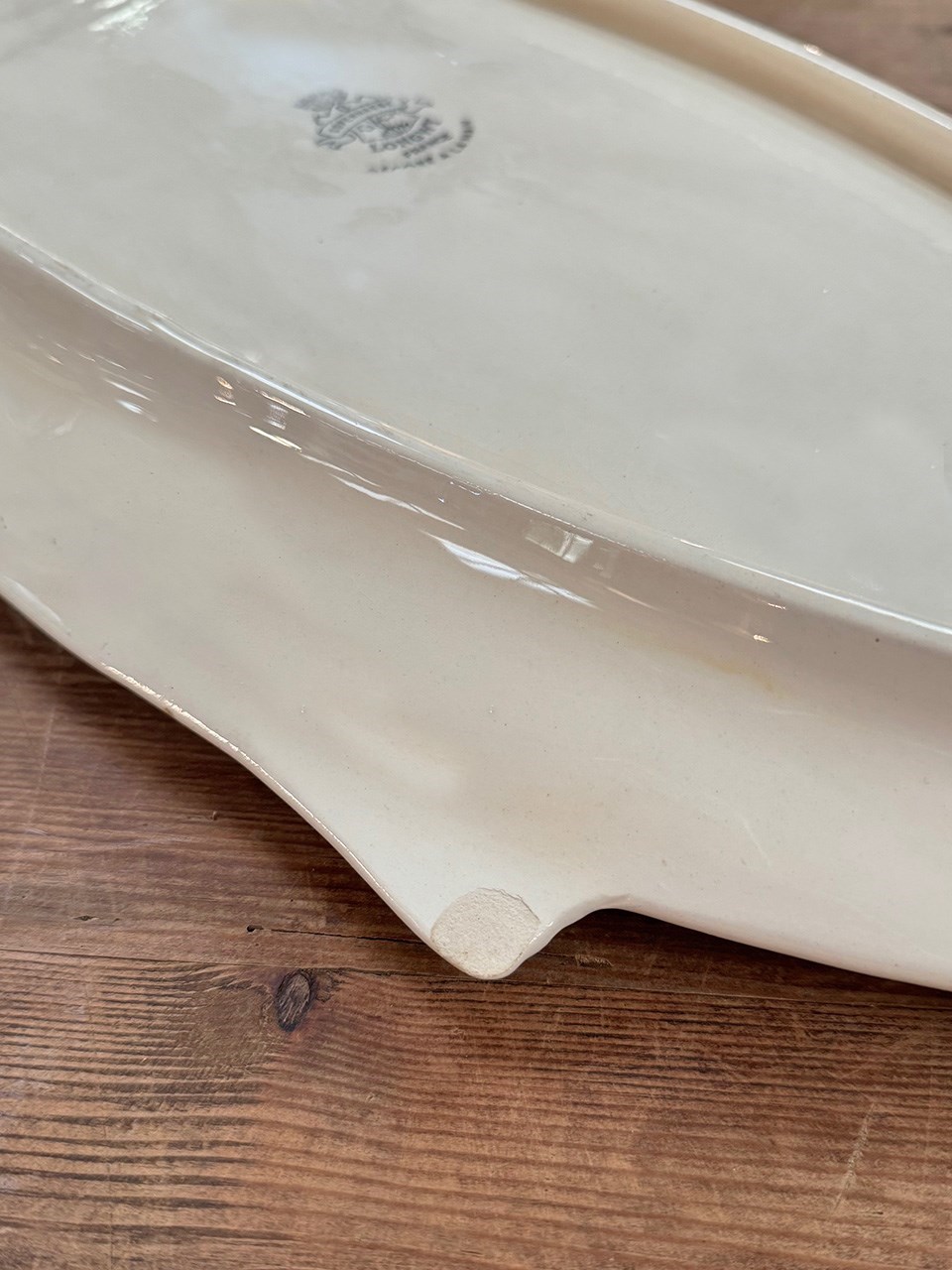 The platter has a small chip to the underside fin. One plate also has a chip underneath, however both aren't visible from the top. One plate has some hairline scratches which are visible from the top.