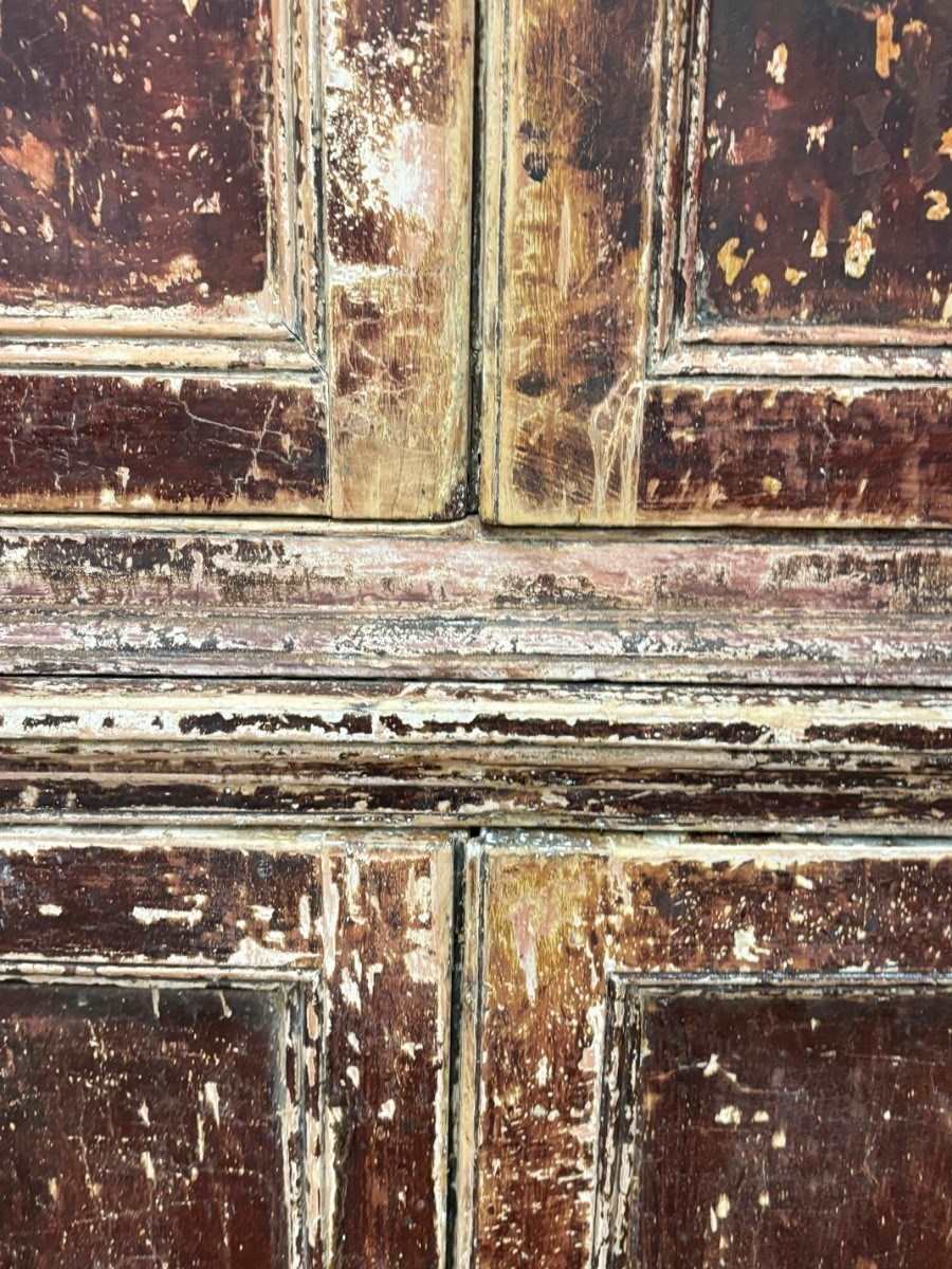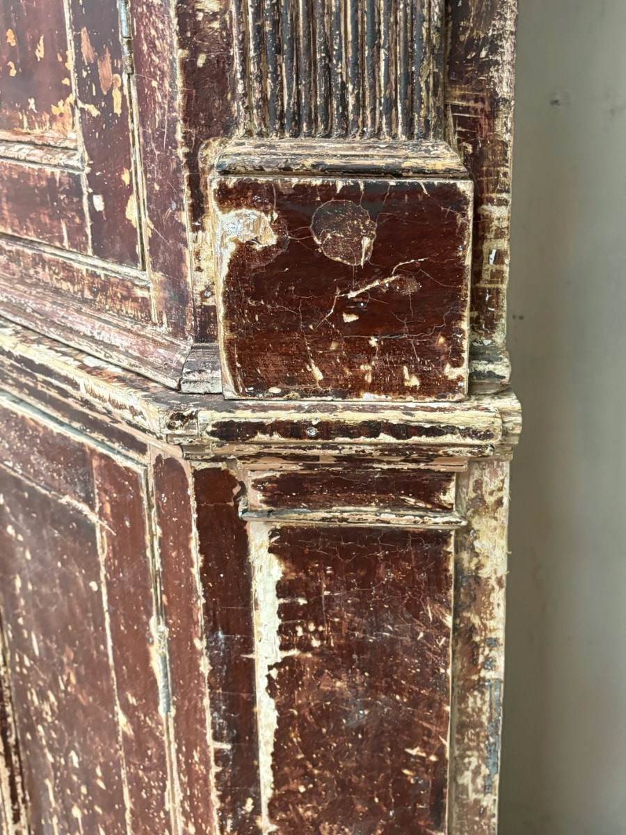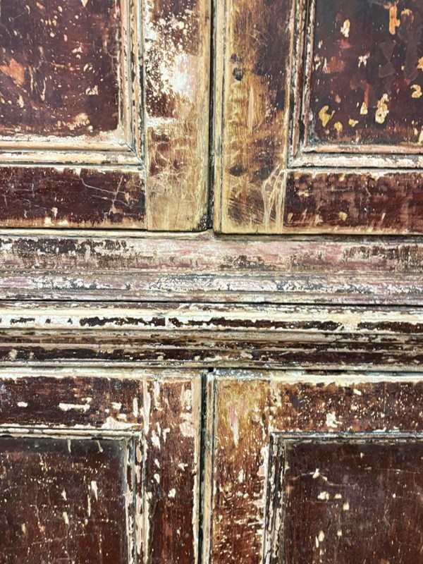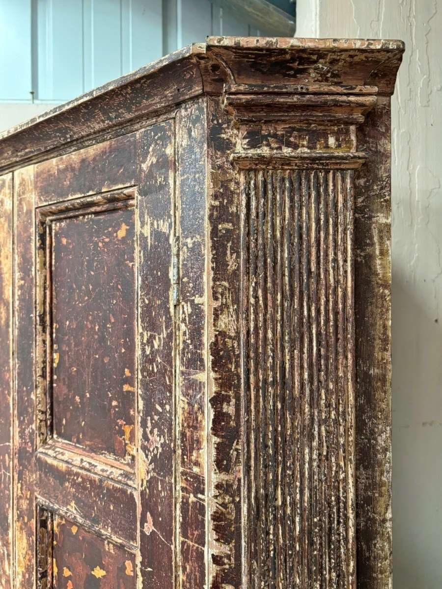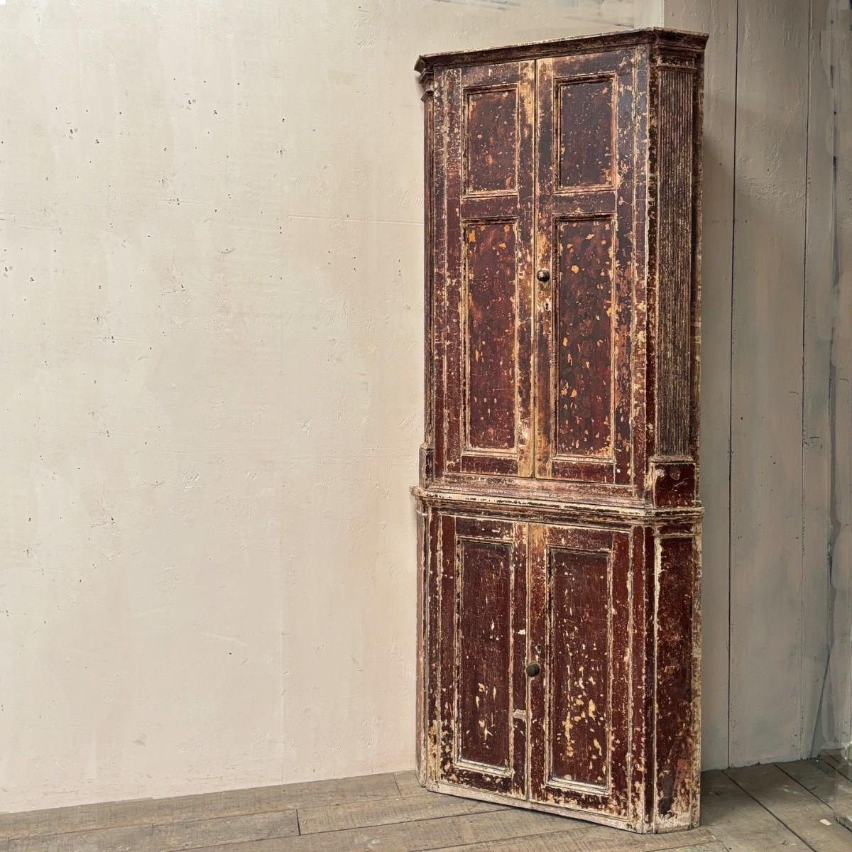 Beautiful Georgian corner cupboard with fine reeded columns to upper section, painstakingly scraped back to an older, brown lacquered, surface