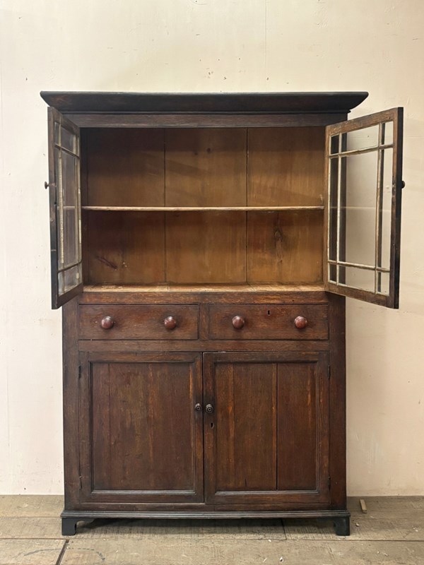Very well proportioned 18th century solid oak part glazed dresser with 2 drawers over a cupboard.