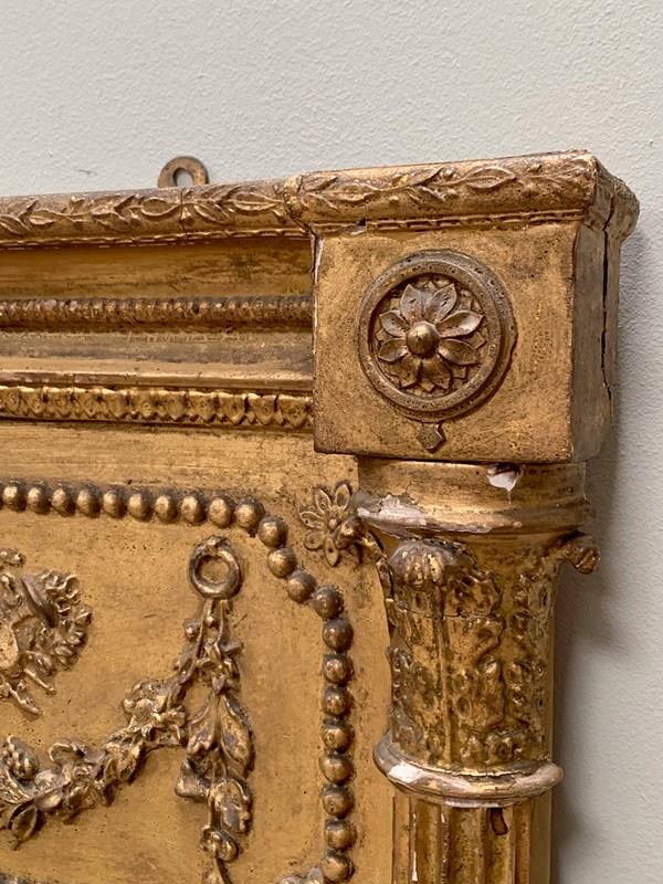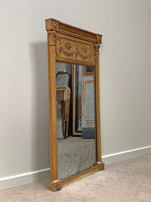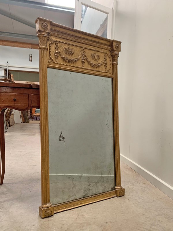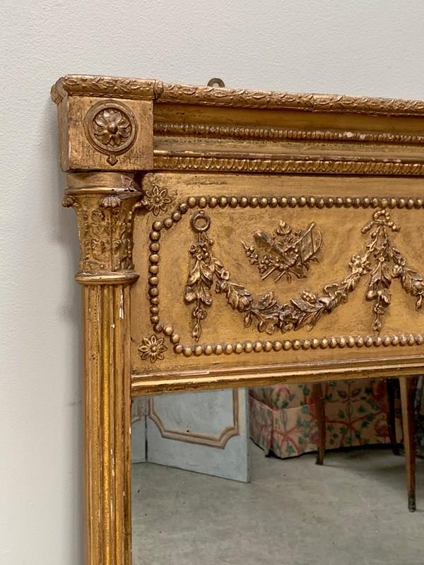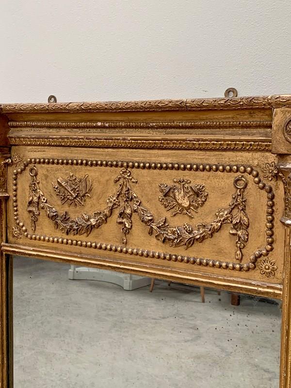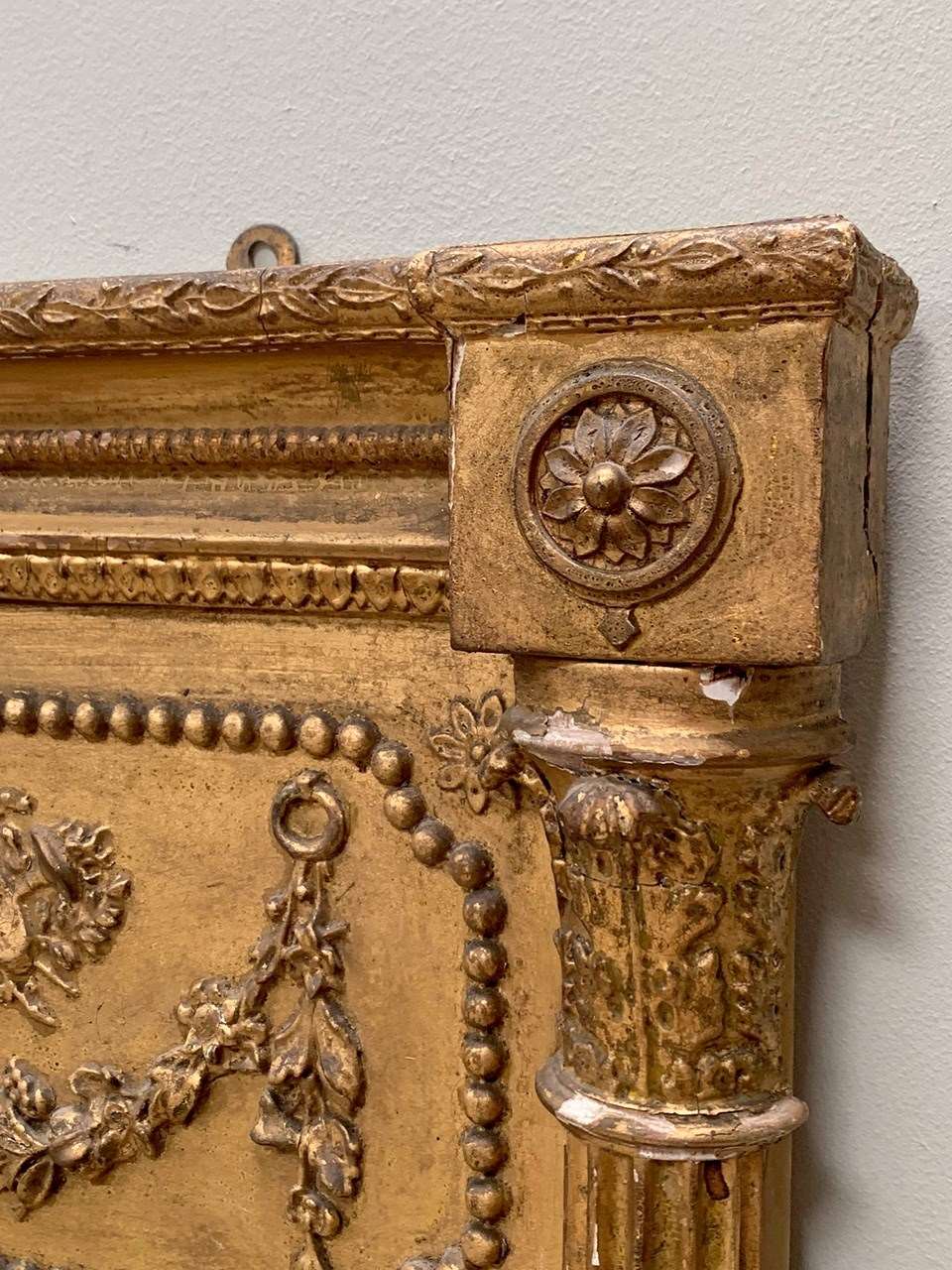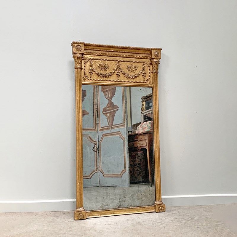 An ornate 19th century, Louis XVI style, gilded trumeau mirror.