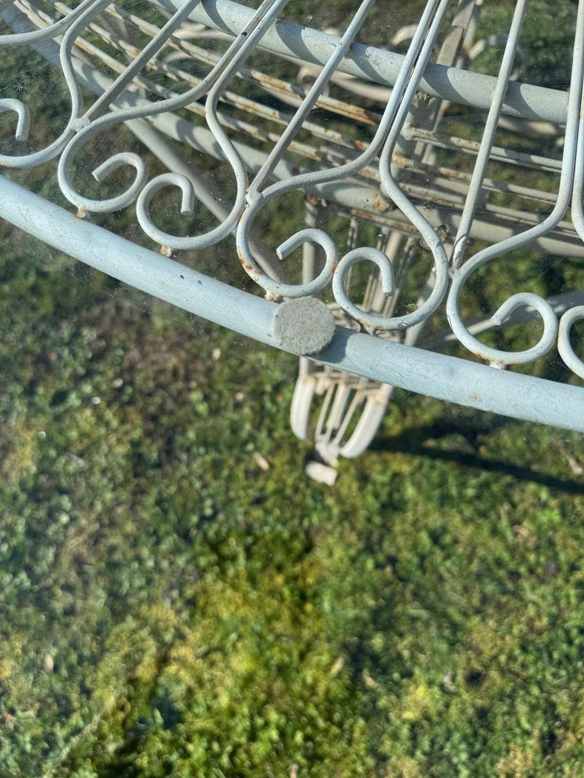 In an off-white colour, this painted set is in very good used condition, with the odd spot of rust here and there.