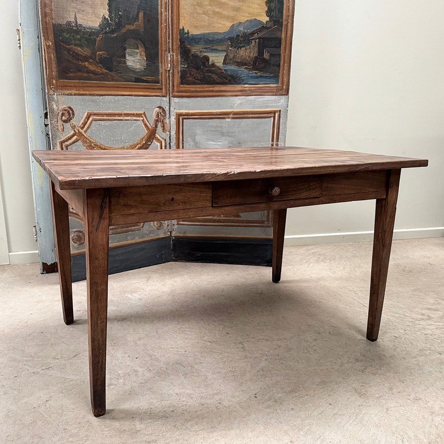 Tapered leg walnut kitchen table, which would also lend itself to being a generously sized desk.