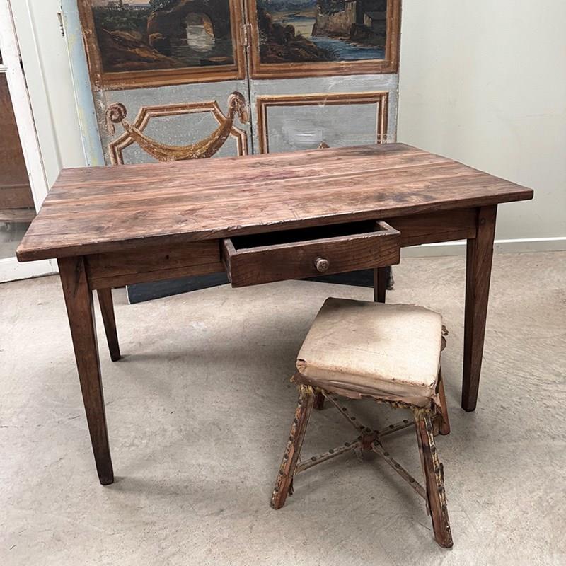 Circa 1820/30's the table has a front drawer and a beautifully warm mid brown patina.