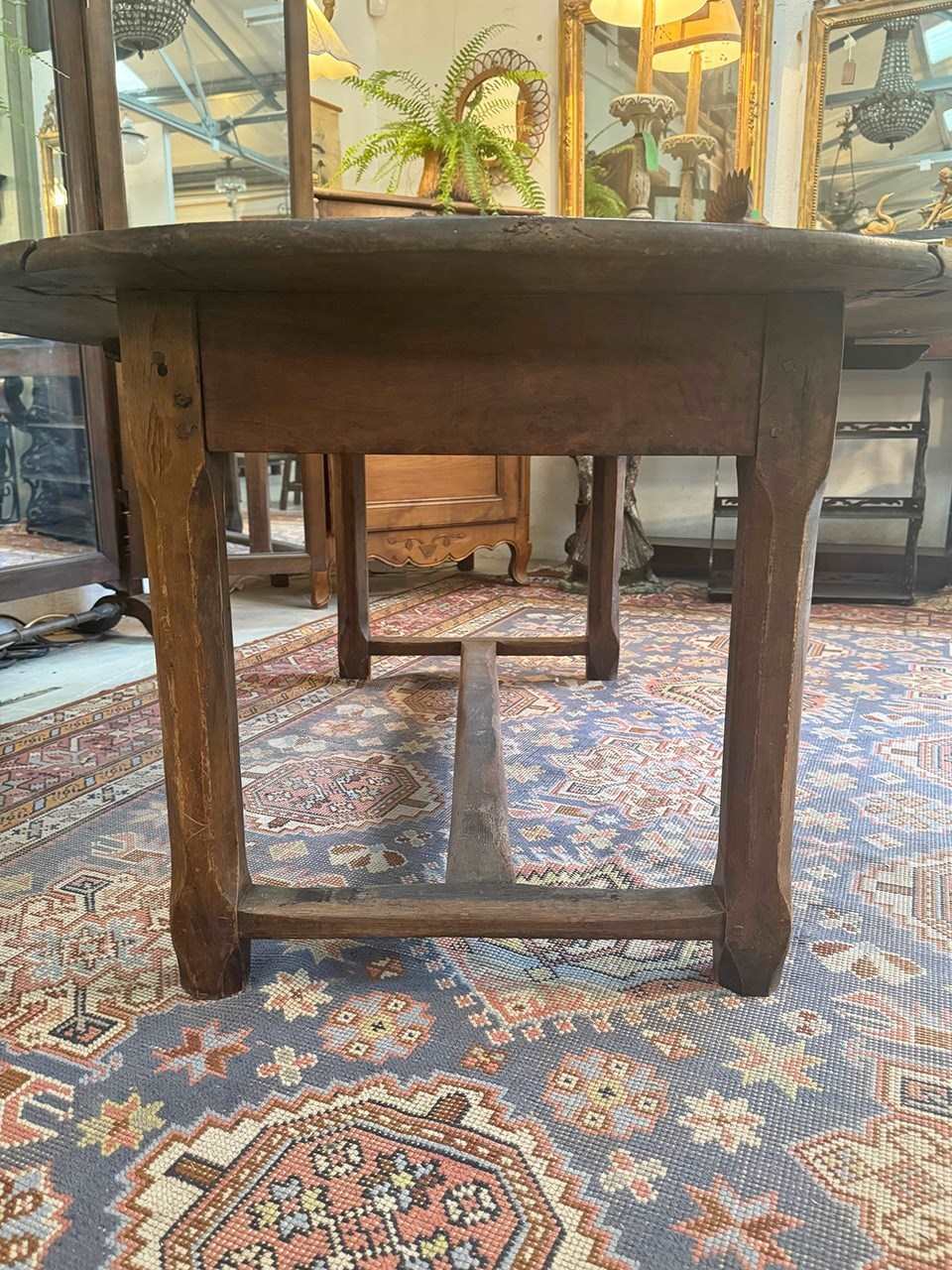 The table has a central stretcher and one end drawer. In the main image the table is shown with its extending leaves, which are, rather unusually, very sturdy.