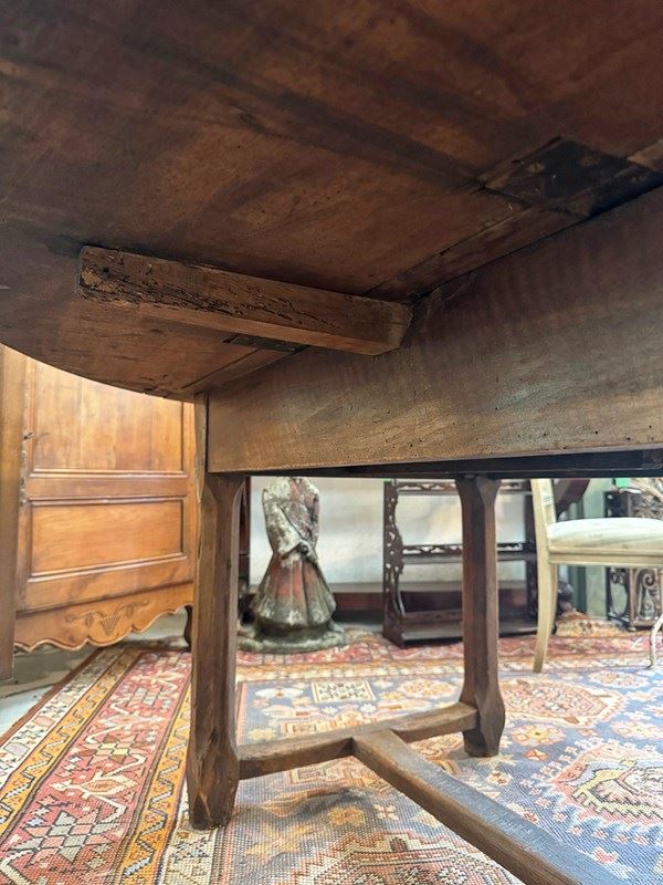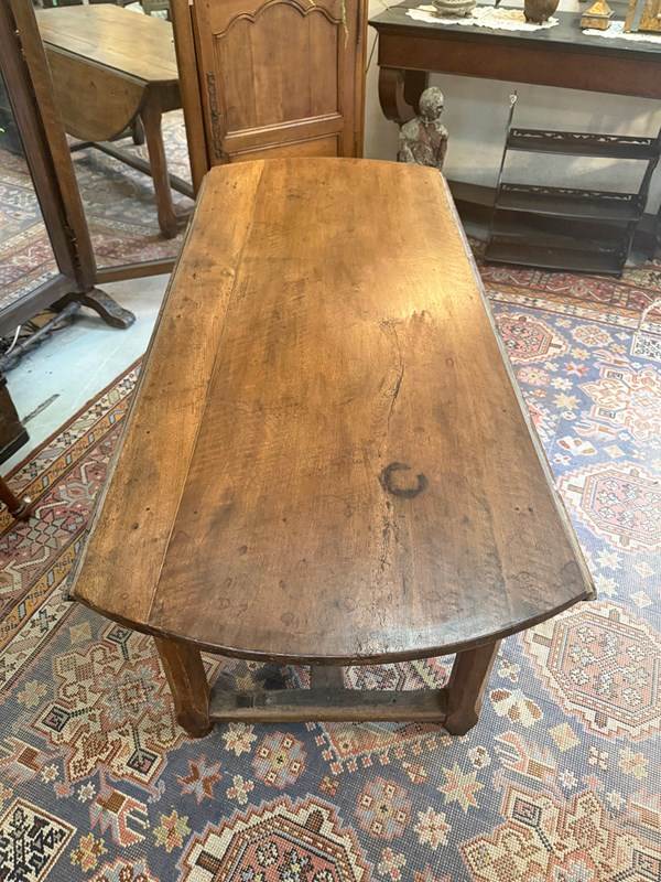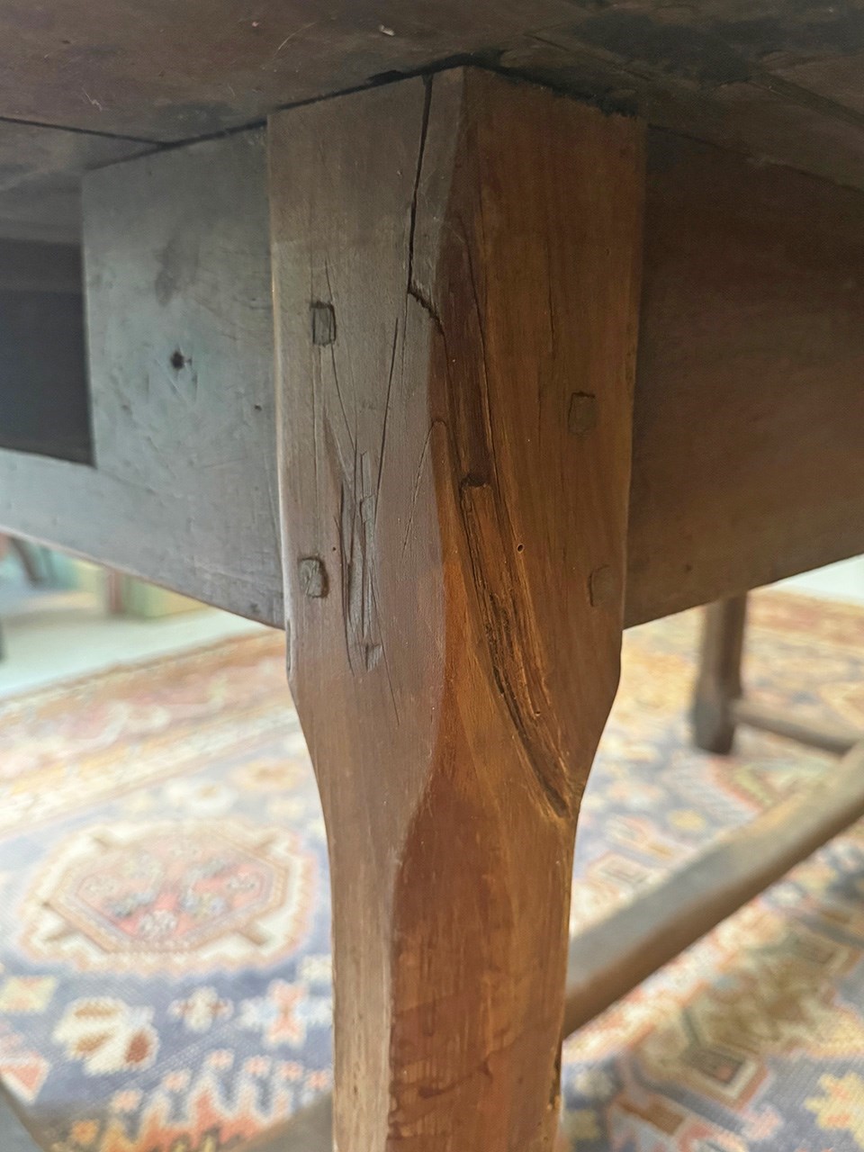 The table has a central stretcher and one end drawer. In the main image the table is shown with its extending leaves, which are, rather unusually, very sturdy.