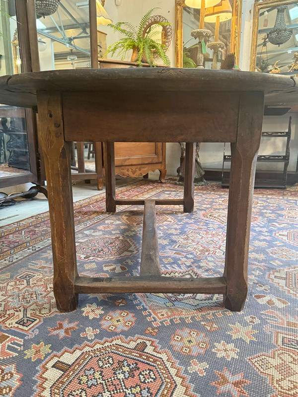 There are supporting arms which pull out for these leaves to rest on. However, if you prefer the leaves to remain out, we can make this into a fixed position should you wish. We have refinished the top and applied a mid brown wax.
