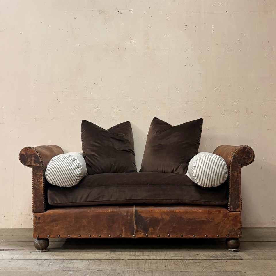 There is also a new seat cushion and back pillows in brown cotton velvet, and feather bolsters in a brown and white ticking.