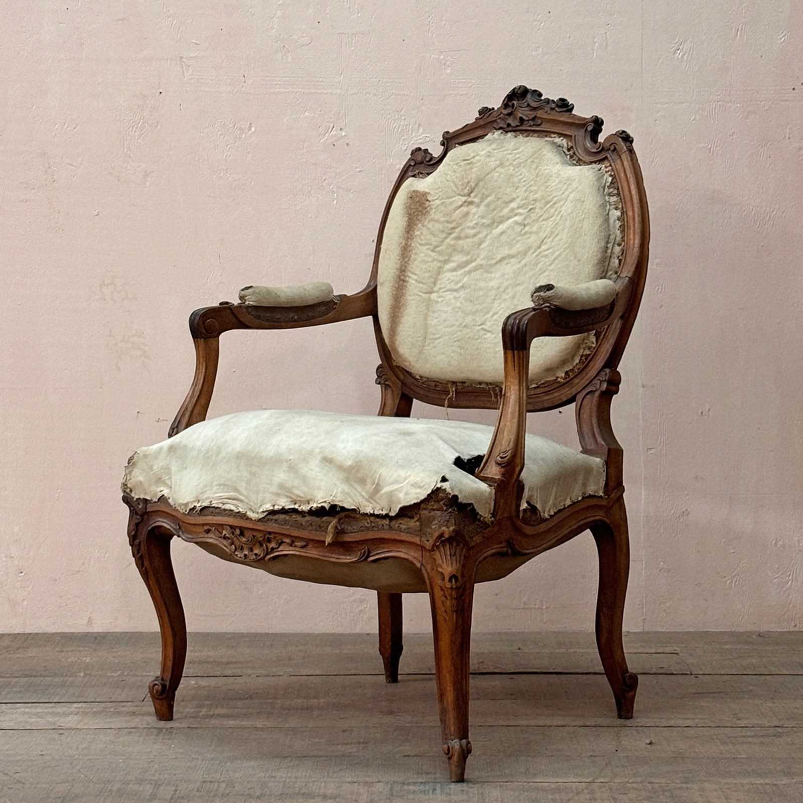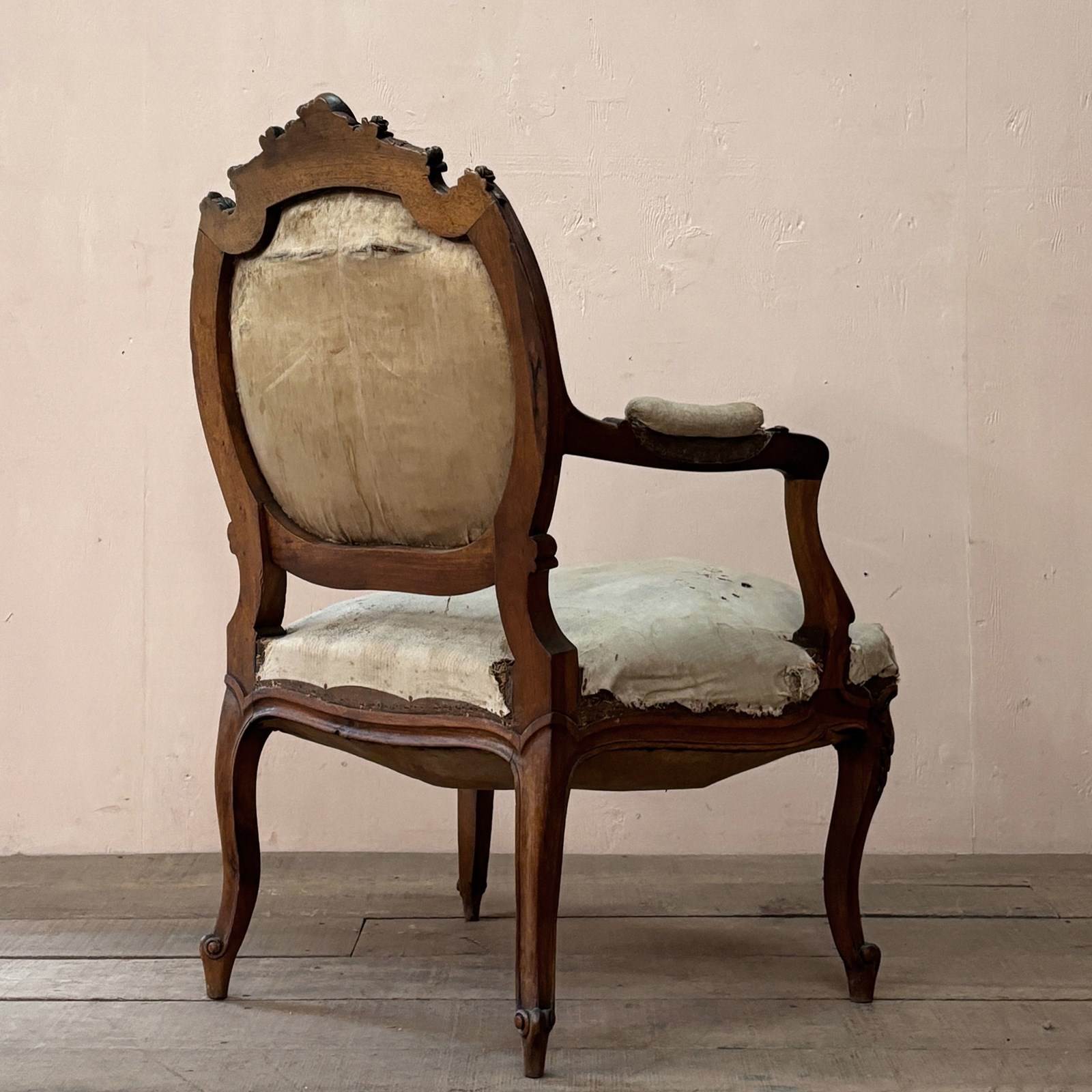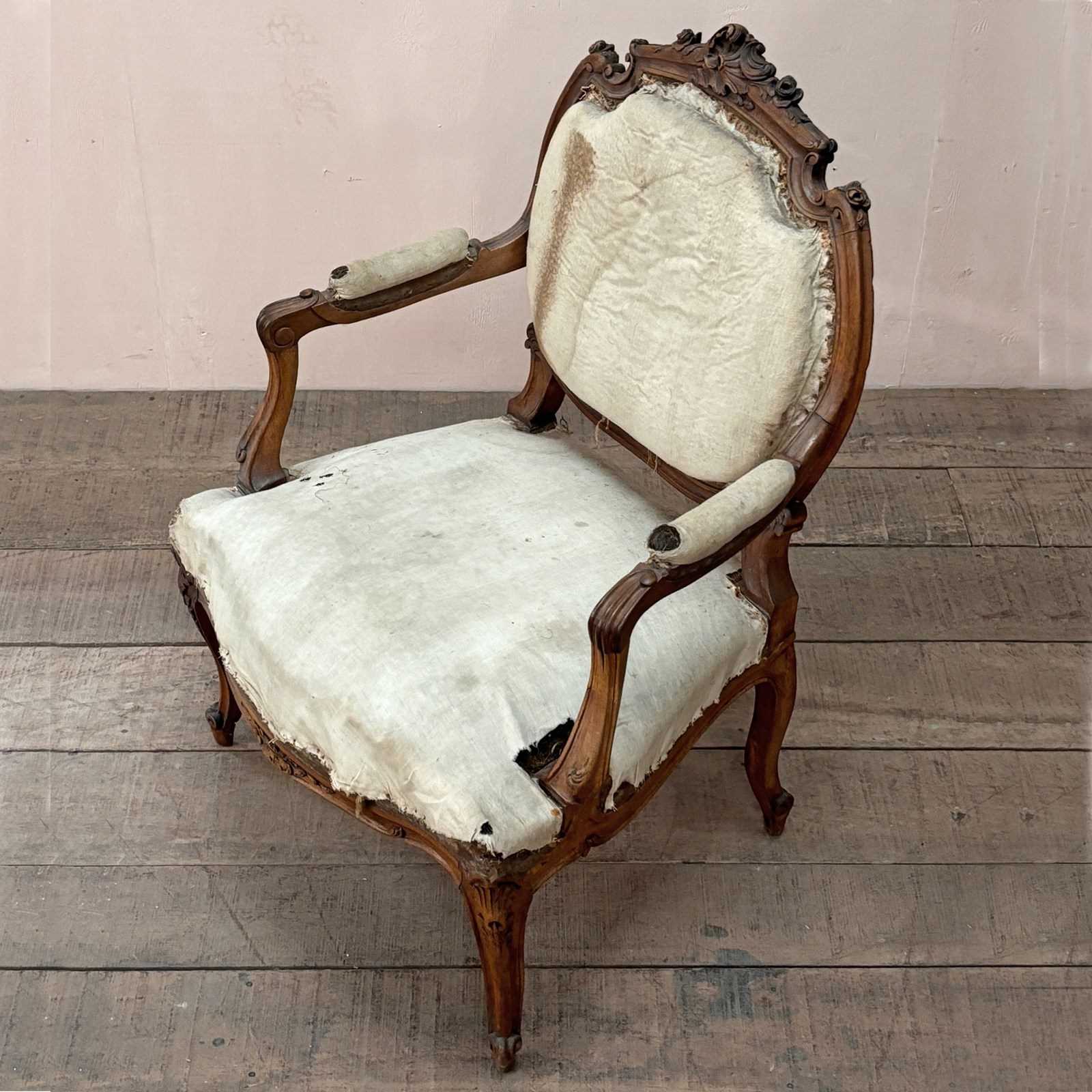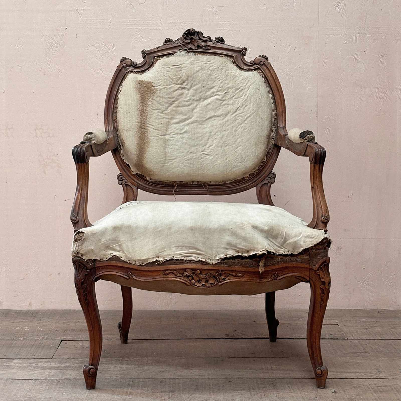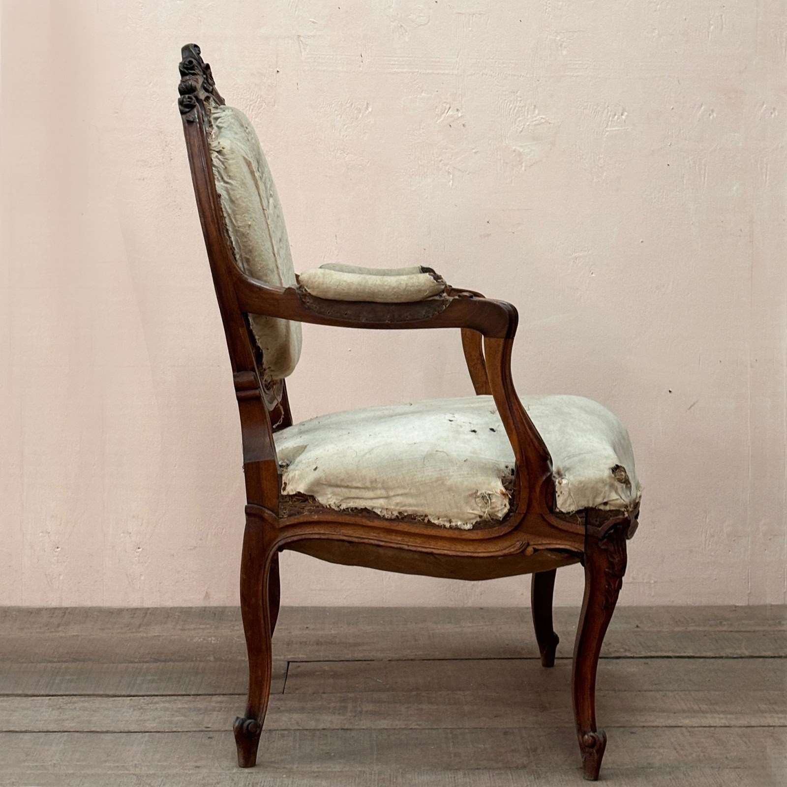 Smart 19th century solid walnut armchair in the Louis xv style in excellent condition with no losses to carving.