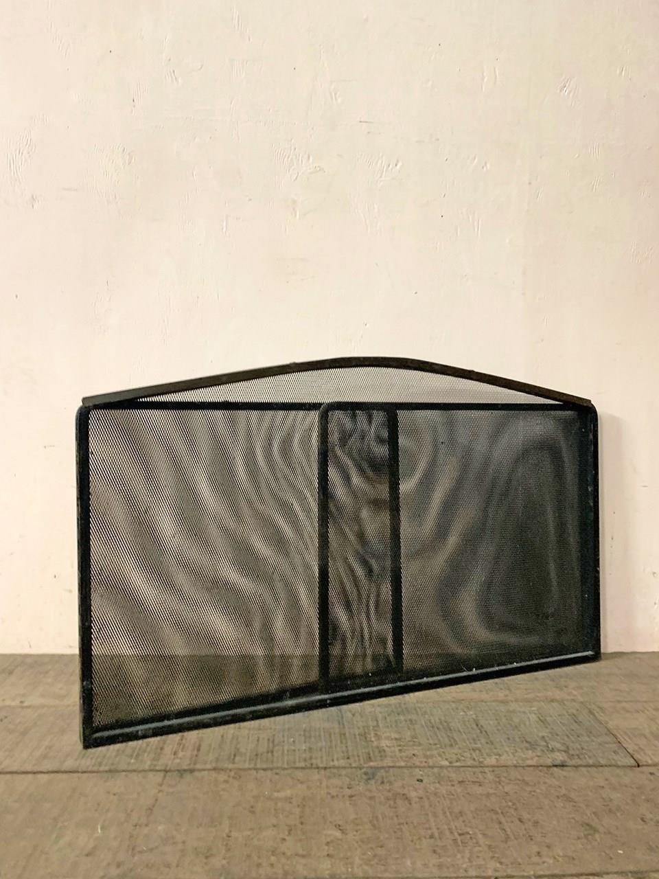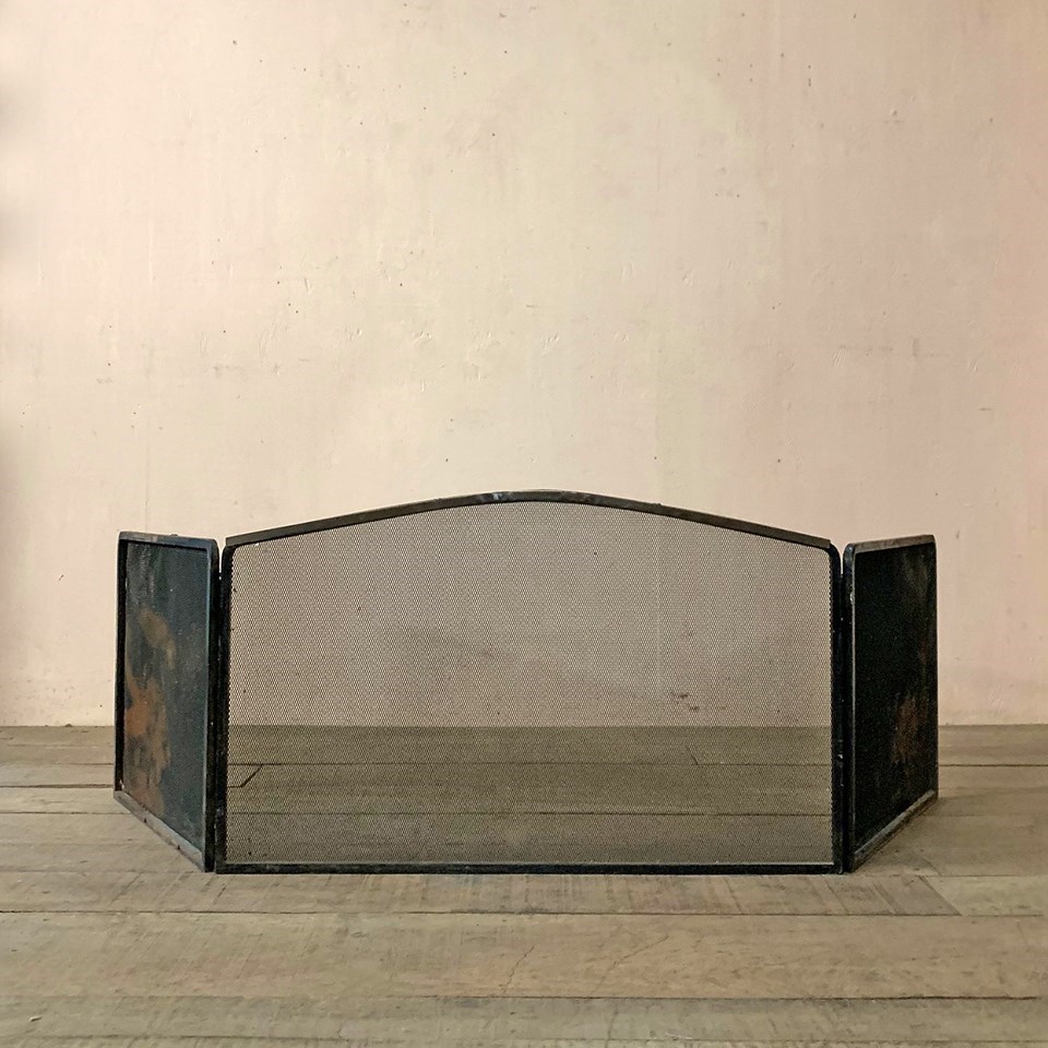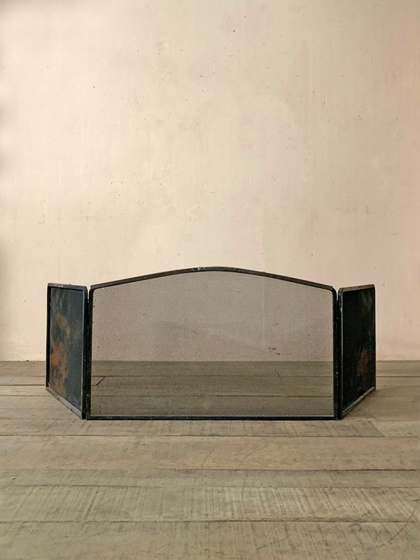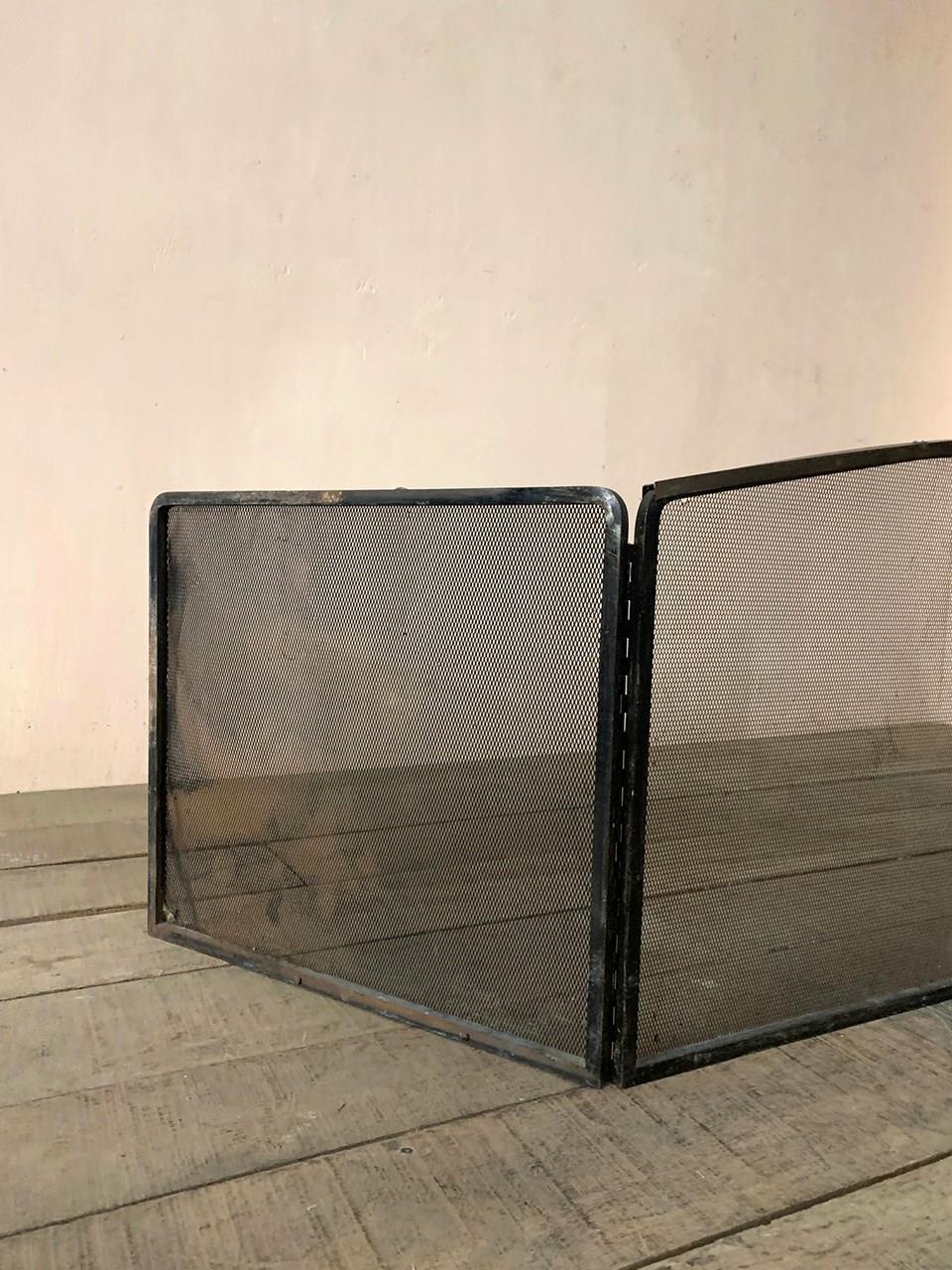 Early 20th century 3 part fire screen with black mesh panels.
