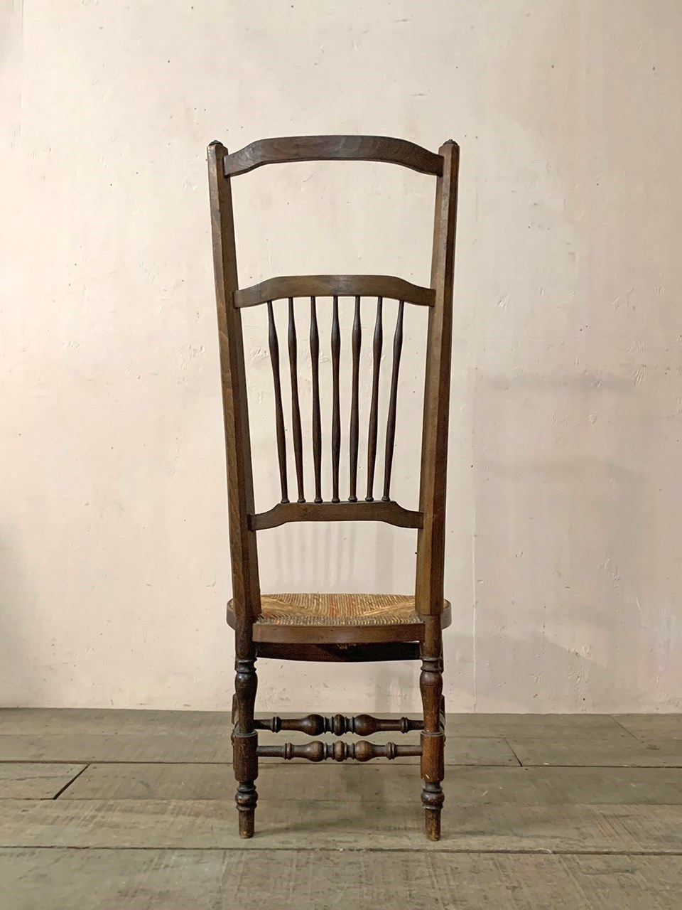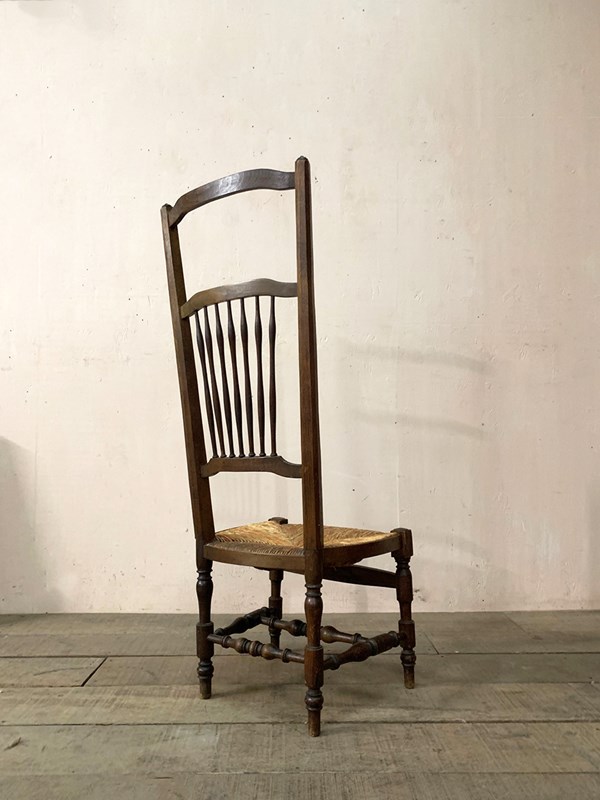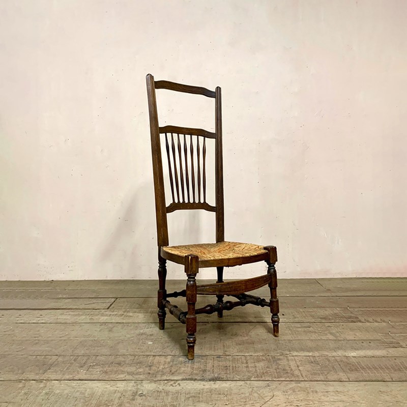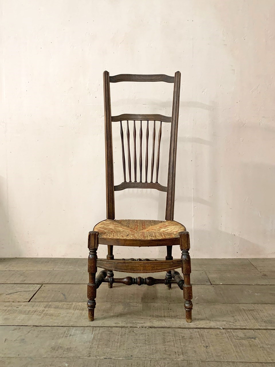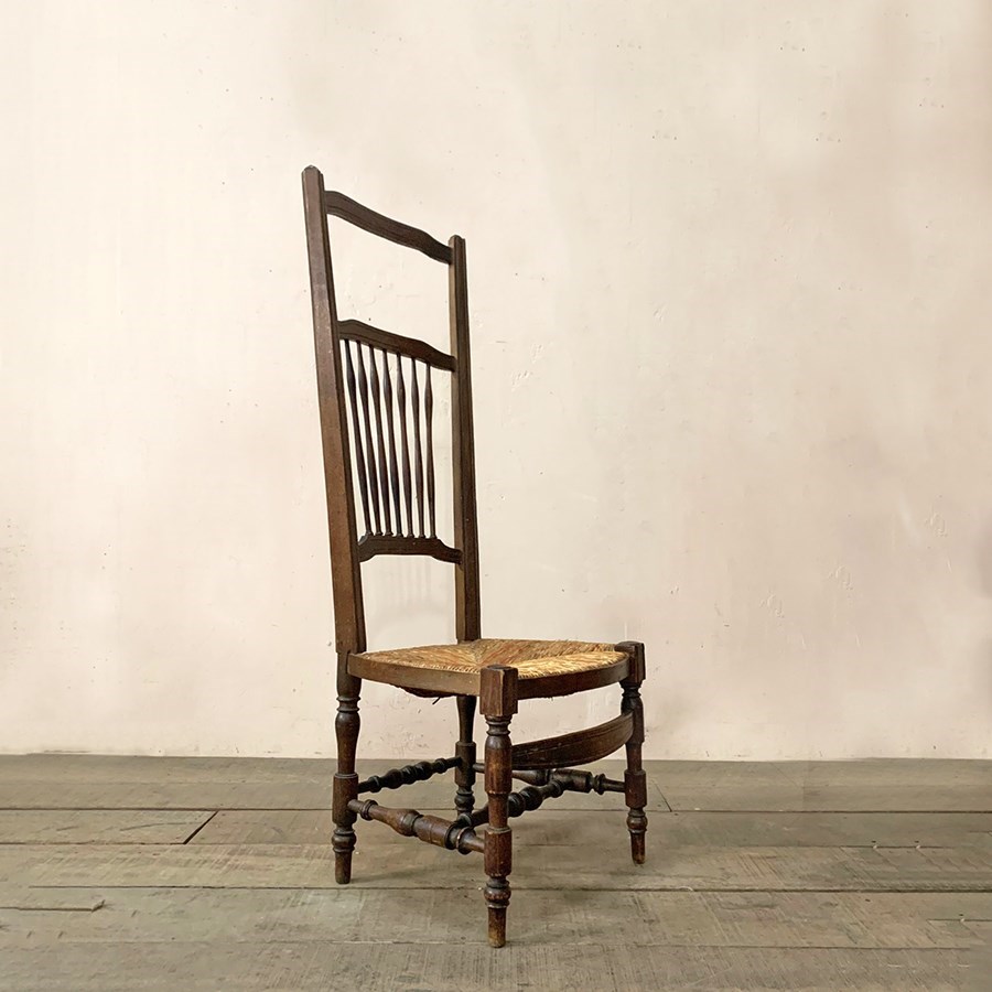 The patterned rush seat is in good condition and is intact.