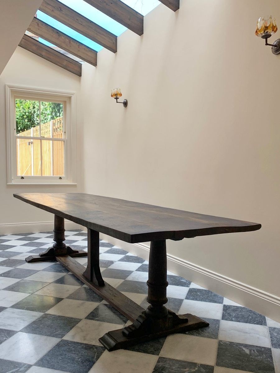 Made using premium quality reclaimed French oak, this incredibly strong and durable table allows for seating all the way around, or can be paired with benches.