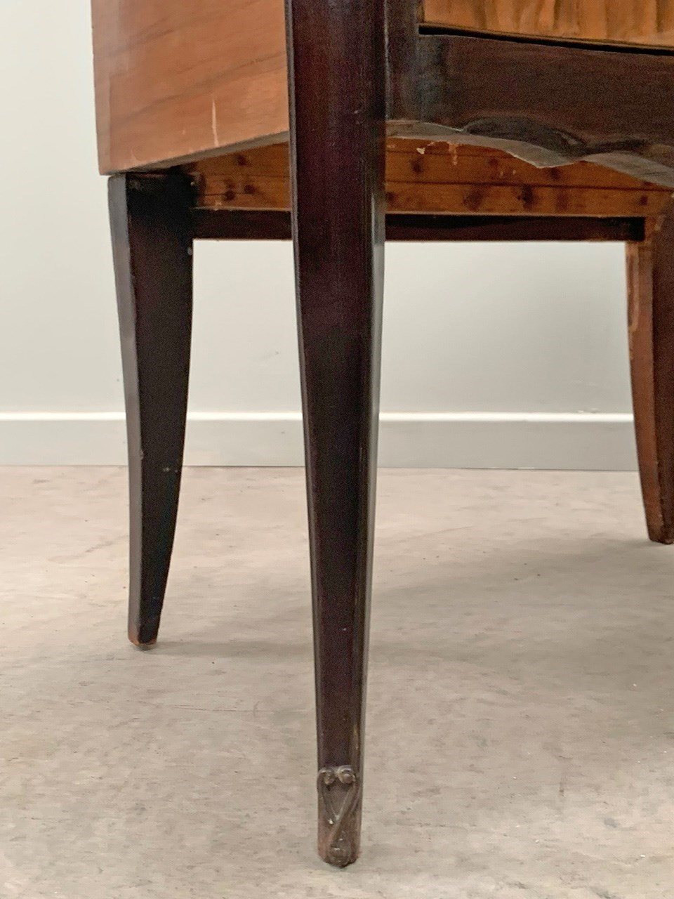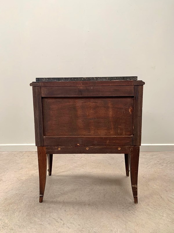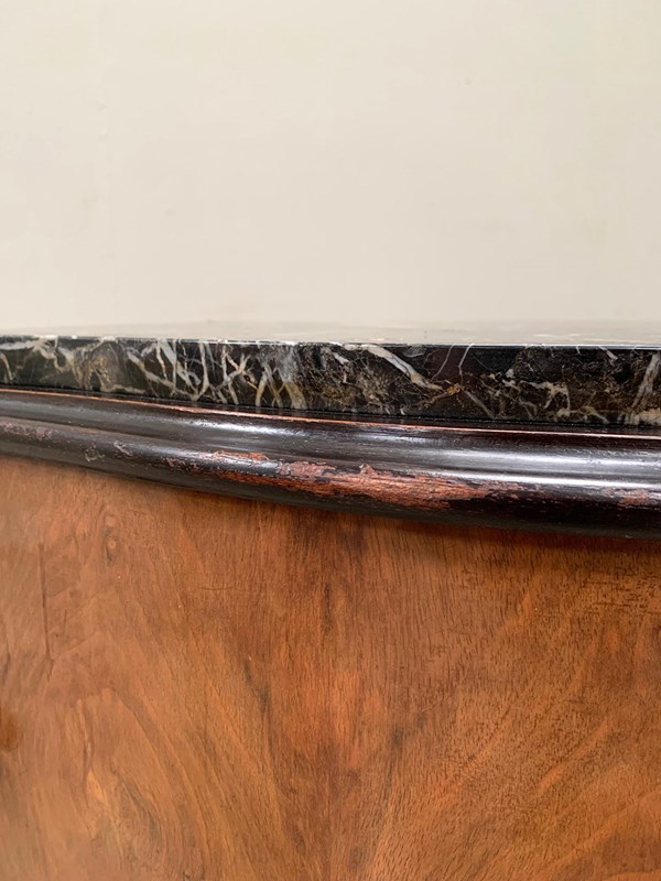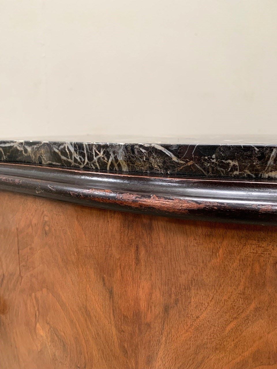 They have the same dimensions but have different details; the pattern in the black marble tops, the cabinet doors and the brass decorations.