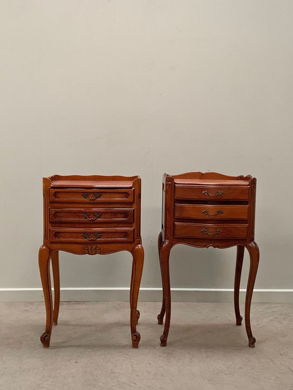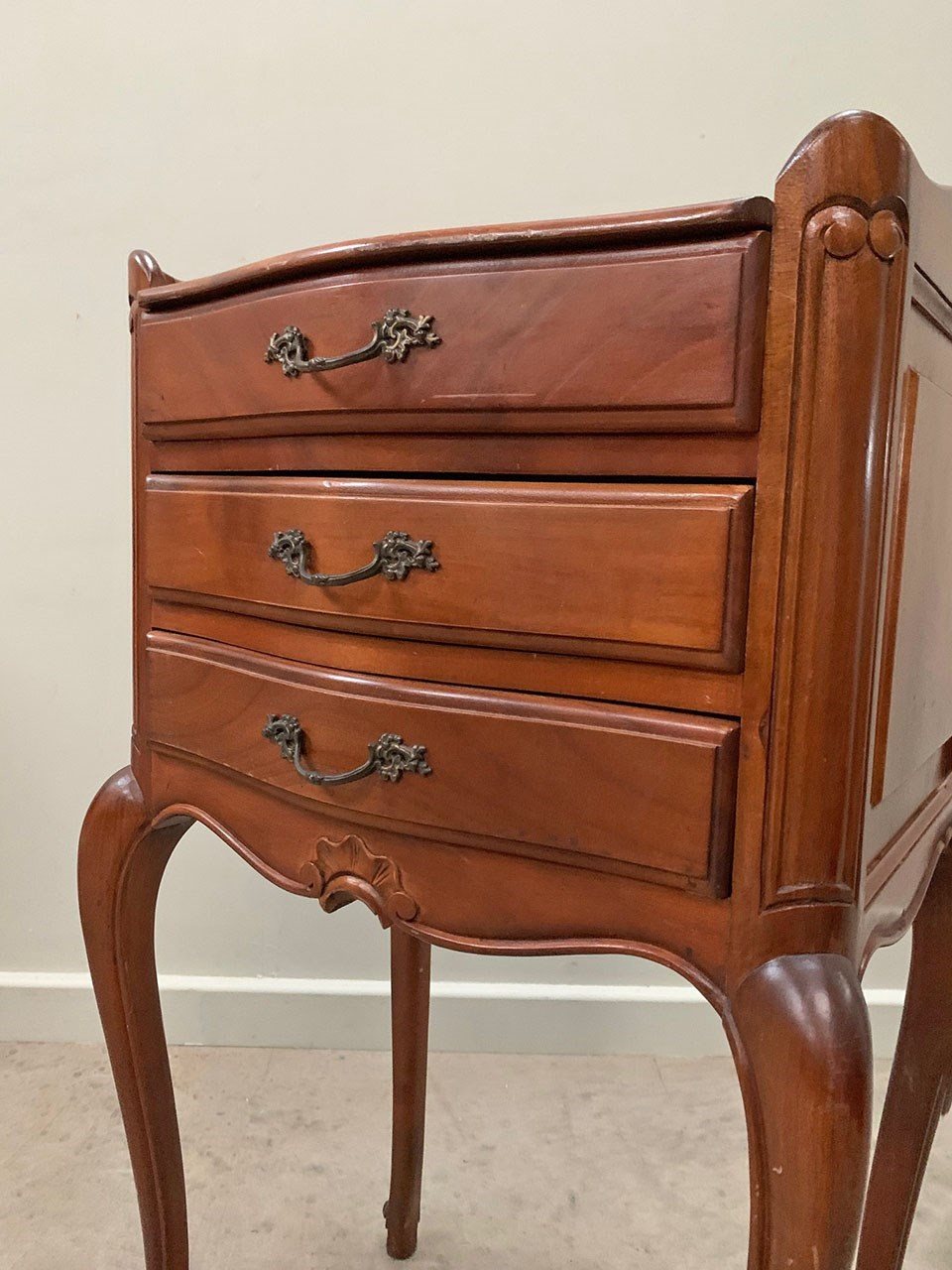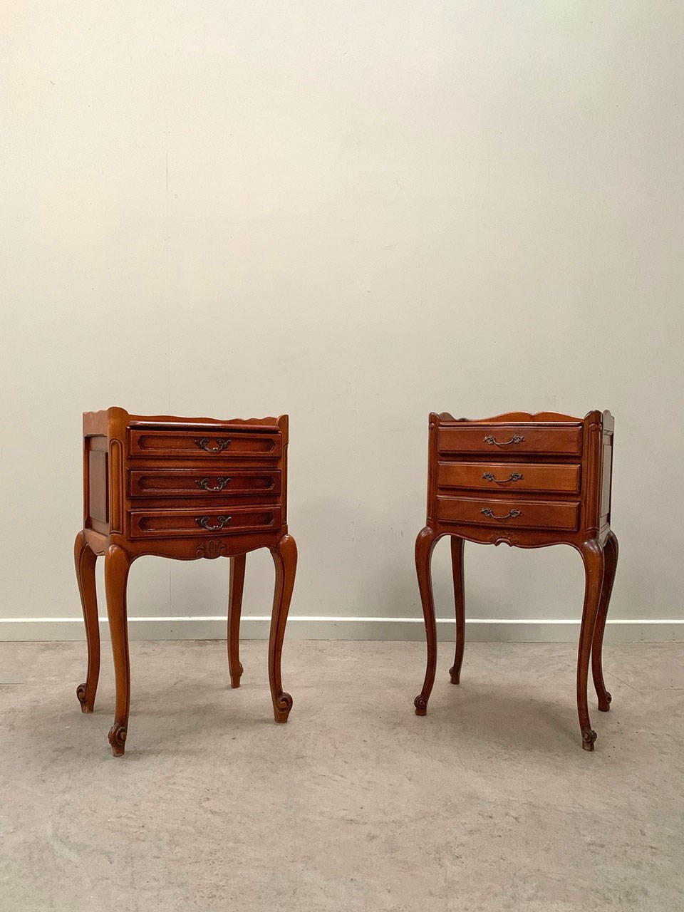 They sit on cabriole legs with scrolled feet. Early 20th century, fruitwood.