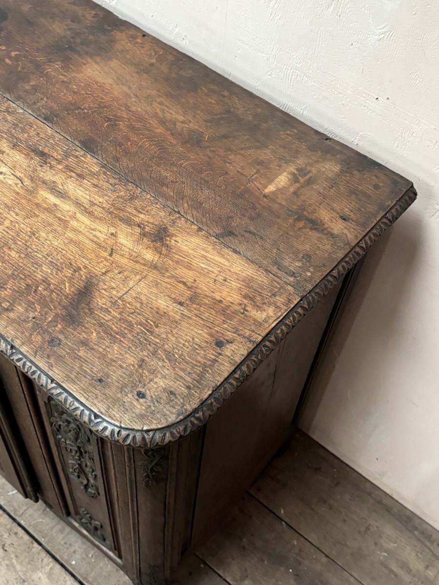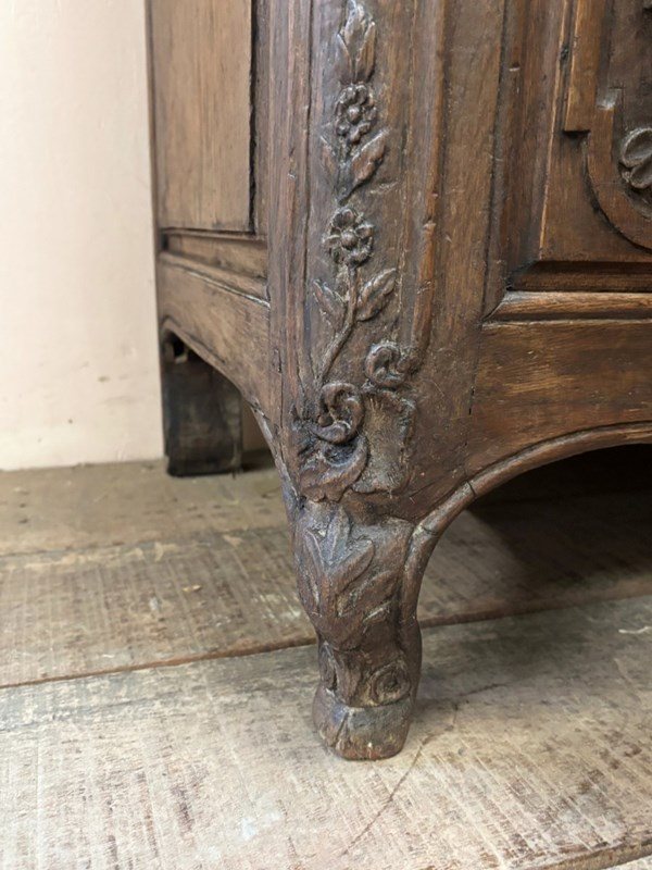 Great quality and condition late 18th century solid oak carved cupboard with drawer, standing on short cabriole legs.