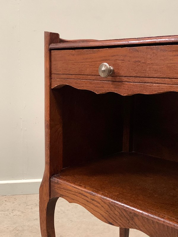 Early 20th century bedsides, each with a single drawer and open storage area.