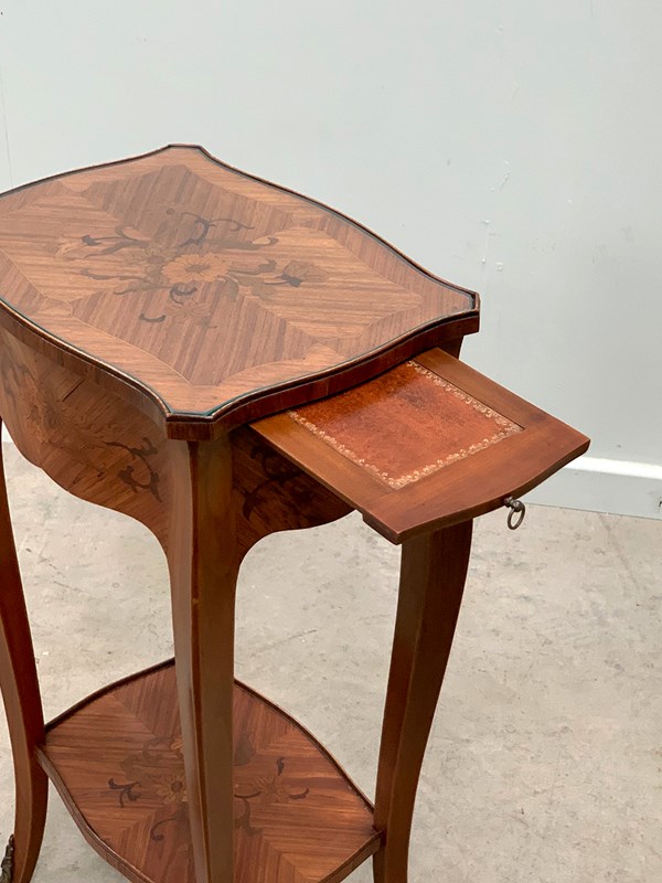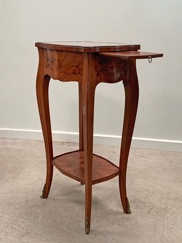 They are deeper than they are wide; they each have drawers on the front and rather unusually, there are little pull out trays at the back each with a leather surface.