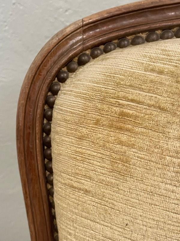 The old mustard yellow chenille fabric is faded but serviceable. With sprung seats.