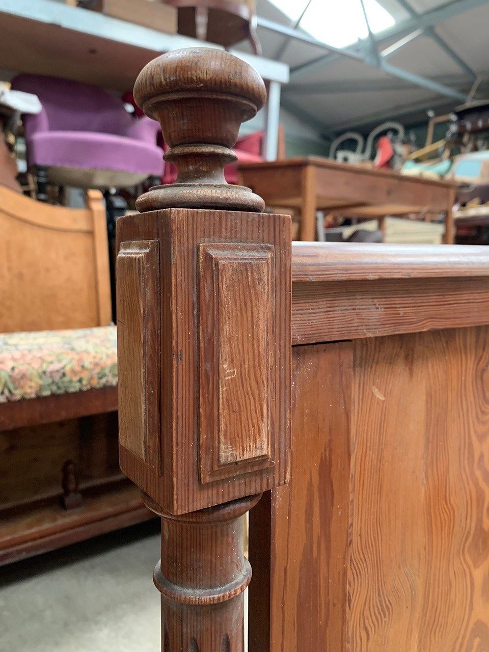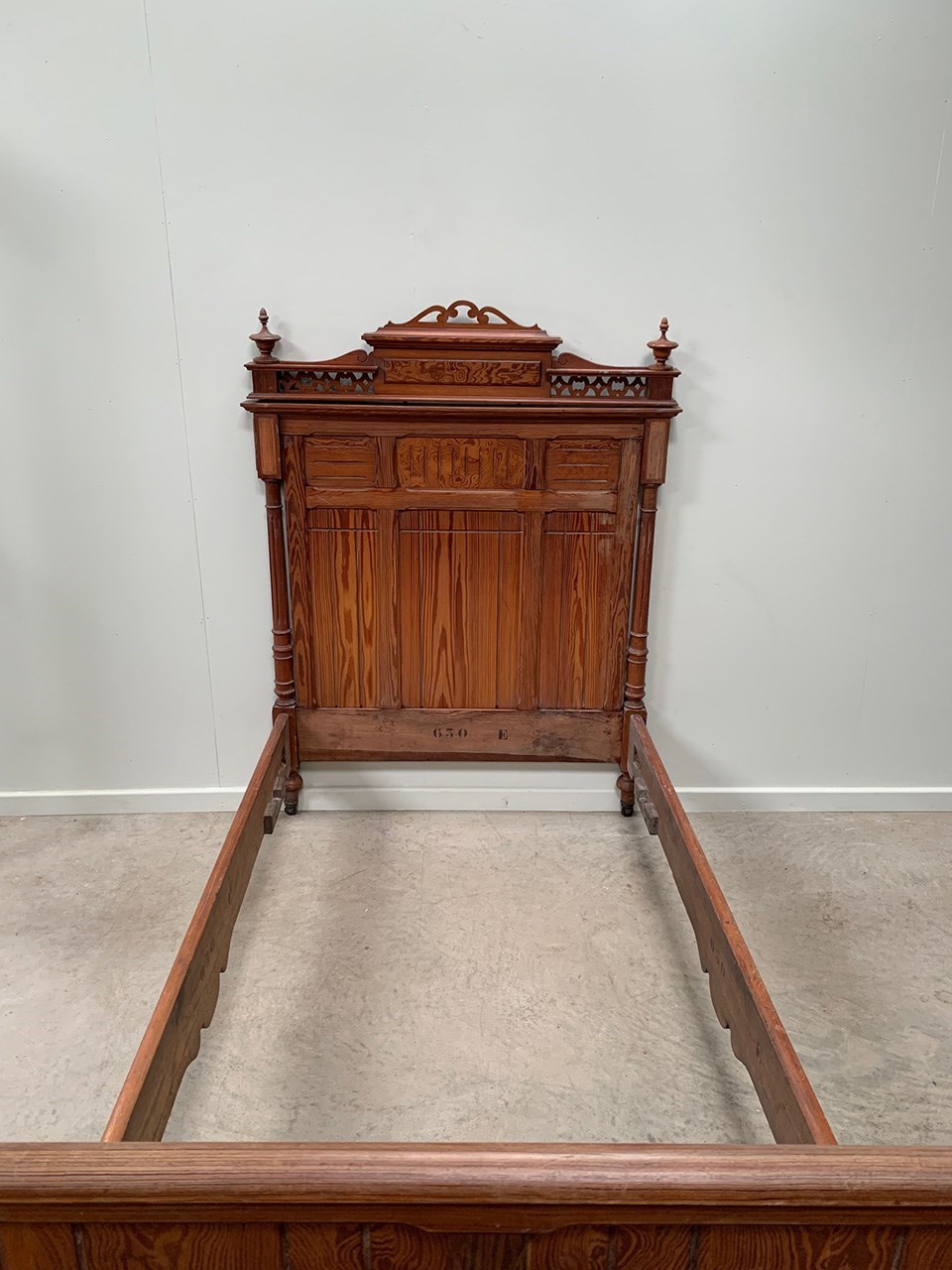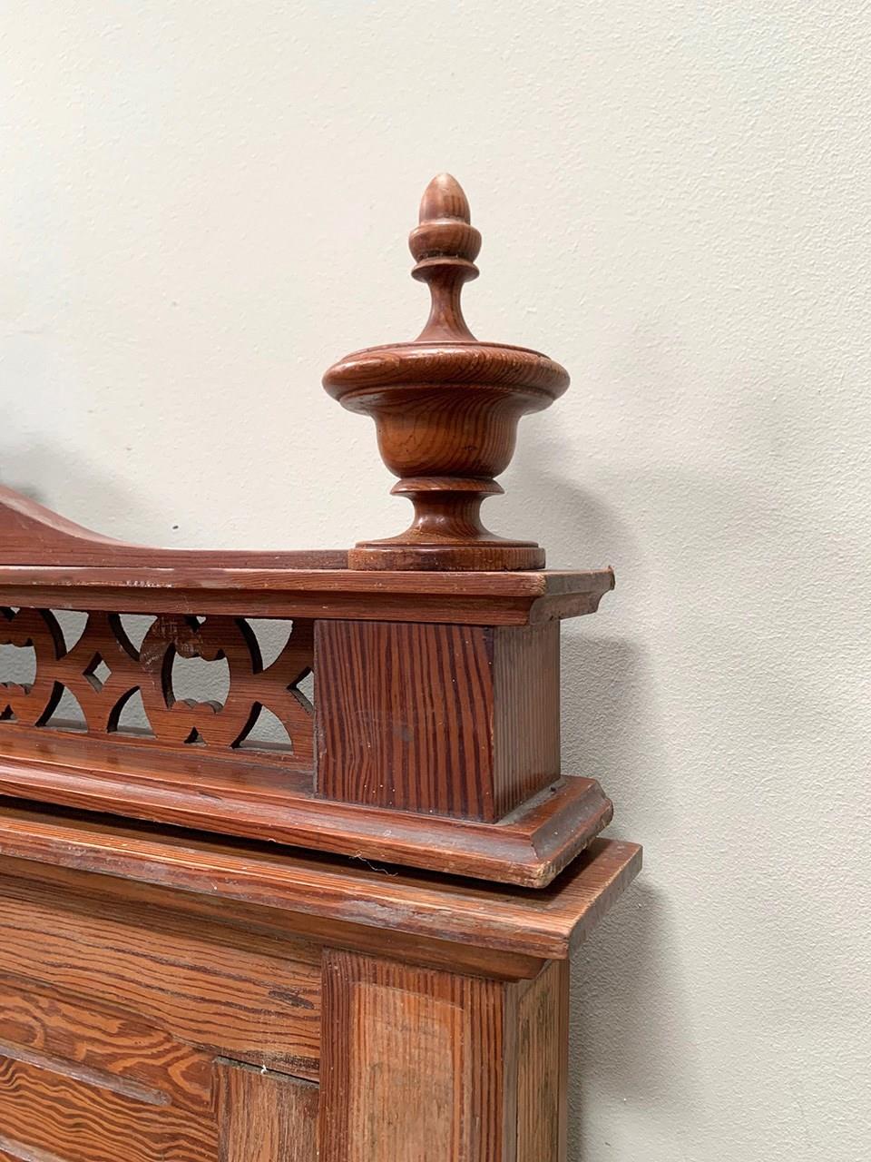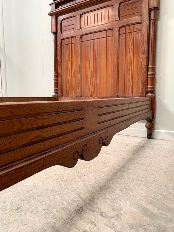 With panelled and carved details, there is a decorative crest to the headboard and finials to each bed post.