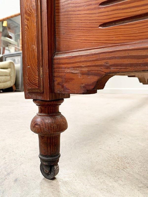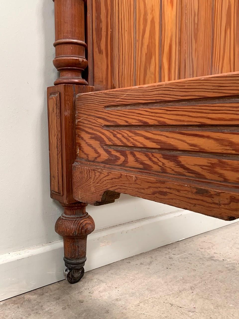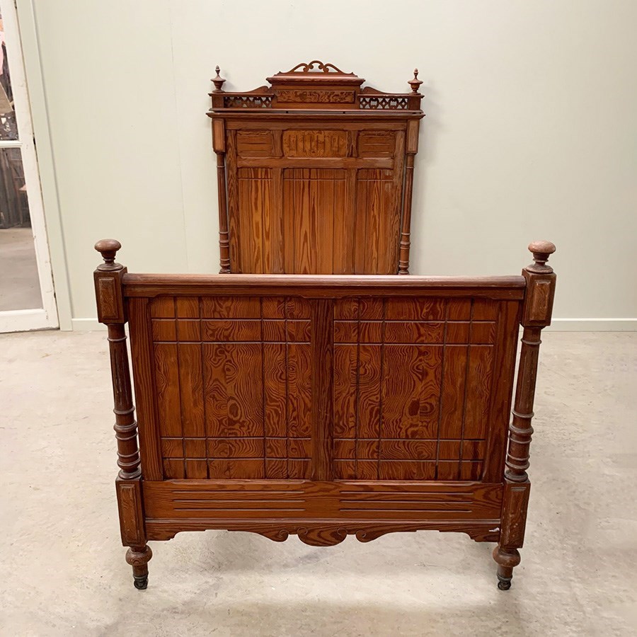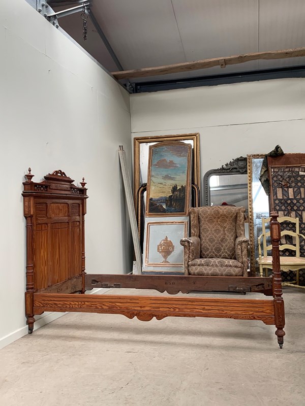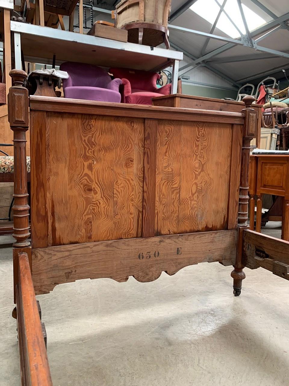 With panelled and carved details, there is a decorative crest to the headboard and finials to each bed post.