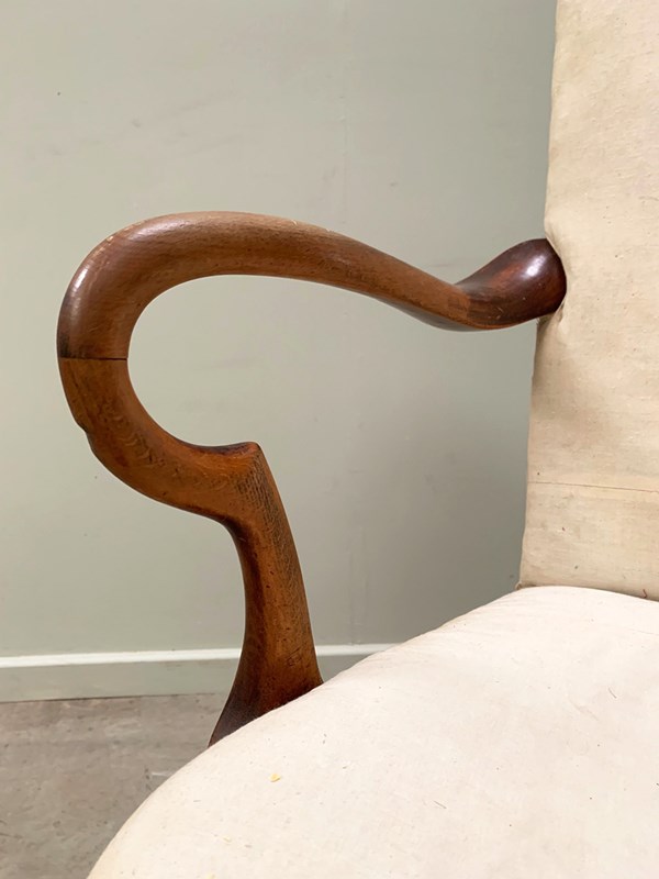 A slim and high backed early 19th century occasional chair, with beautifully tactile arms which have developed a lovely time worn patina.