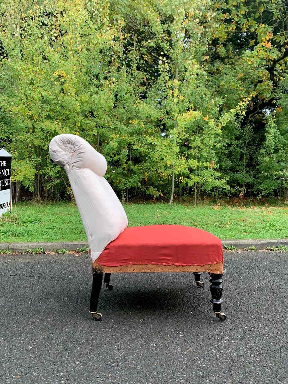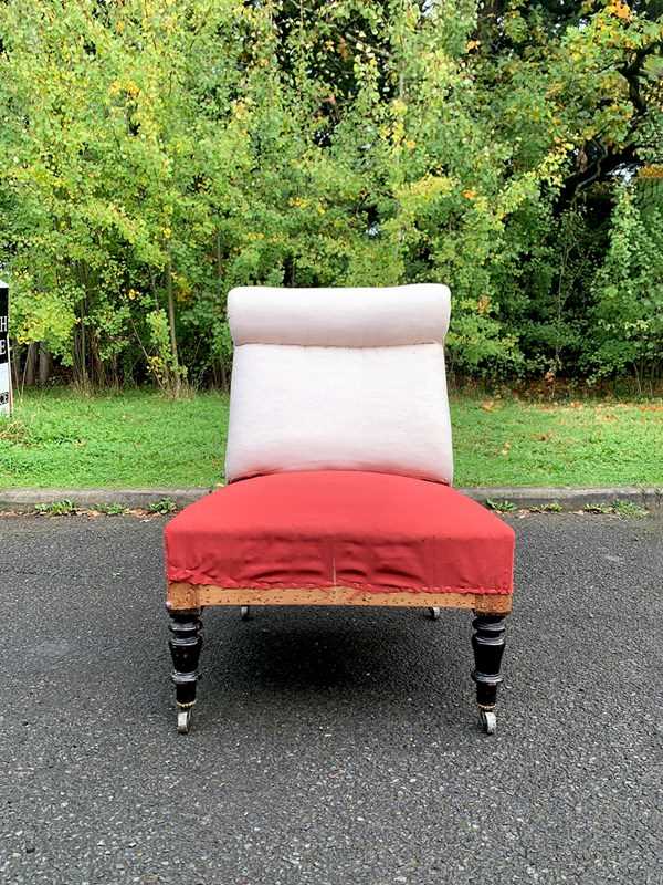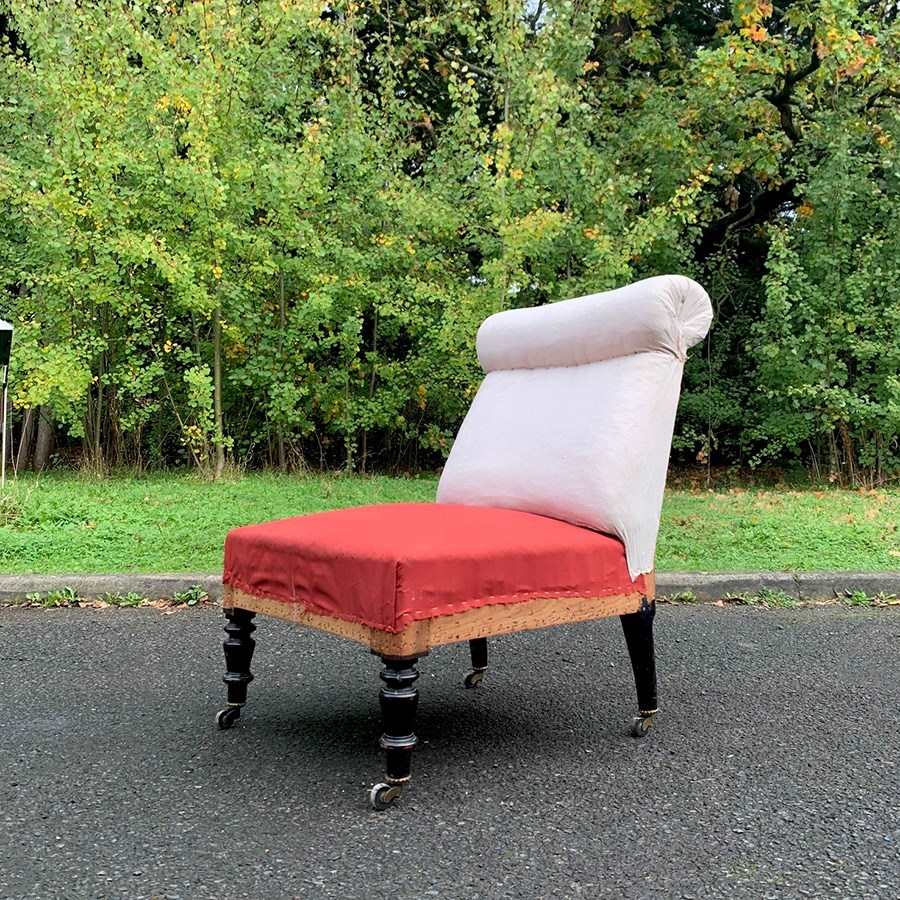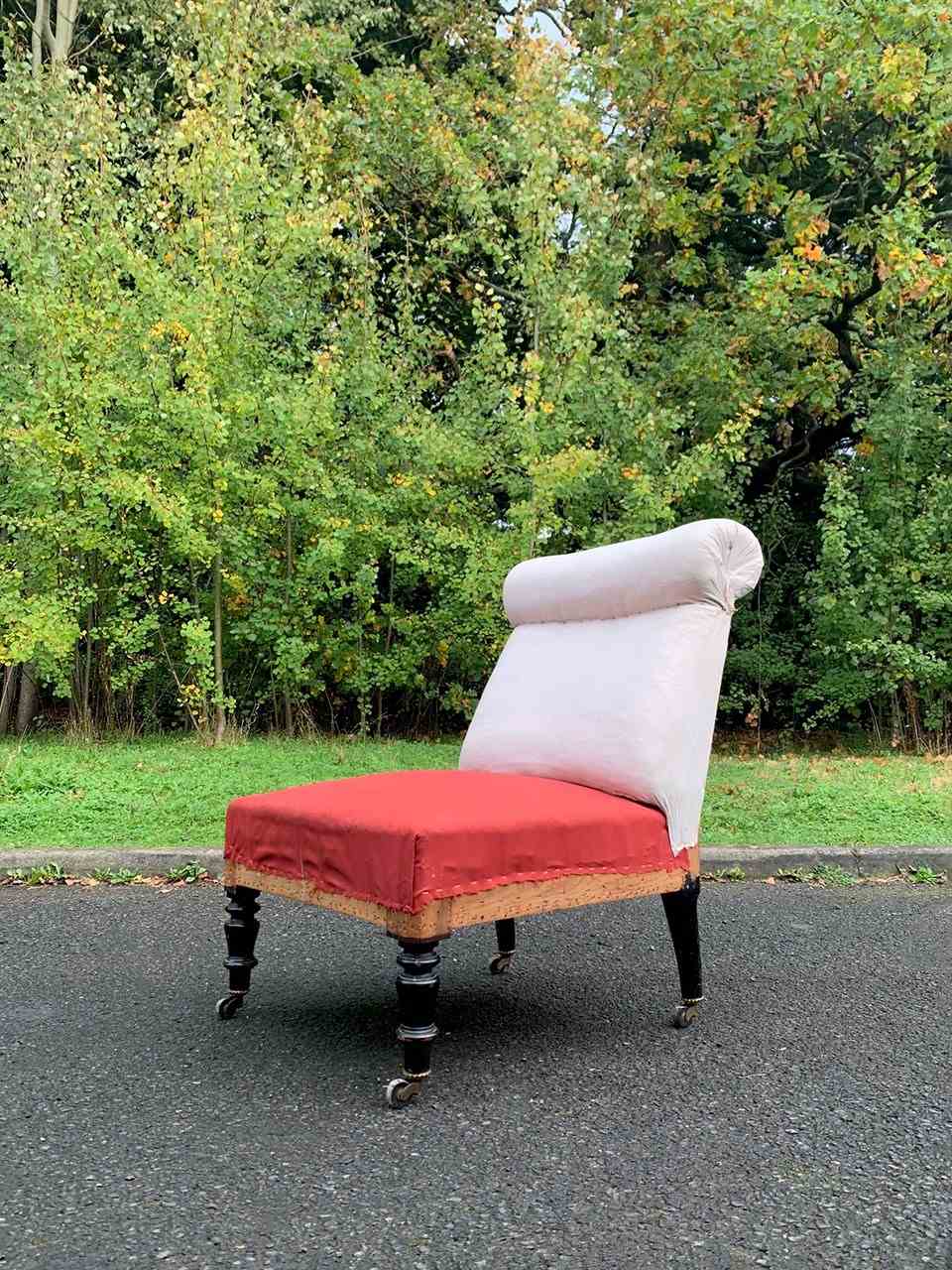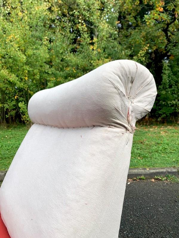Napoleon III occasional chair with a roll top headrest.