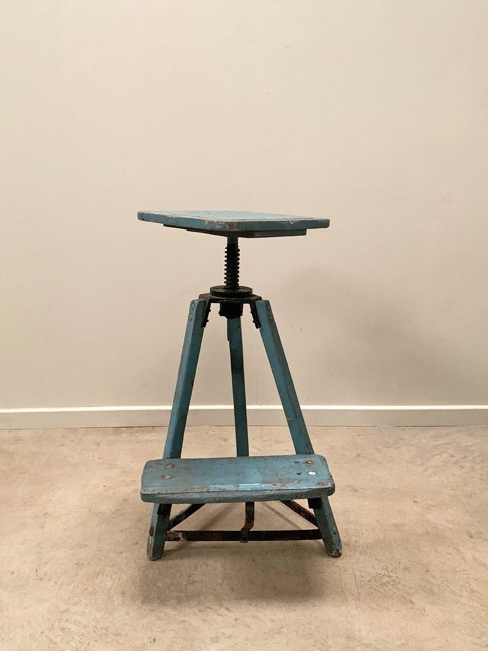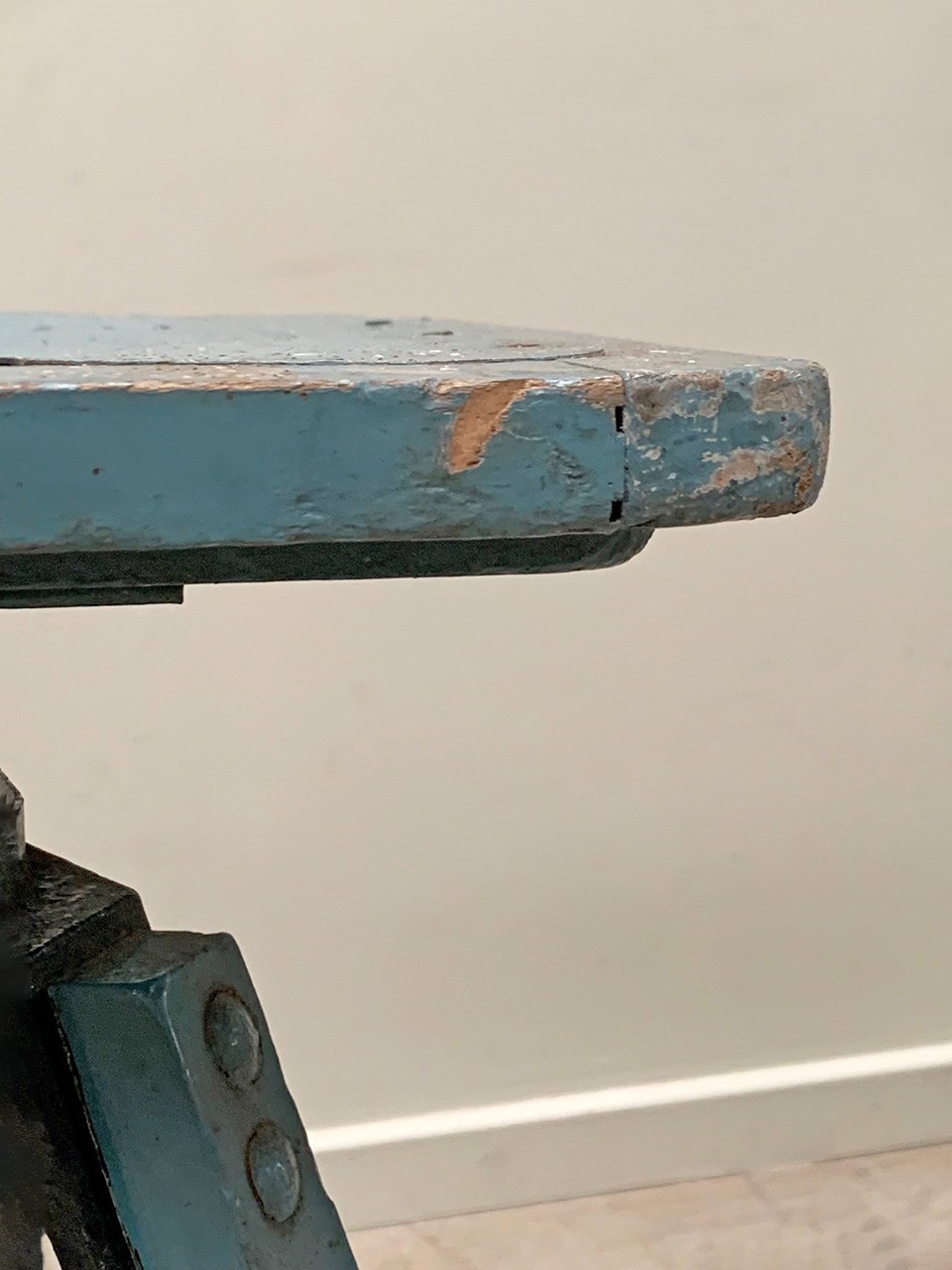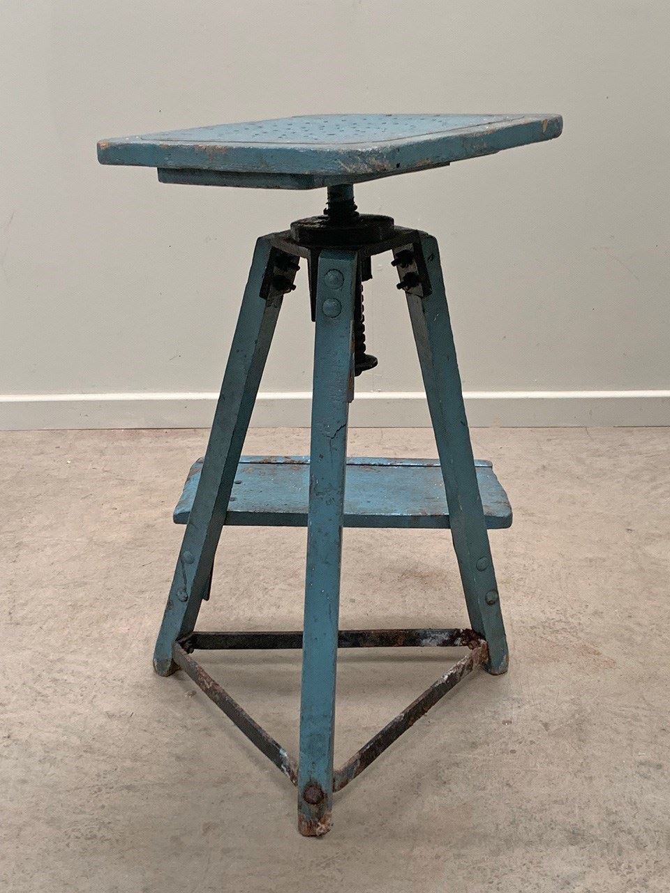 A striking early 1900s sculptor's stand which has retained its original blue paint.