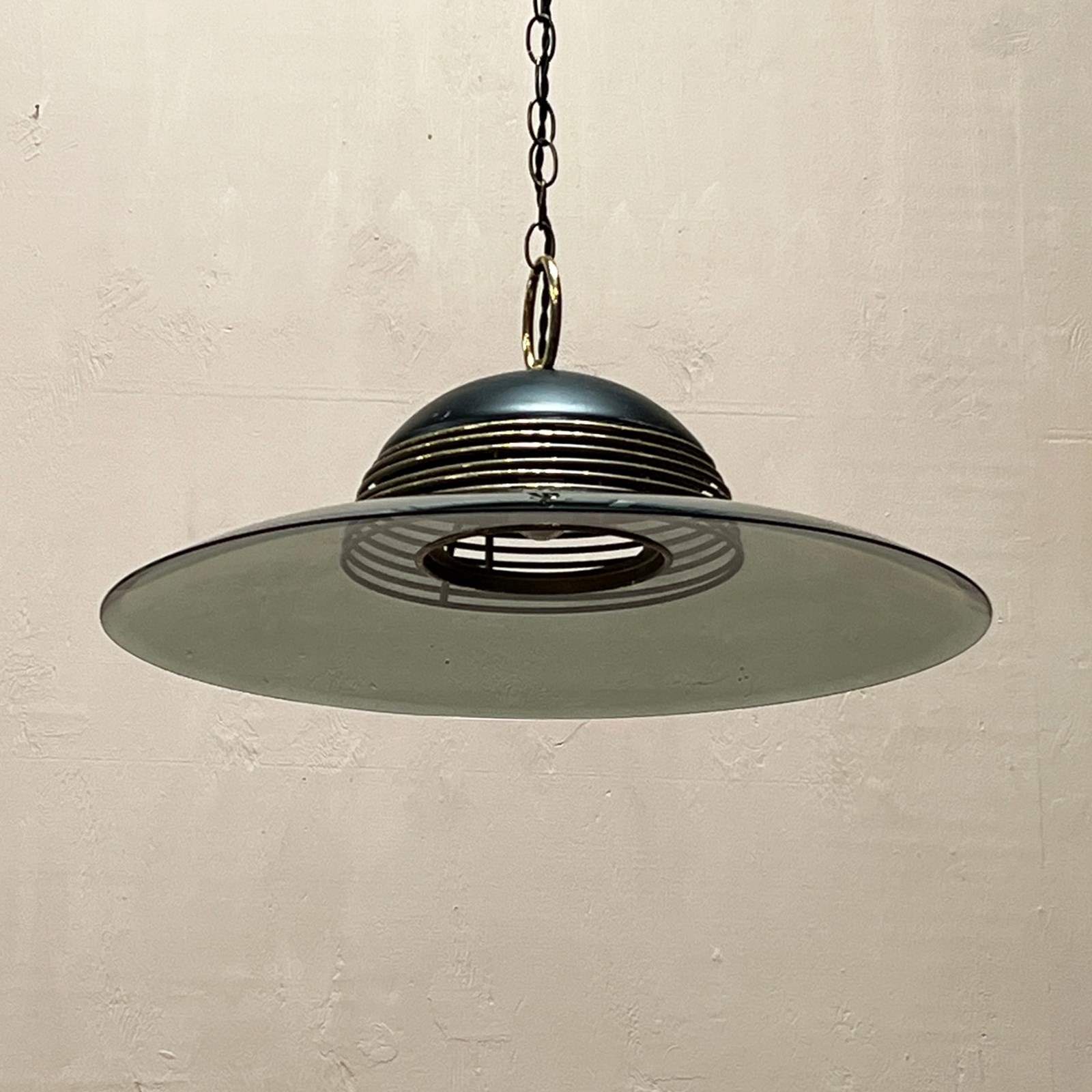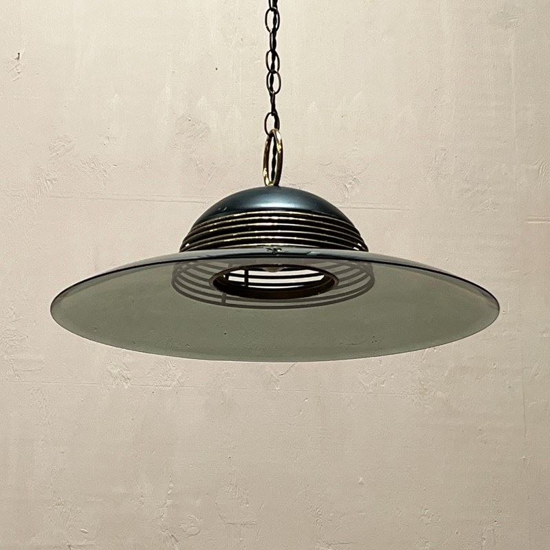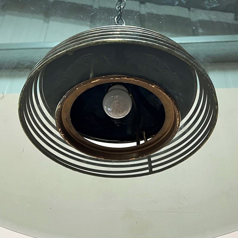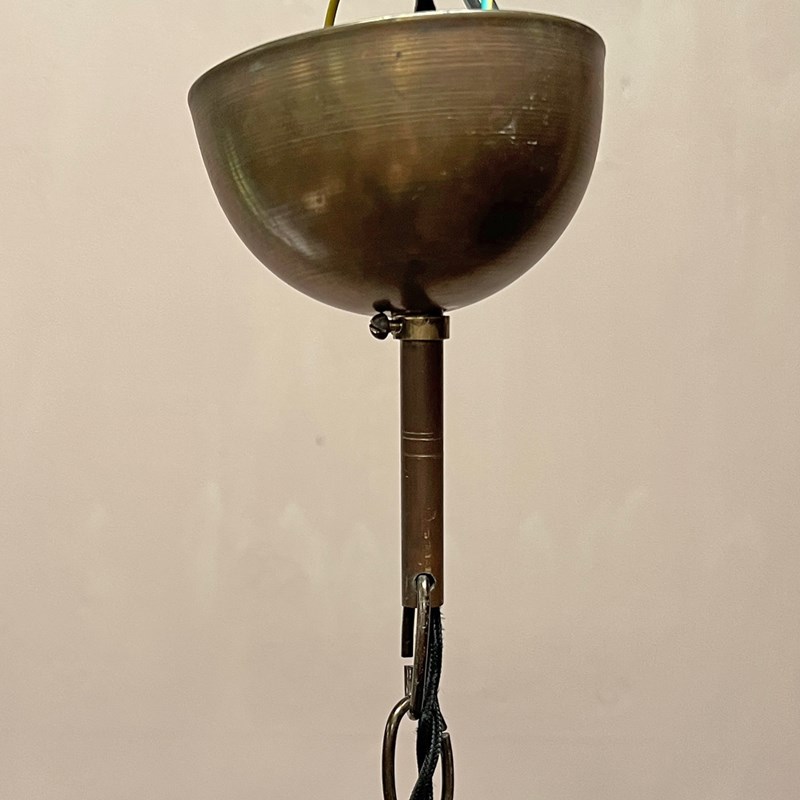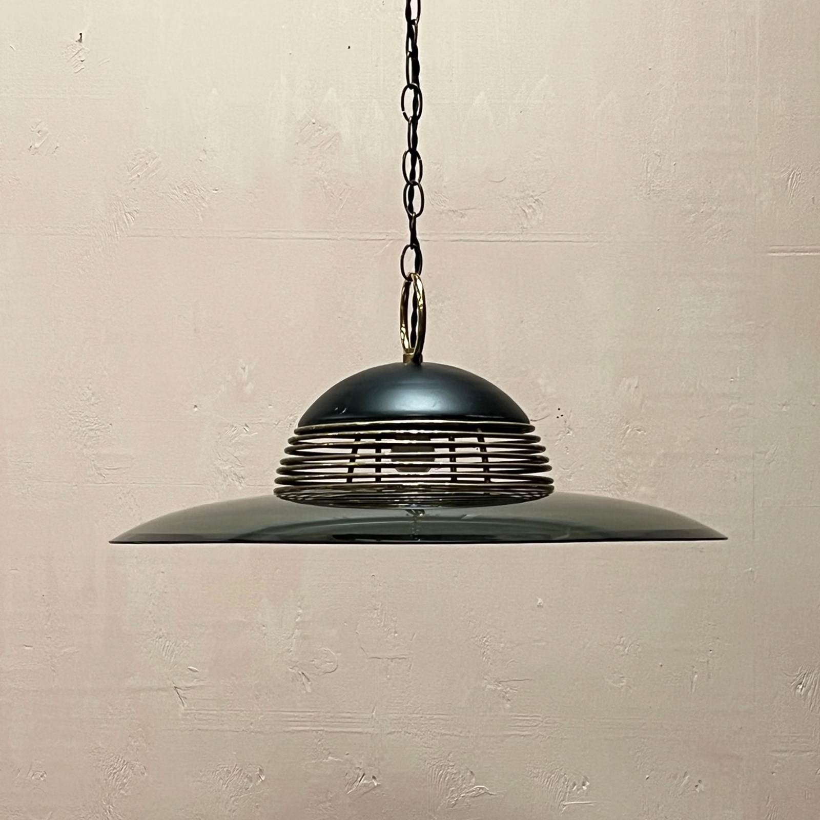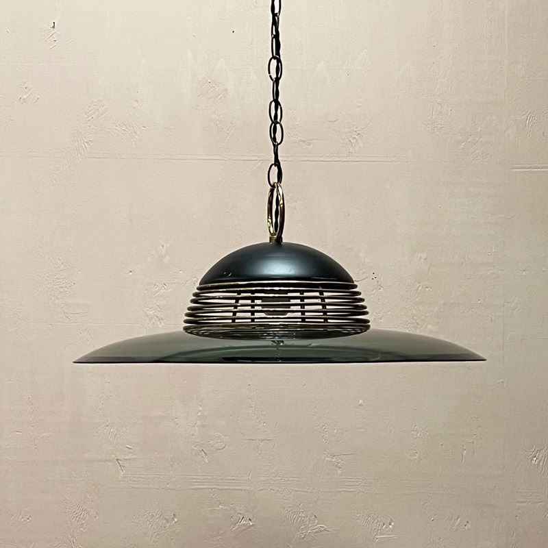 1960’s smoked glass and brass pendant light with original chain and ceiling cup. Re-wired