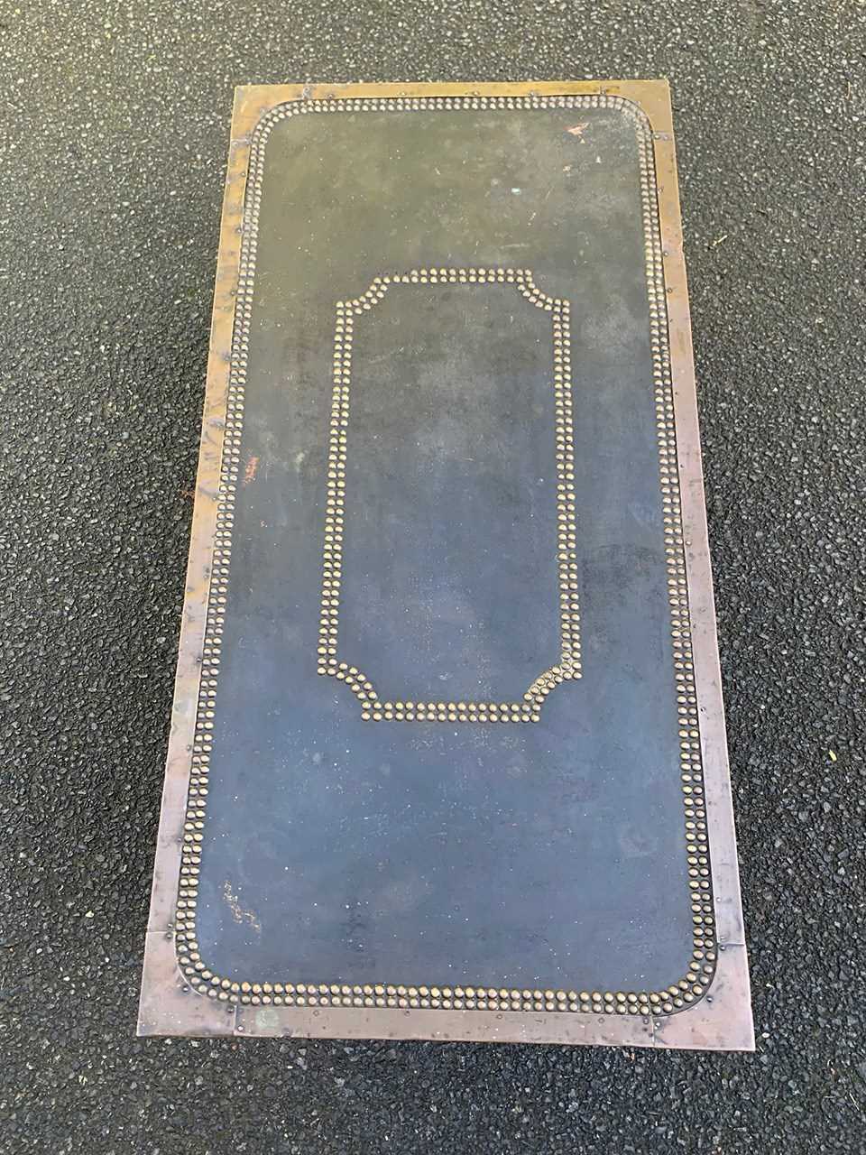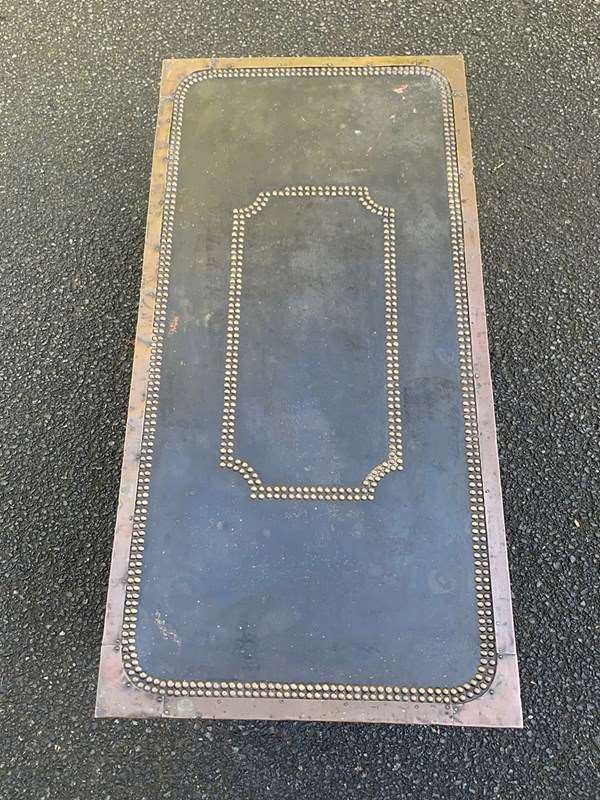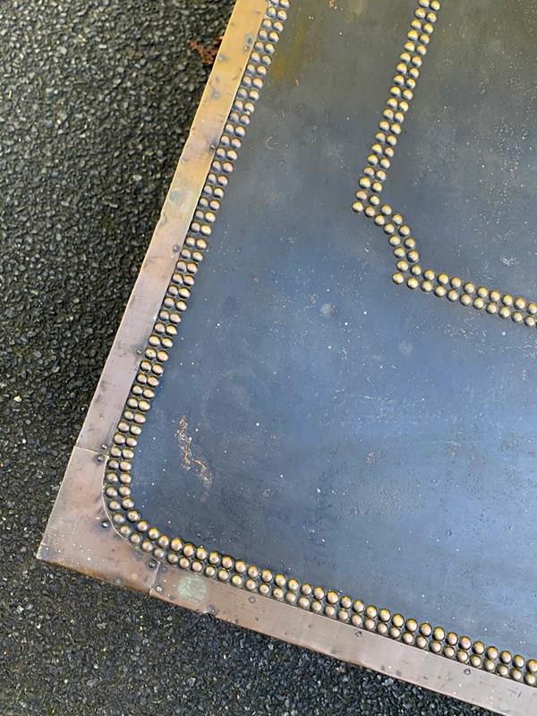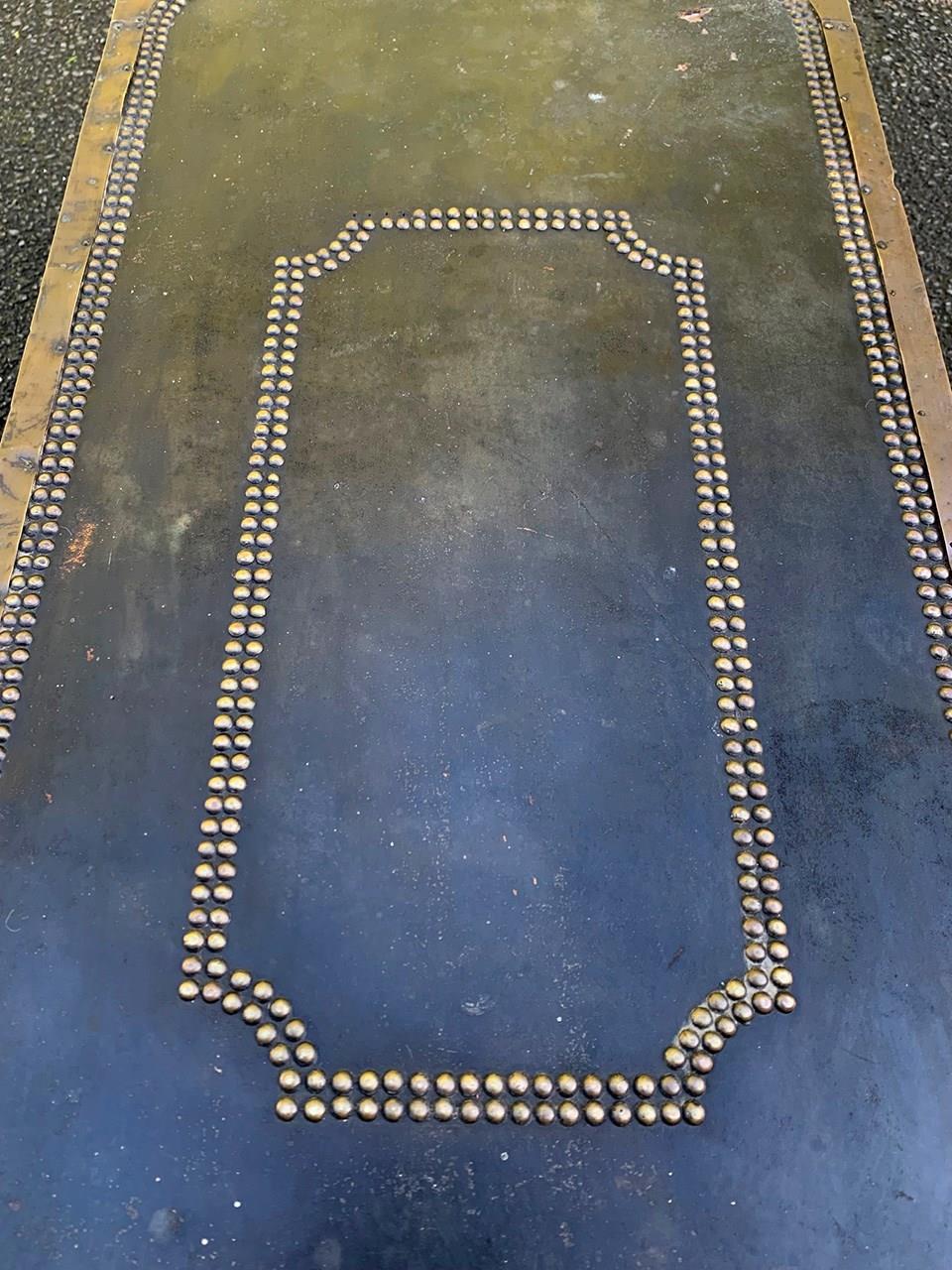 Decorated with studs throughout. Inside is lined with a beige floral paper.