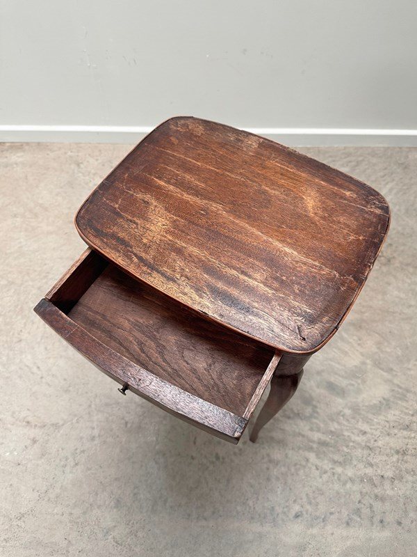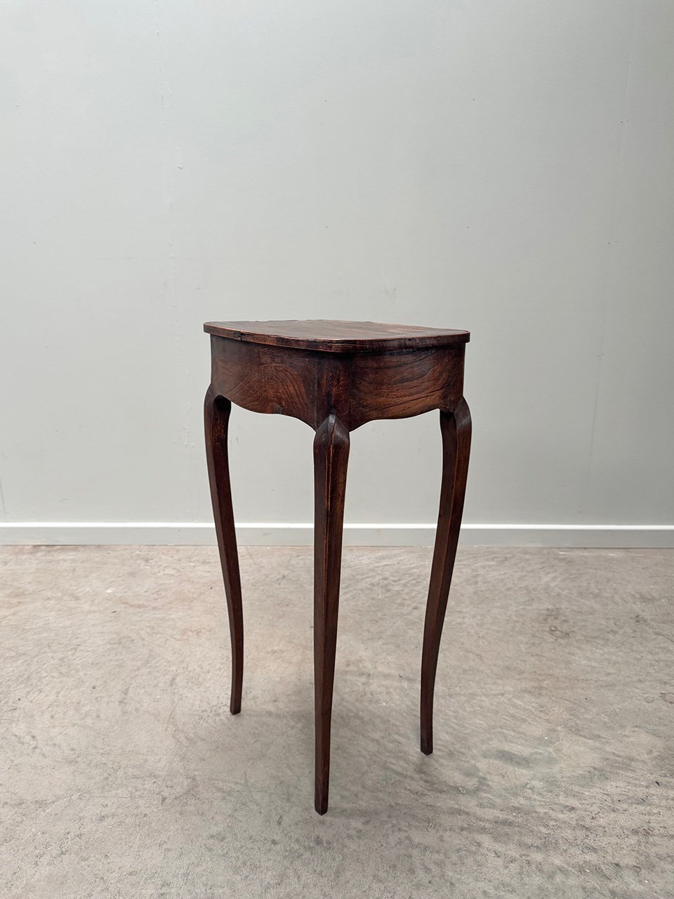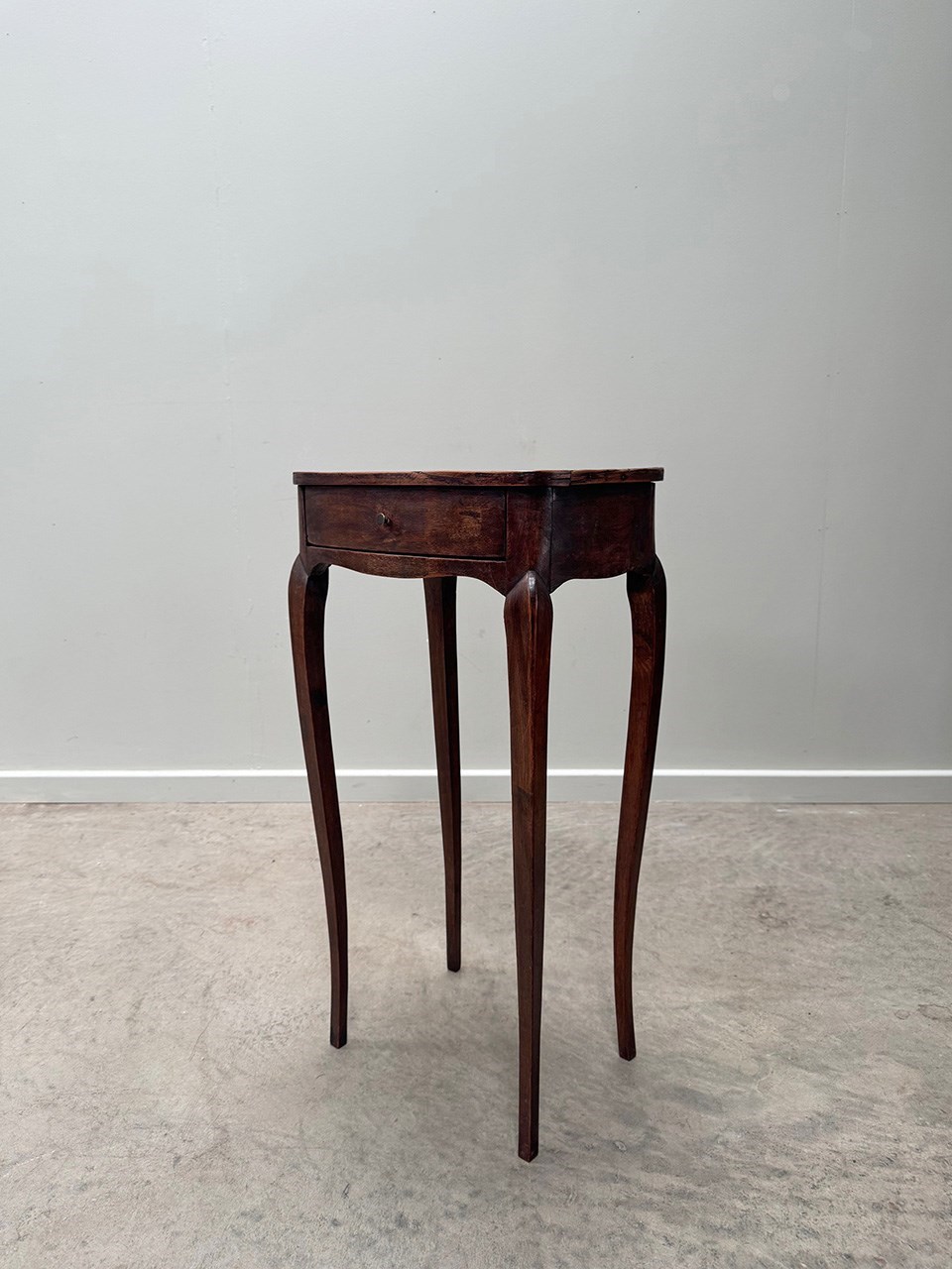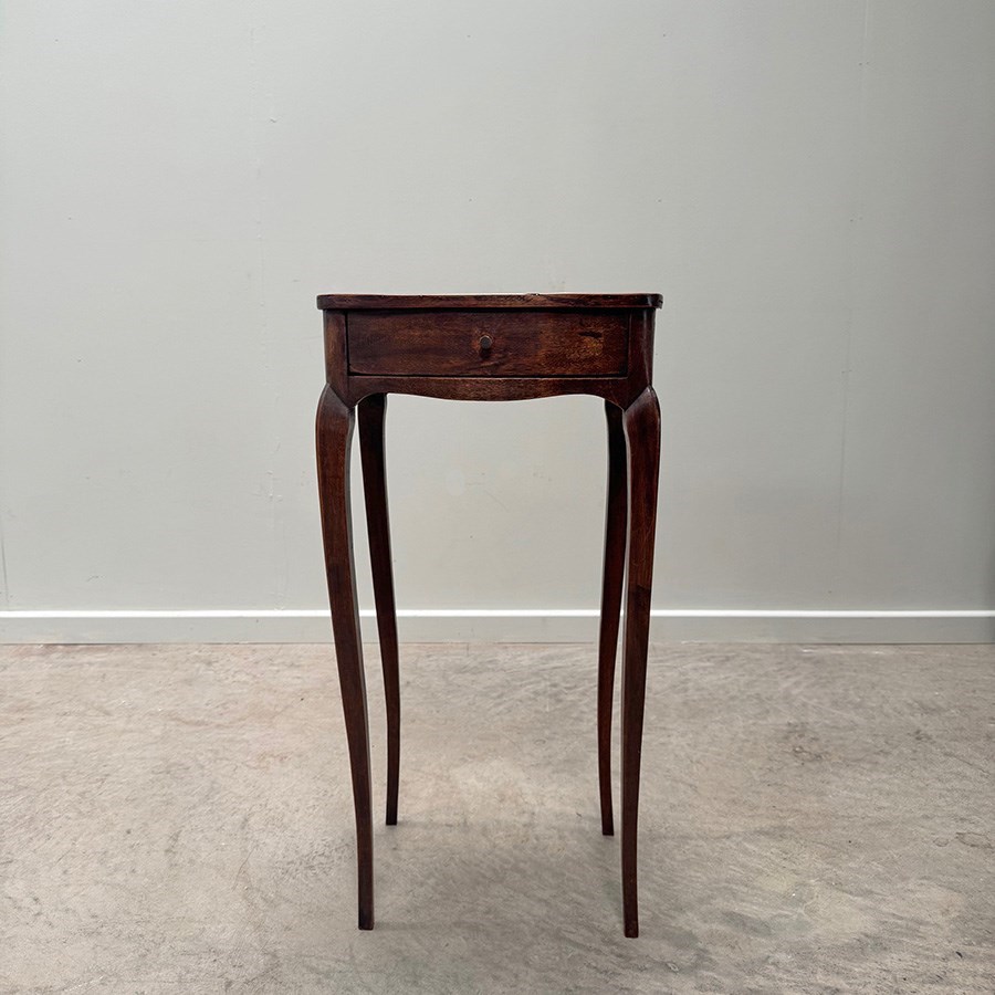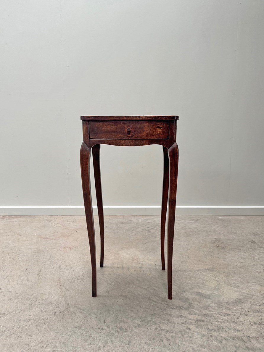 A slender, 19th century cherrywood bedside cabinet or side table with a slim drawer.
