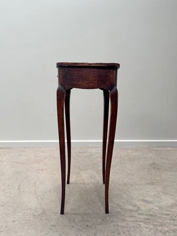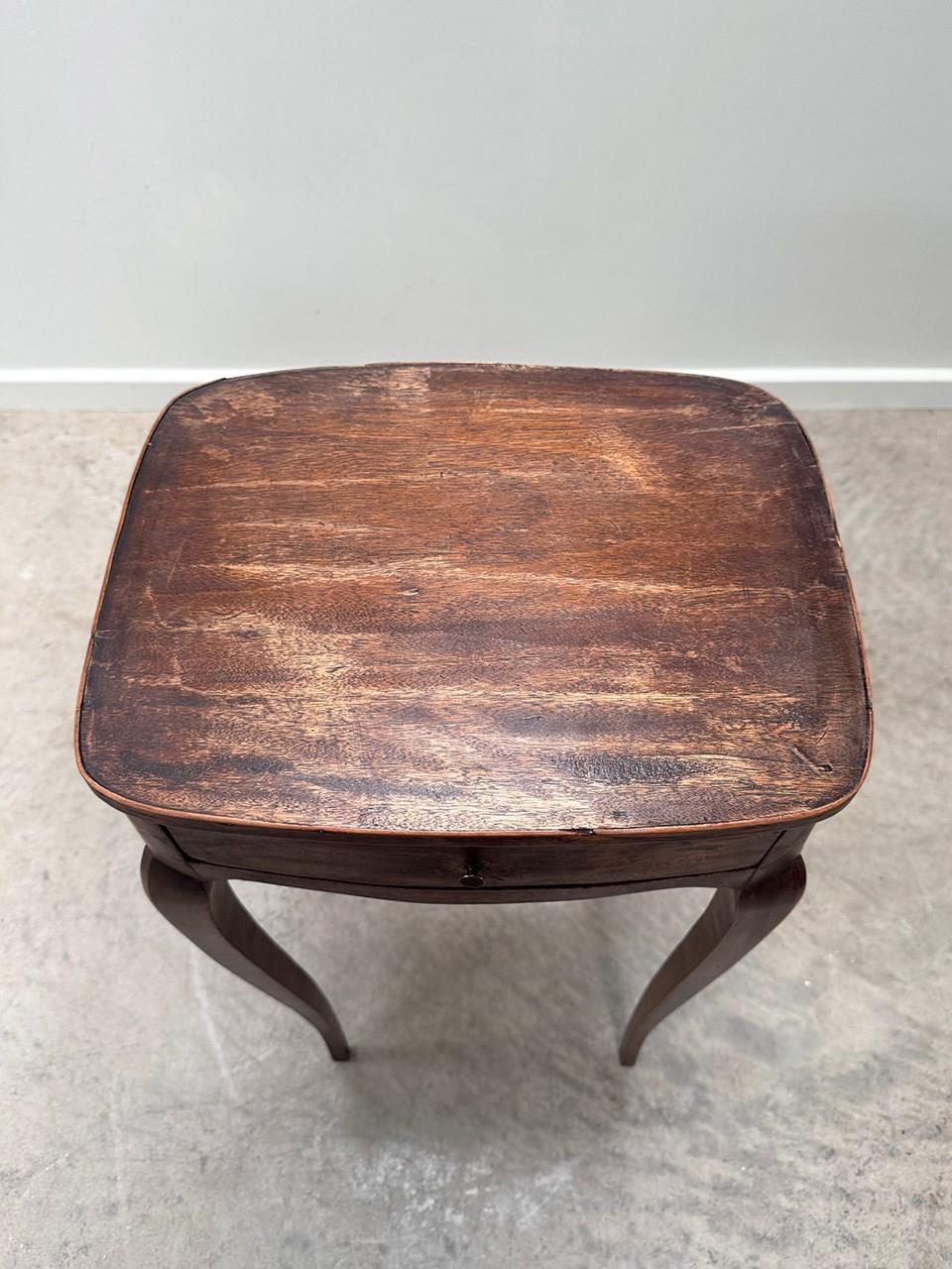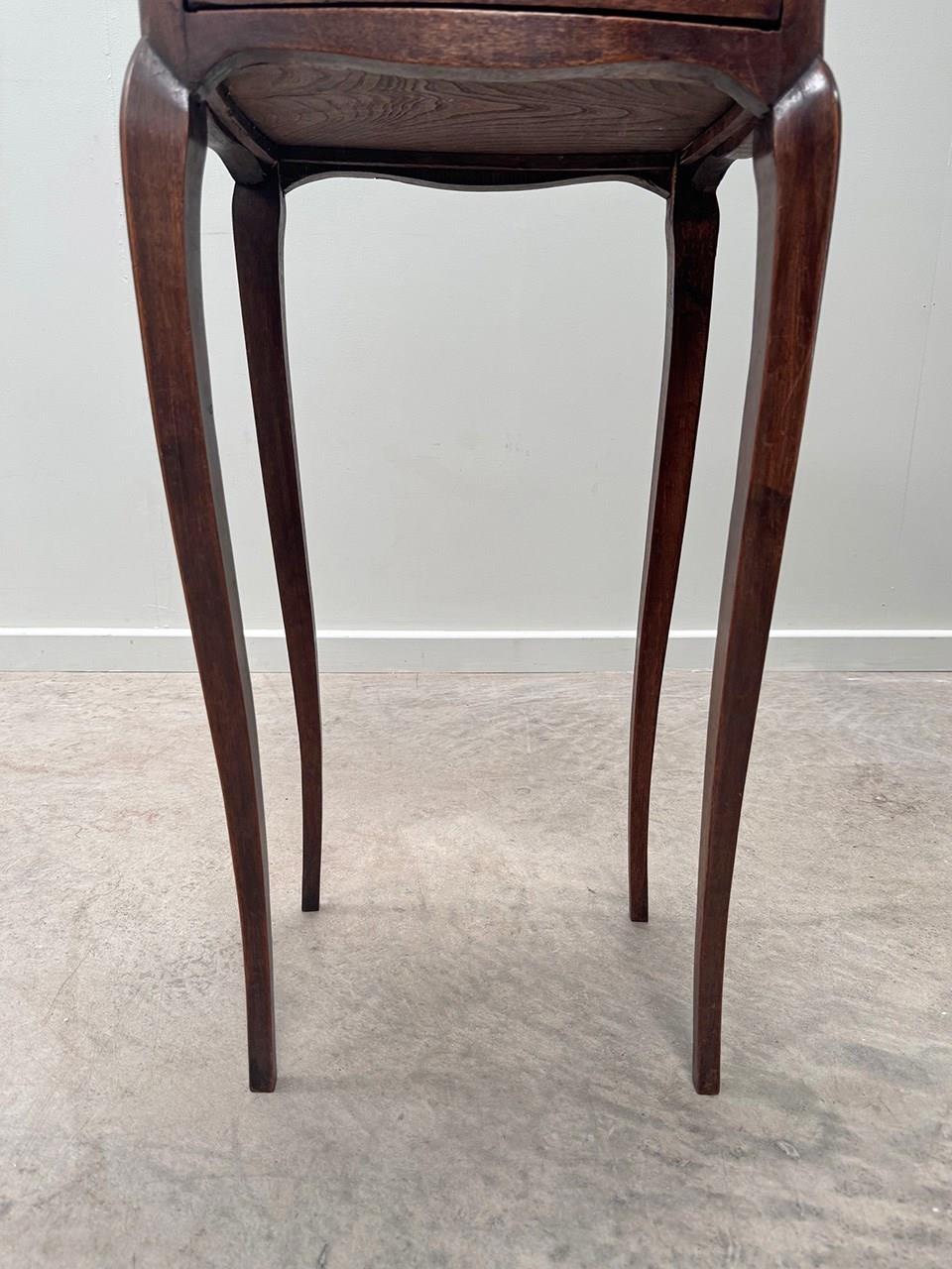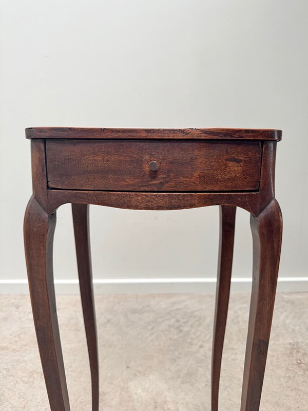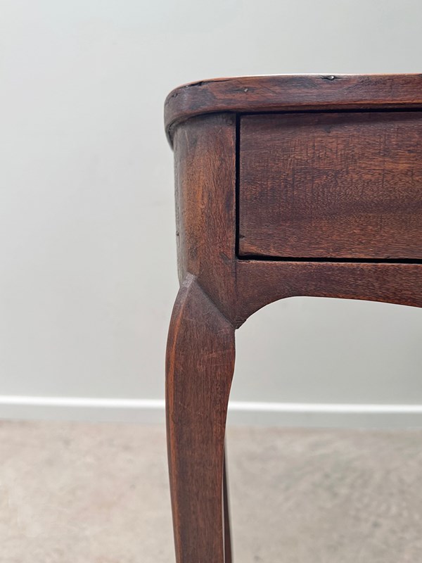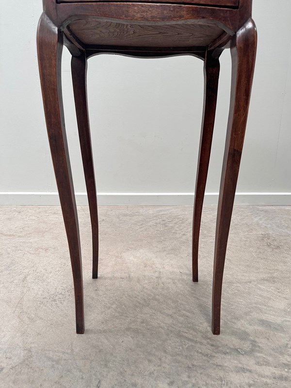 A slender, 19th century cherrywood bedside cabinet or side table with a slim drawer.