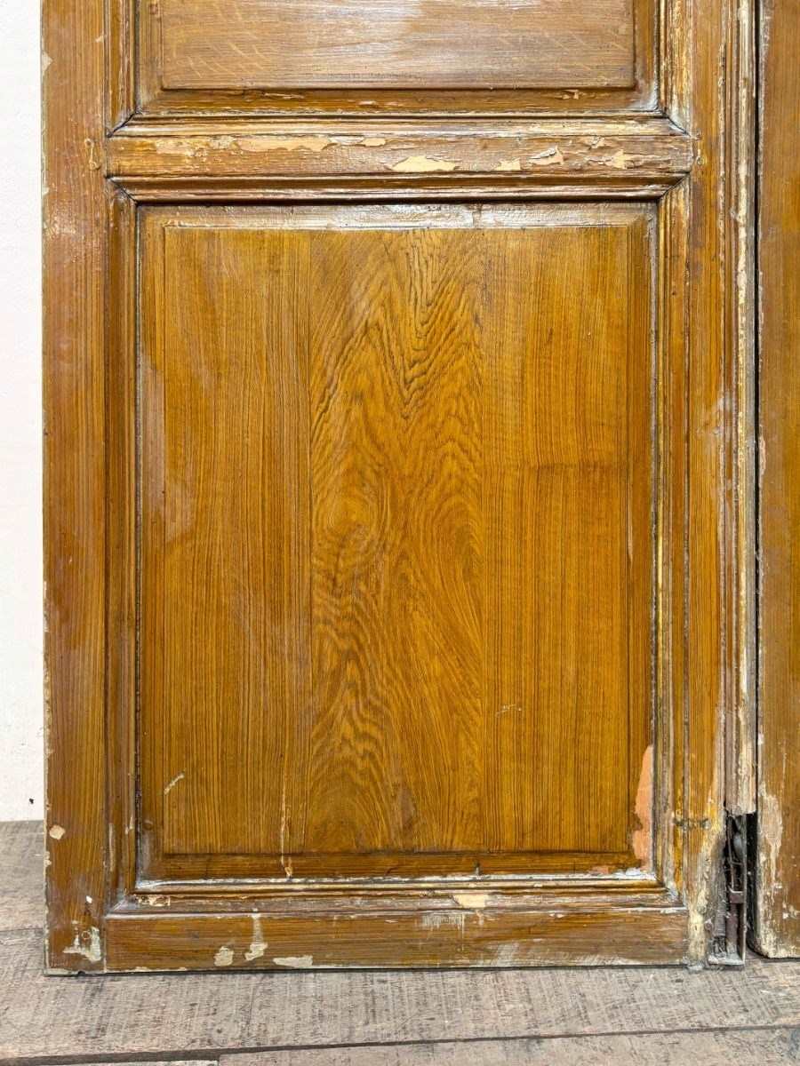 Pair of late 19th century pine doors with original oak grained finish.