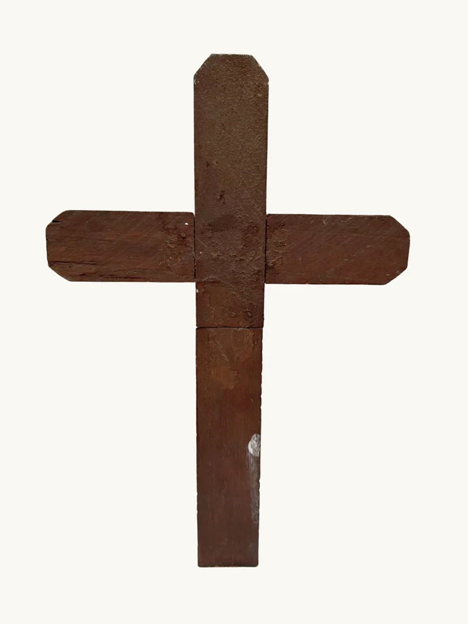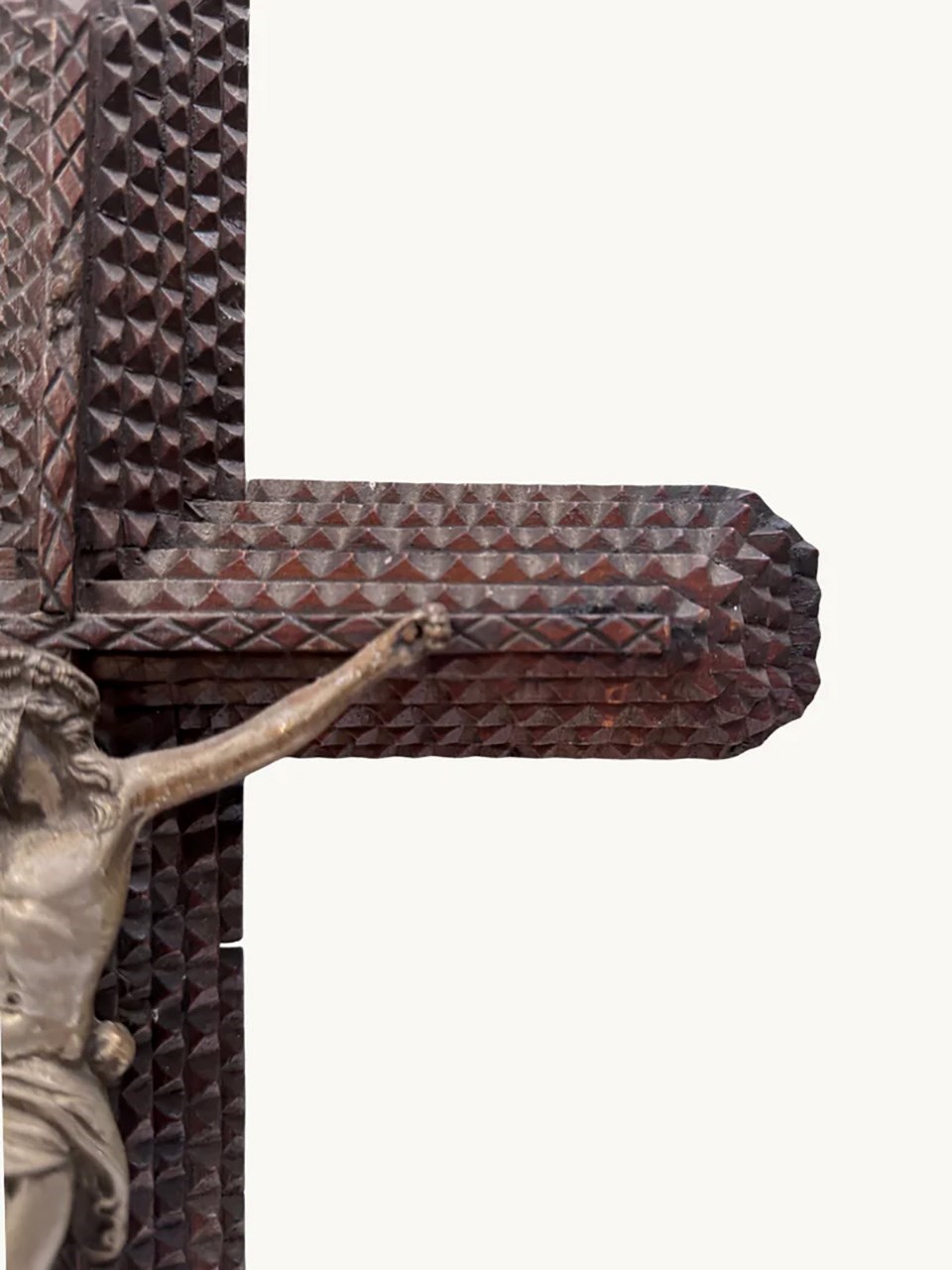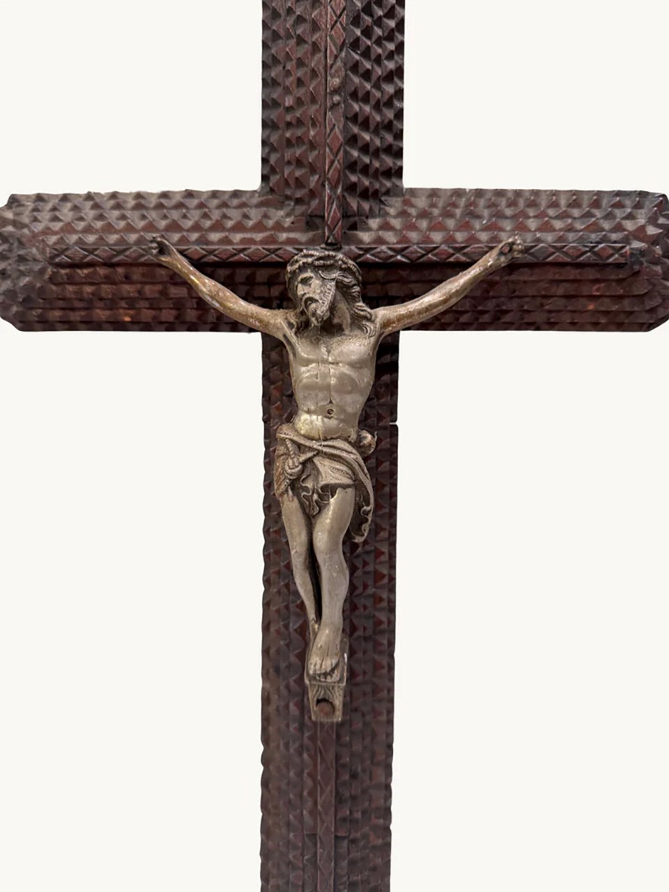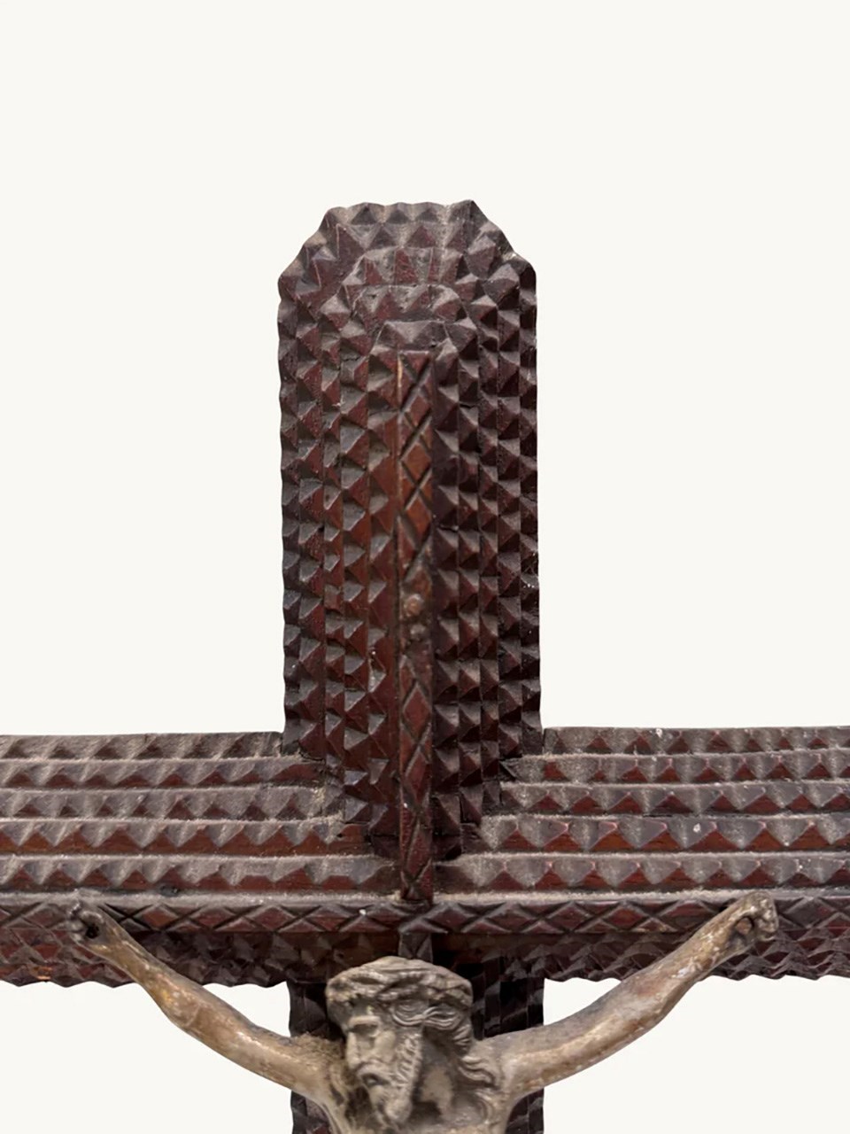 A very rare tramp art crucifix, which is believed to have been made by prisoners.
