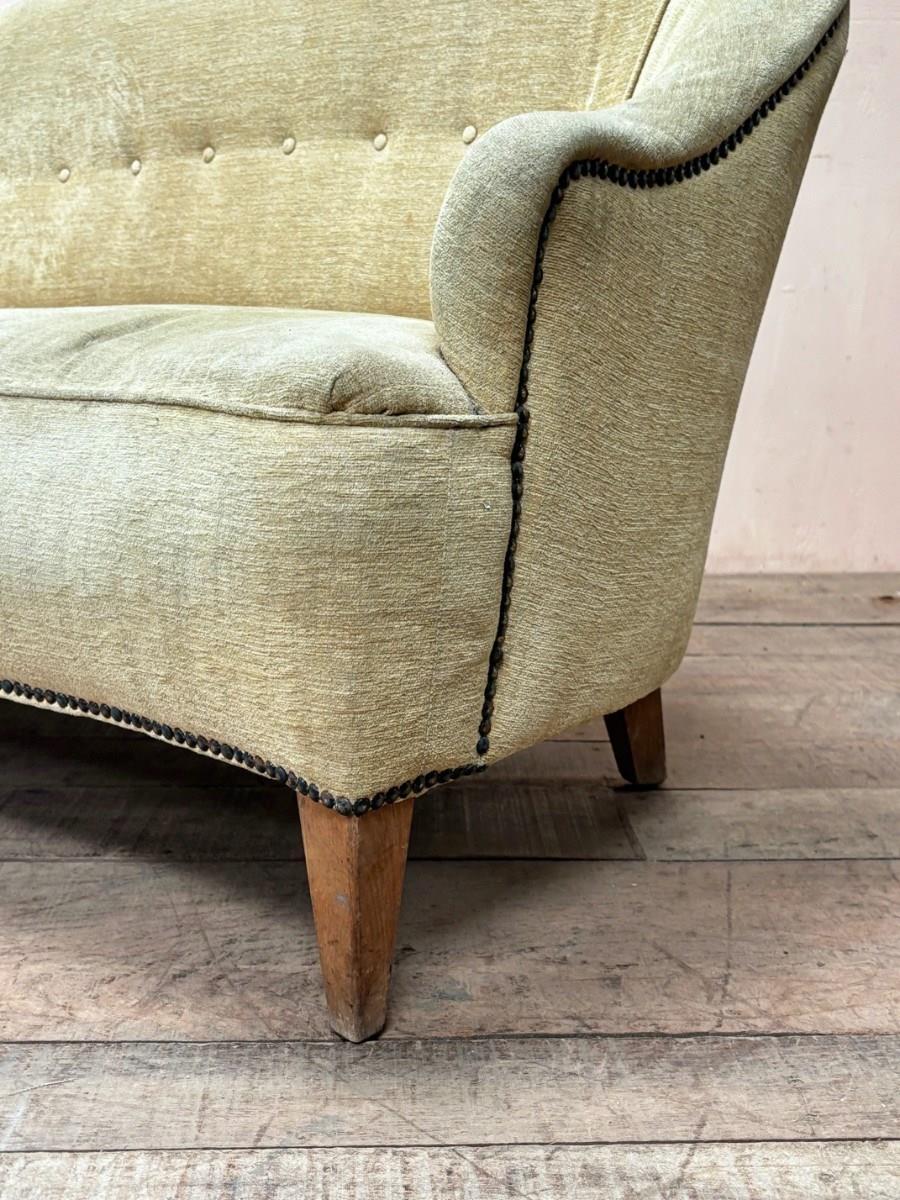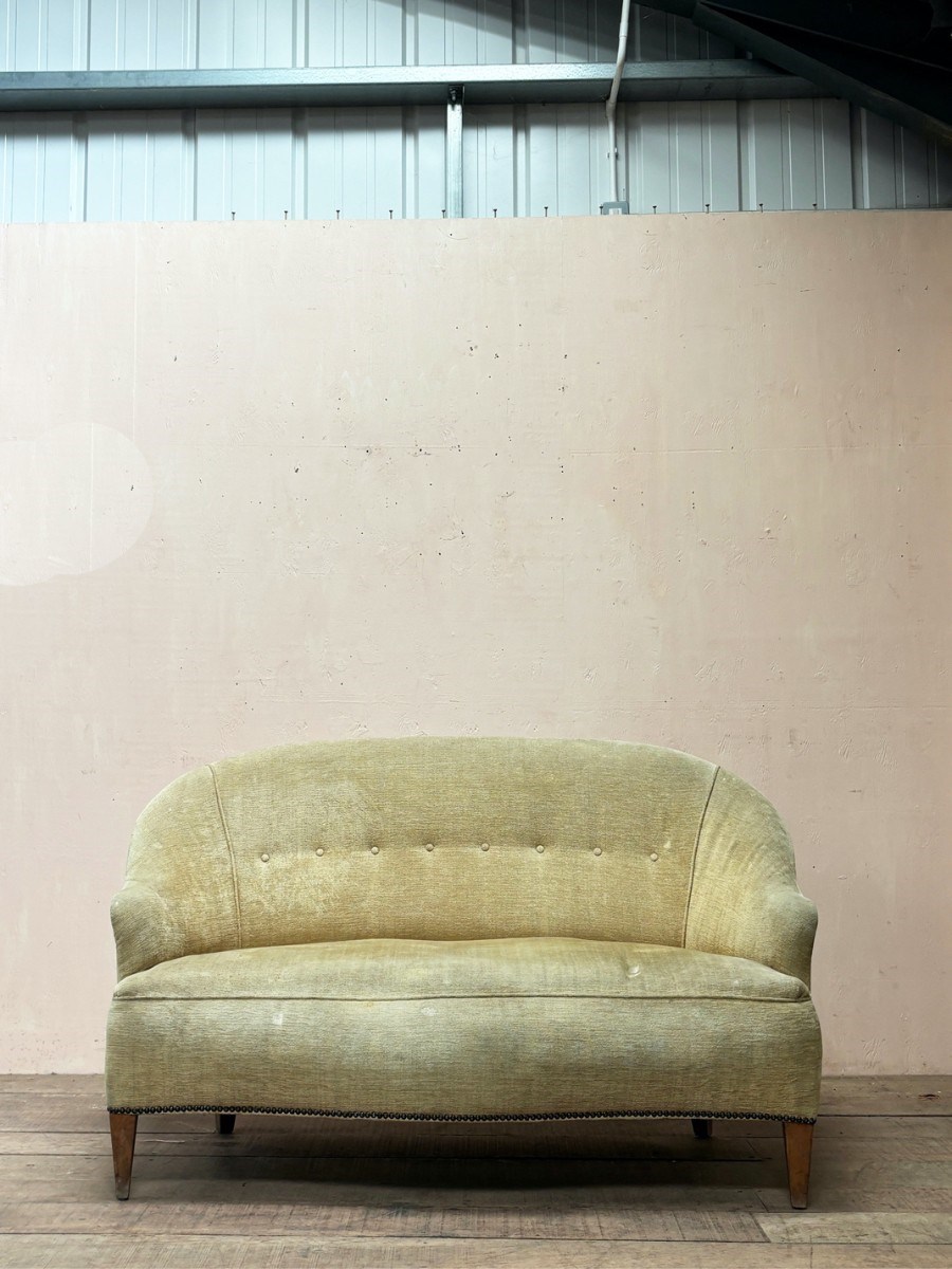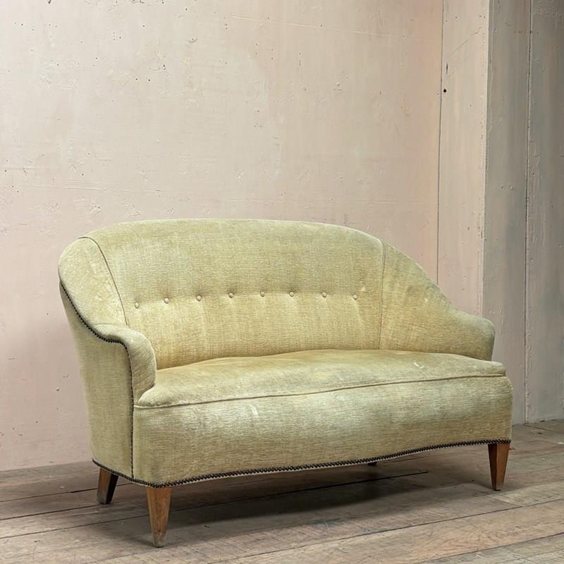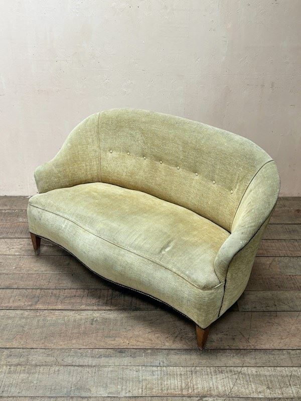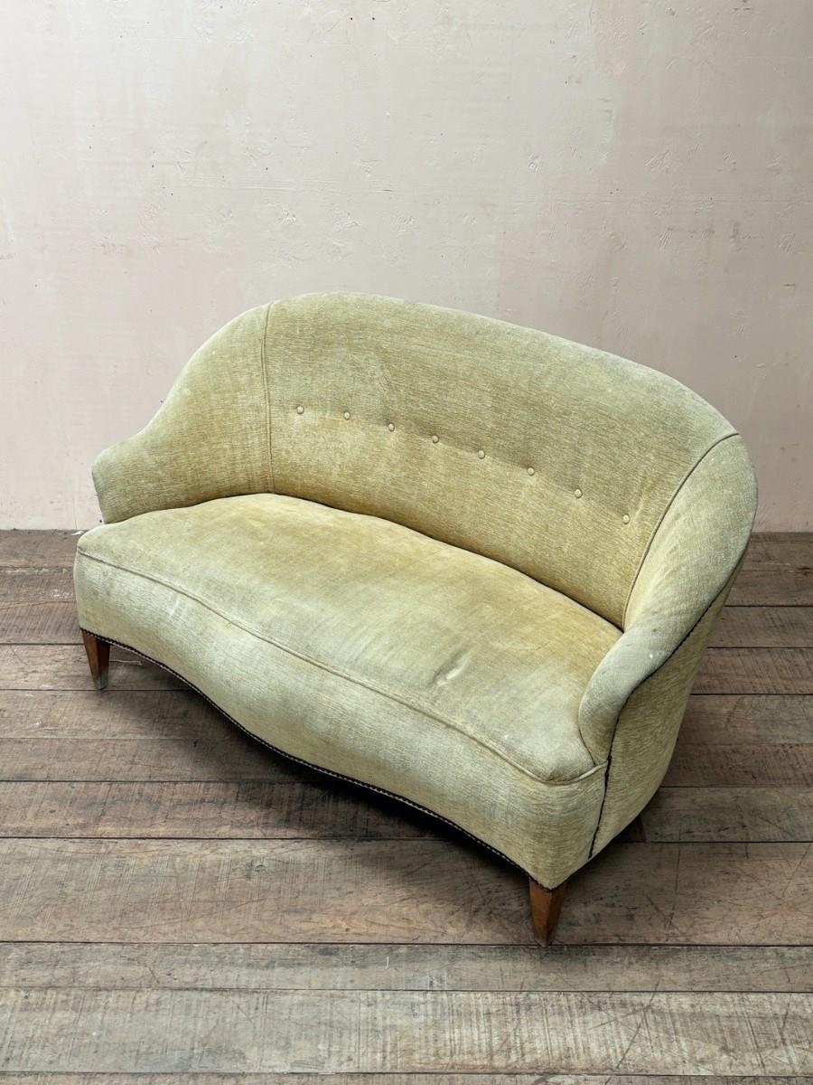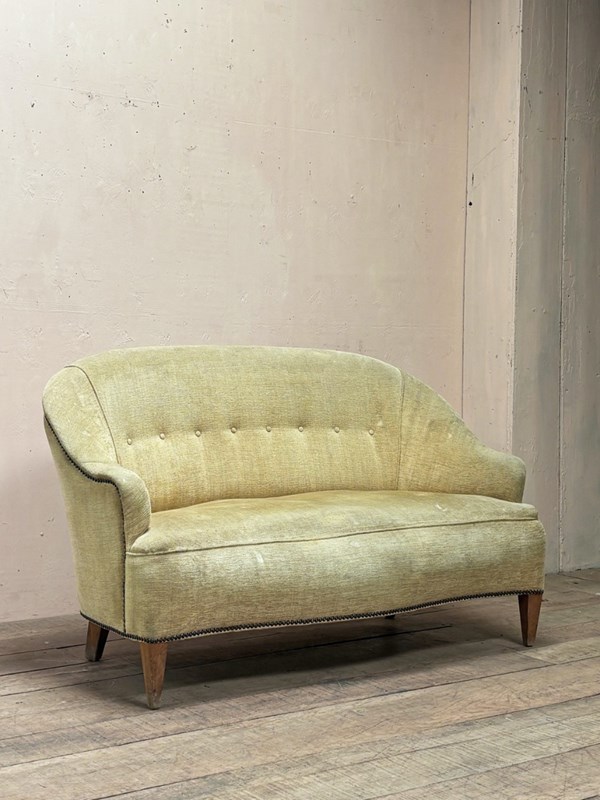 Good quality and solidly built German sofa c.1900 with serpentine front and standing on tapered hardwood legs.