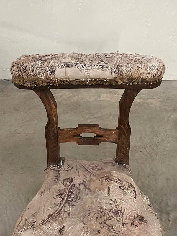 We can restore and re-upholster these chairs in your fabric choice for £350 + VAT each. Please let us know your requirements.