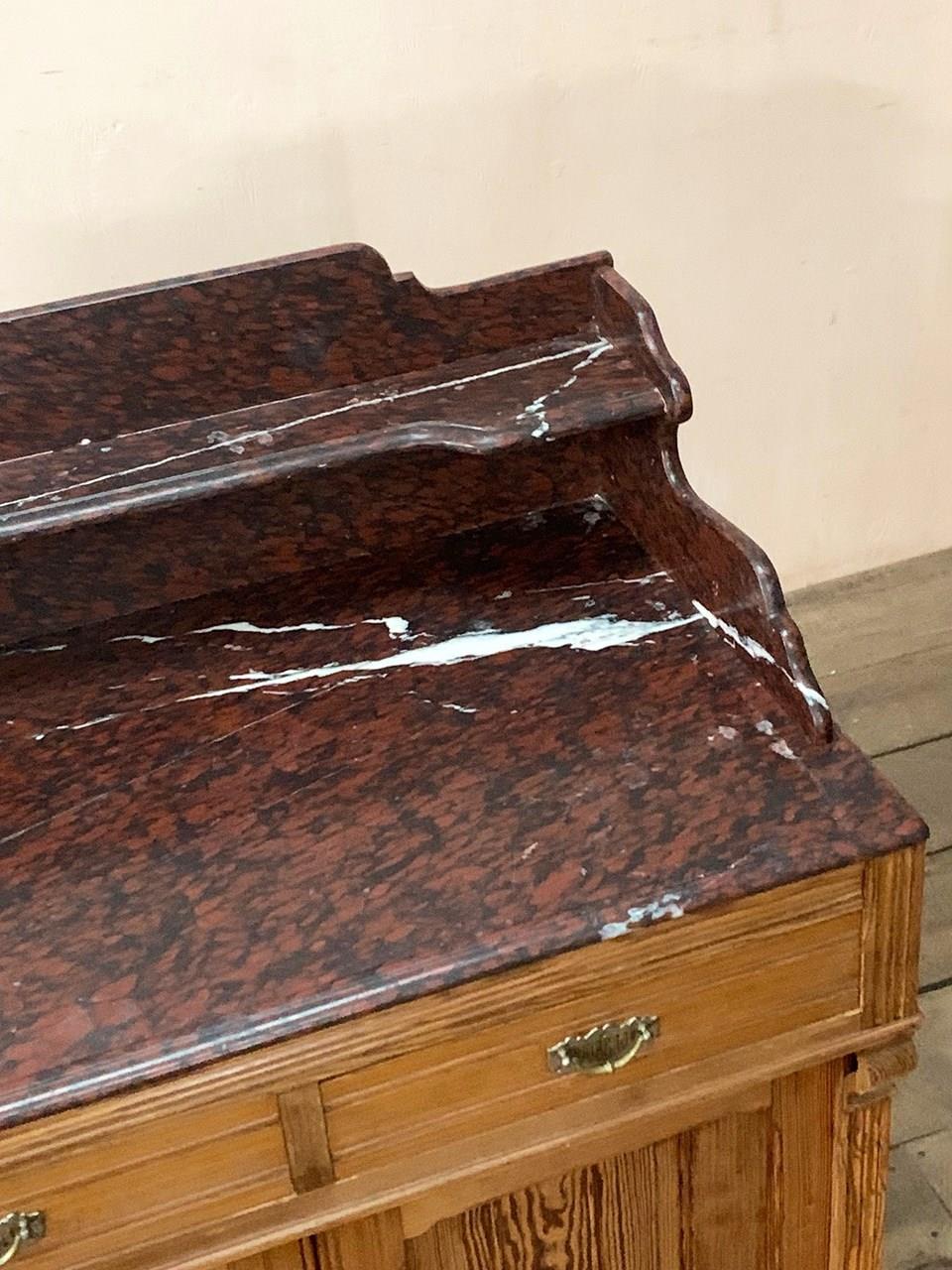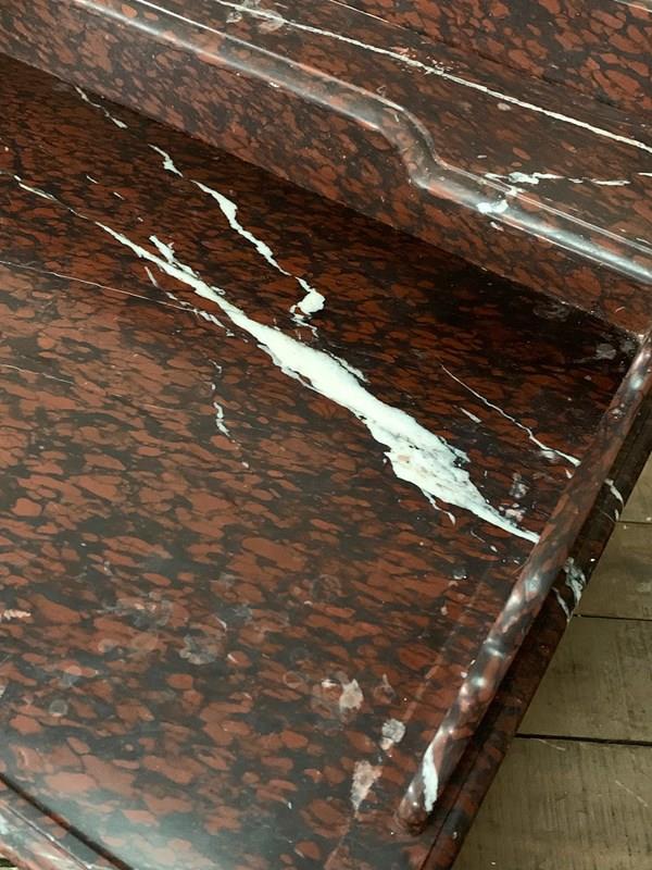 The galleried marble top is quite exceptional in terms of the colour; it's quite unusual to see burgundy with black veining and with flashes of cream running through it, and in excellent condition.