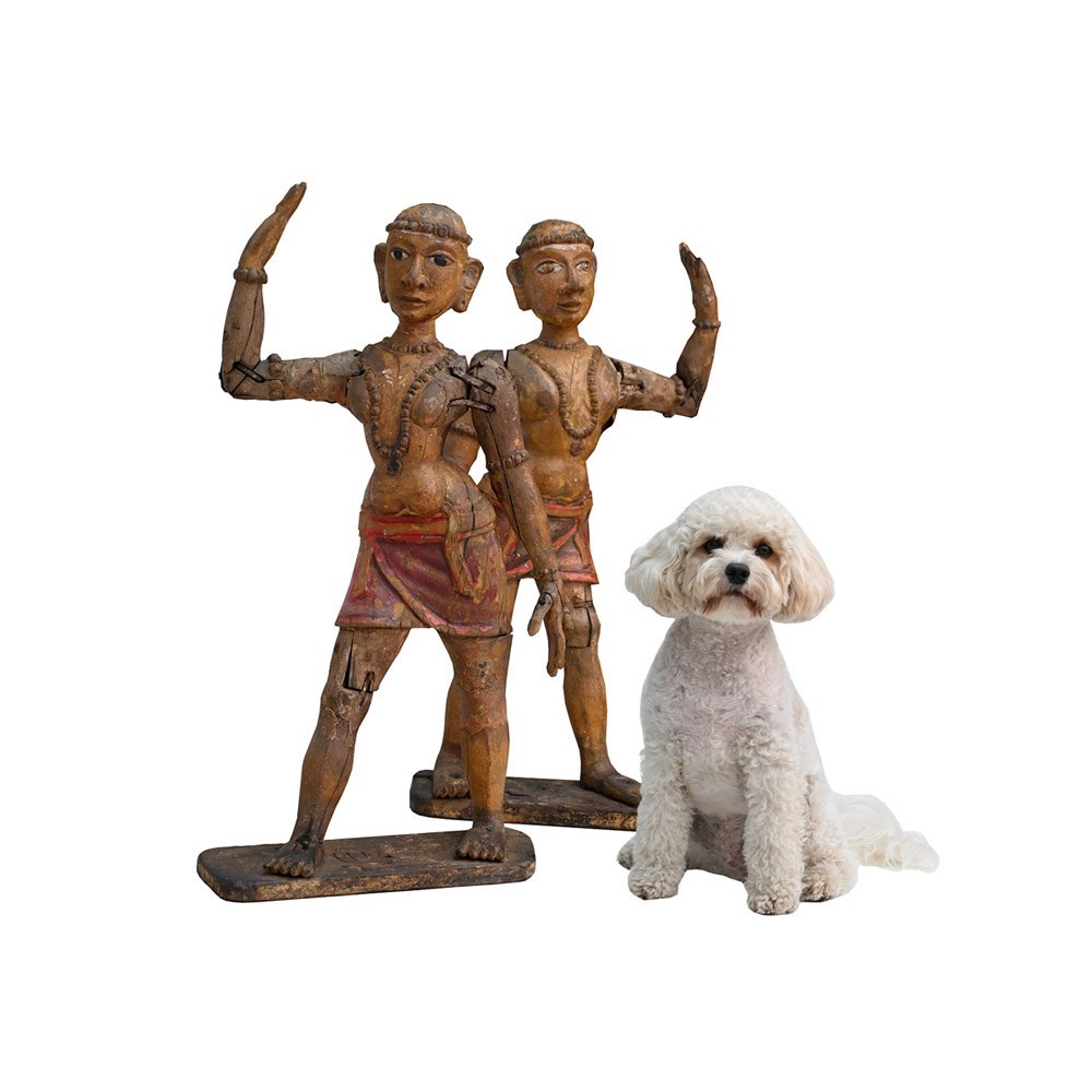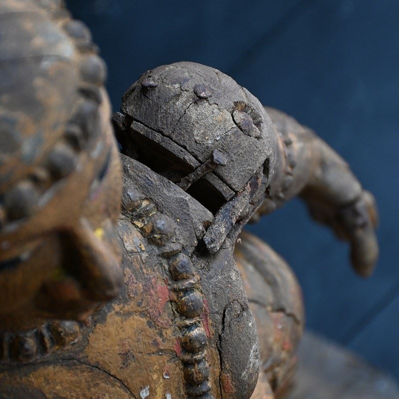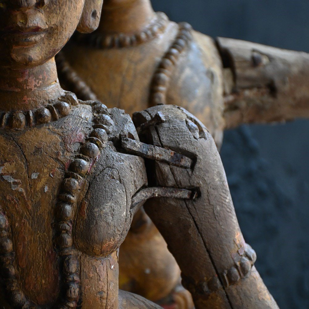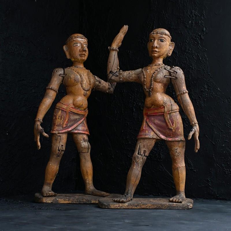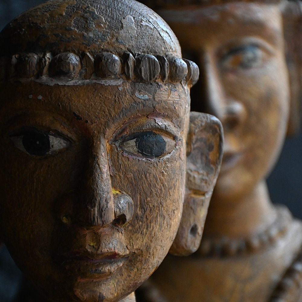Matched pair of 19th Century Hand Carved Indian Temple Processional Figures