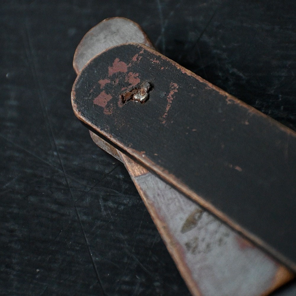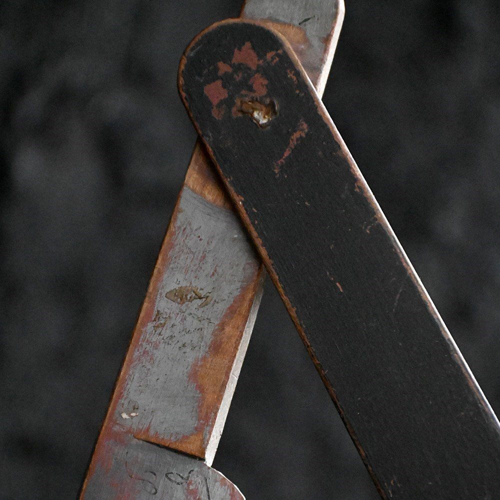 This oversized mid-20th century barbers shop trade sign would likely have sat or been hung inside the store in situ to promote shaving services. It opens completely and has a small metal nail in place for it to be opened and closed as shown.