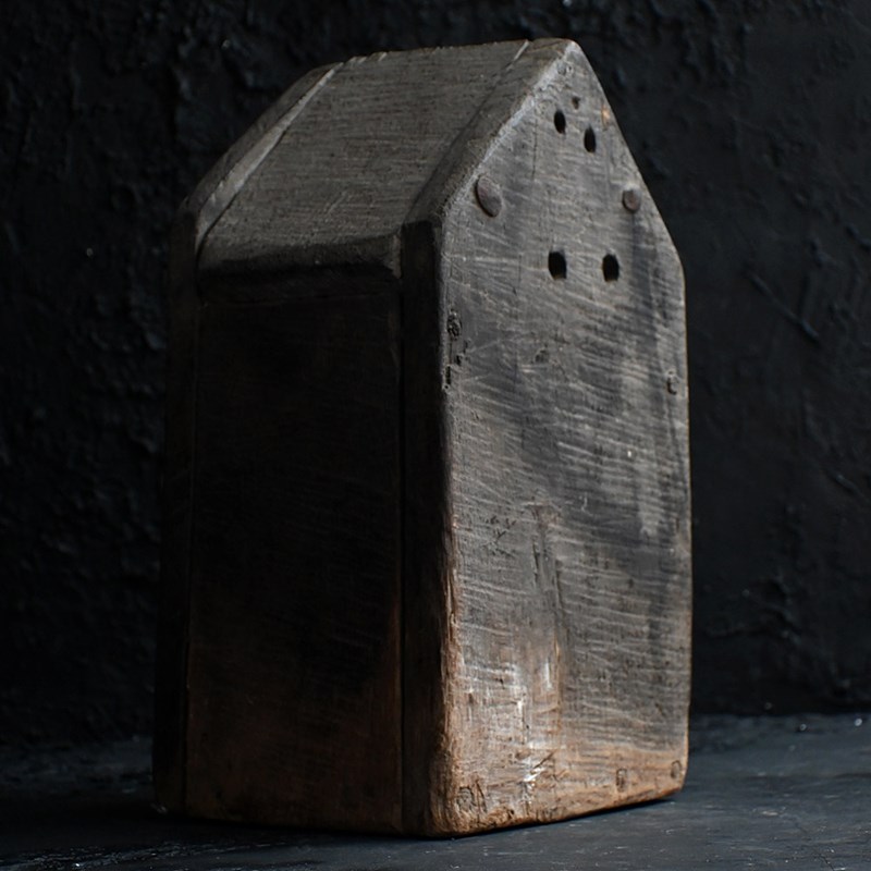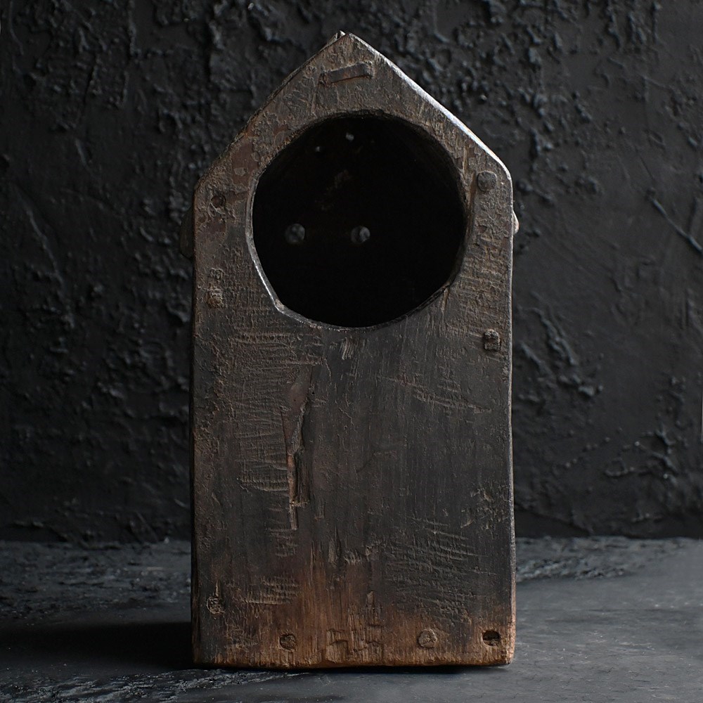 A highly decorative and charming late 19th Century naïve English folk art tree bird house. Made from thick pine and wrought iron flat head nails. Hand painted in ebonised black paint which over the years has developed into a rough textured surface as shown on the close up photos.