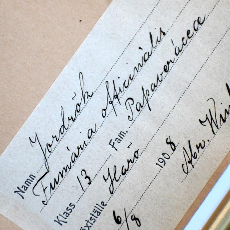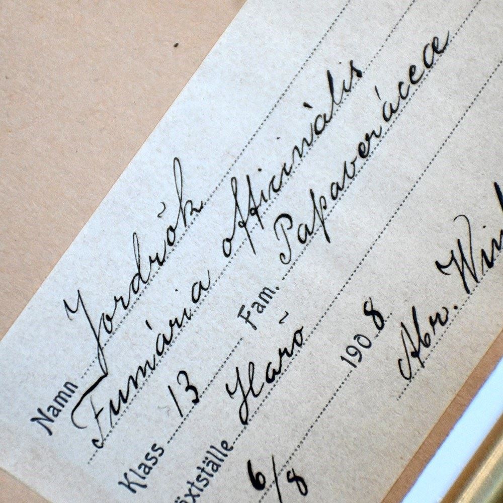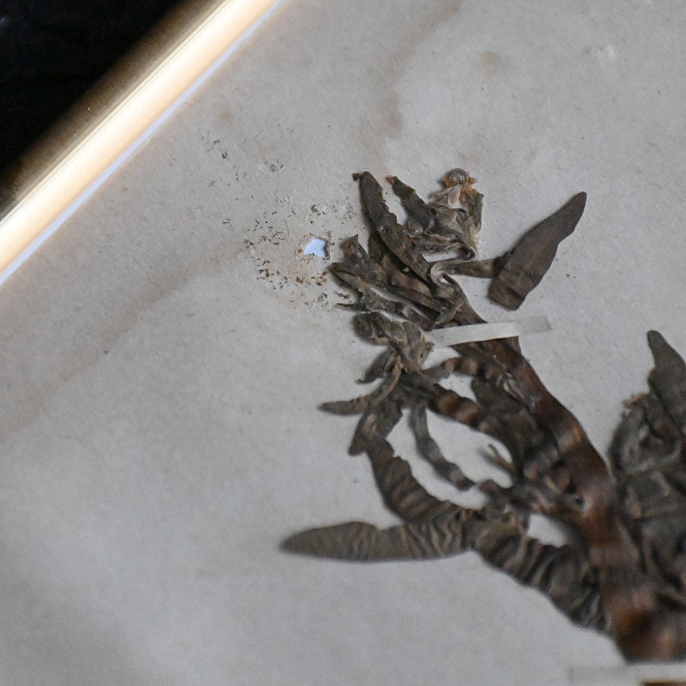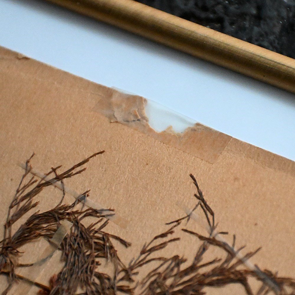 Six early 20th Century pressed botanic samples signed and dated 1908. Each example has a handwritten paper description of the specimen shown. Framed in acrylic gold front covered display and ready to be hung.