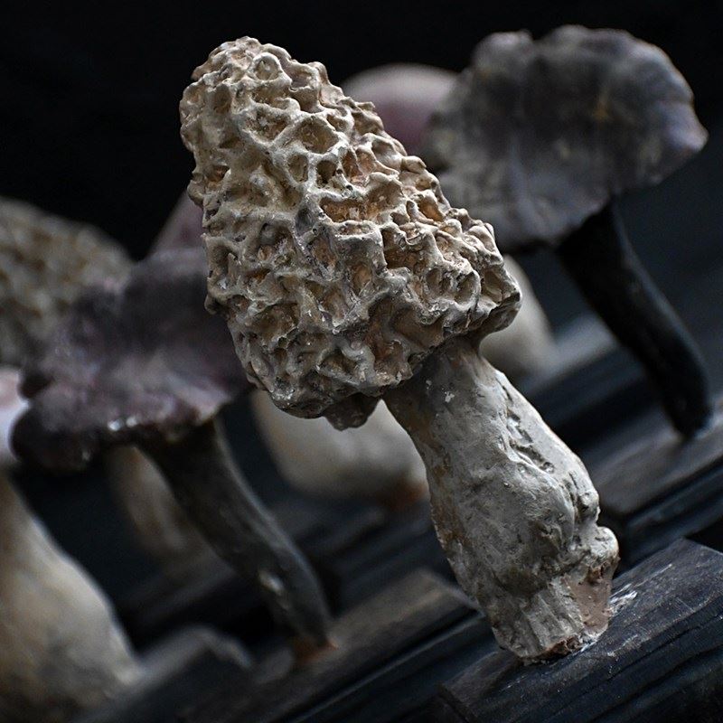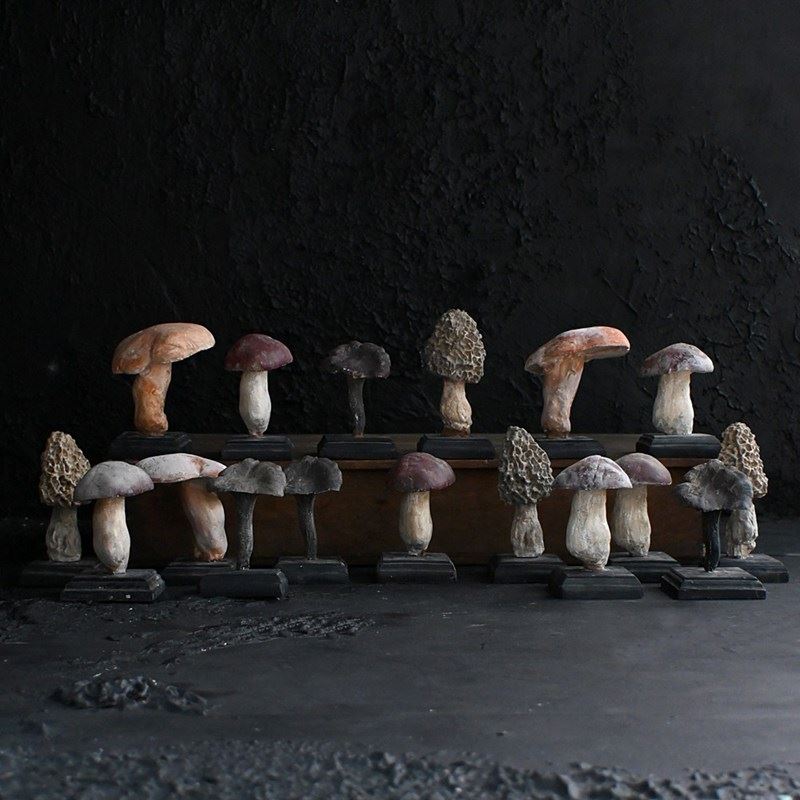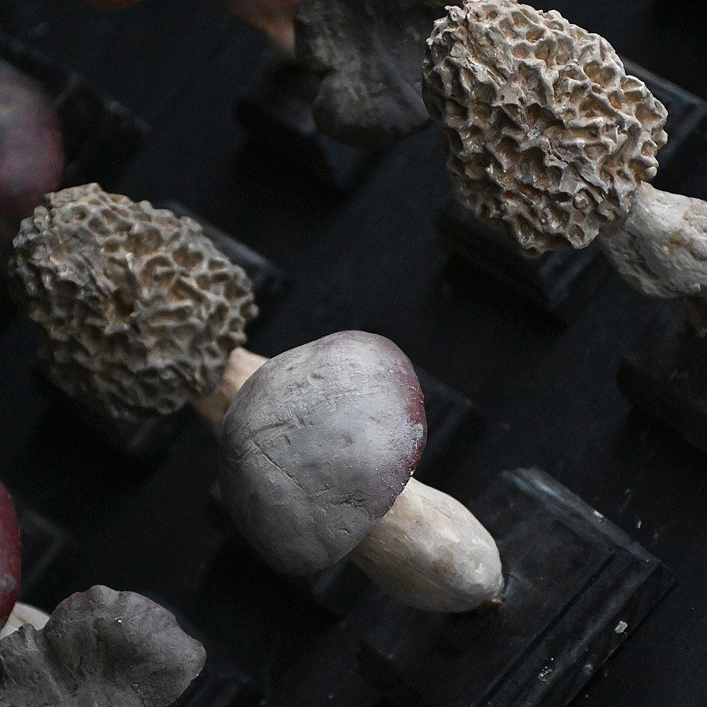 A set of seventeen mid-20th century hand crafted mushroom scientific/botanical specimens